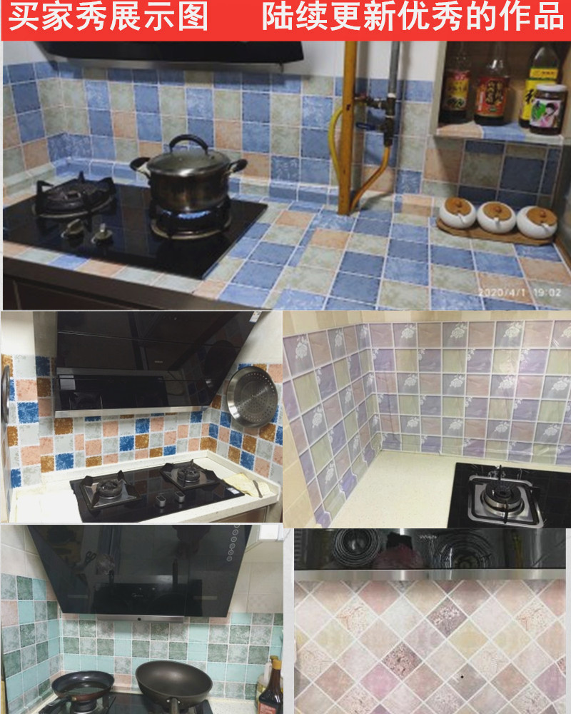 厨房防油贴纸,耐高温,自粘贴纸,油烟机灶台用,大理石瓷砖壁纸,防水翻新墙贴。5米长,随意裁剪搭配。