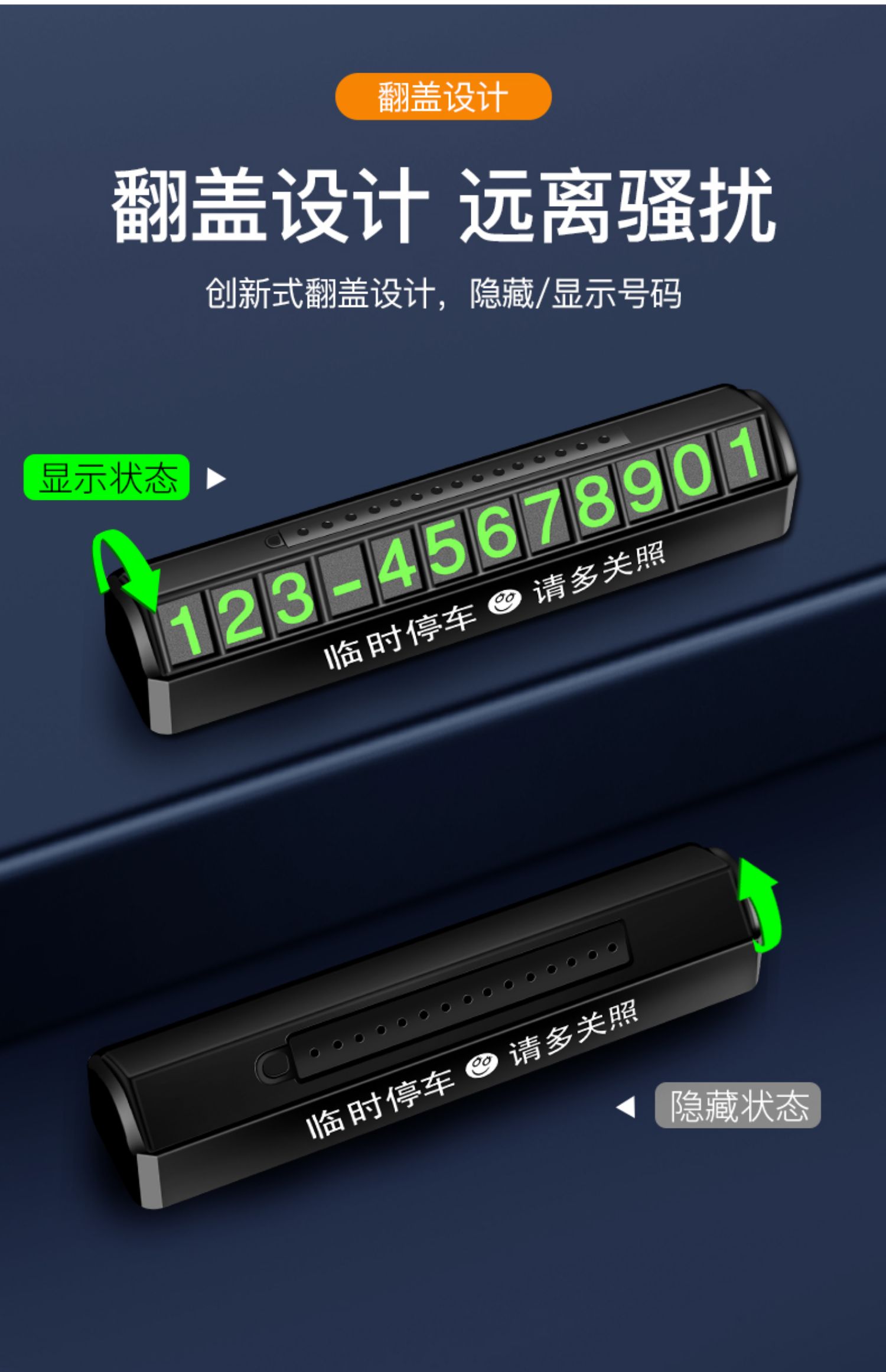 挪车找不到车主好尴尬!高颜值小身材的号码牌,防暴晒耐高温,荧光字体,车外清晰可见,夜间也清晰,轻松开合,一按就隐藏!