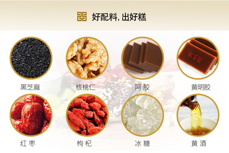 天猫品质,经典配方,真材实料,古法熬制,补血活血,美容养颜,良心阿胶糕,核桃仁、黑芝麻、红枣、玫瑰等等,都是好滋补!!每天二片,遇见美丽的自己~