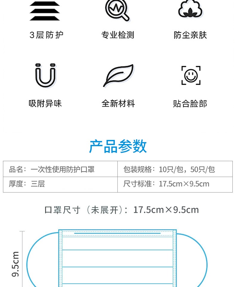 医用口罩才够安心,选材更加苛刻,轻柔透气,适合夏天的口罩,三层防护更安全,三褶设计,阻隔外界飞尘,飞沫~空间大,合格证书齐备!防疫必备,呵护您的安全!