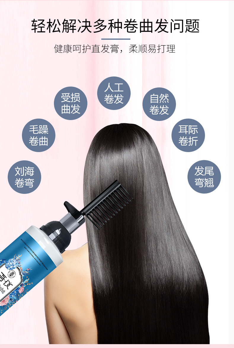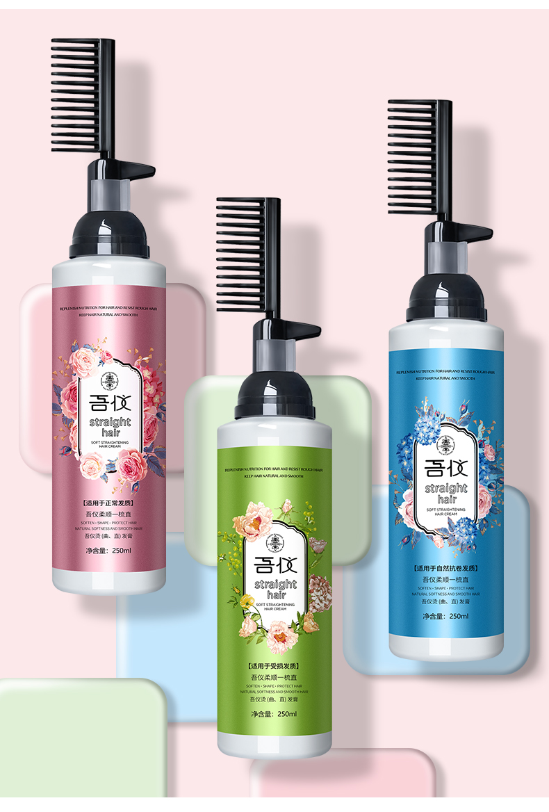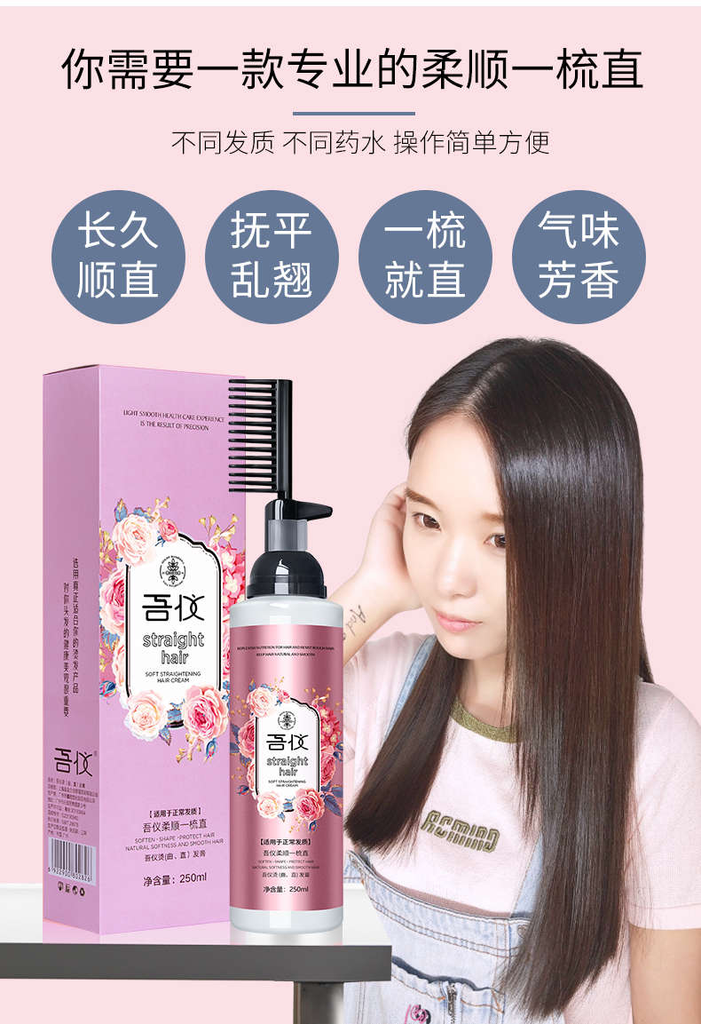 吾仪!一梳直免夹直发膏200ml,草本温和配方,不伤发质,一抹一梳,直发就是这么简单!