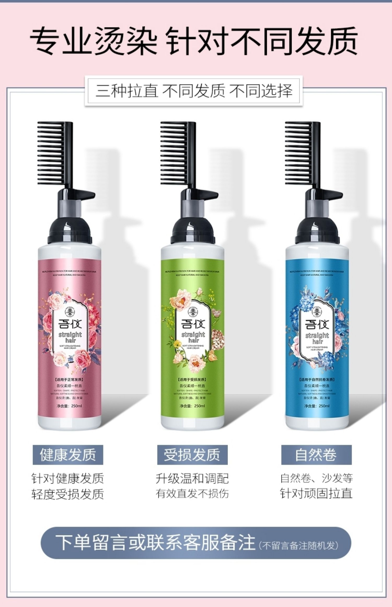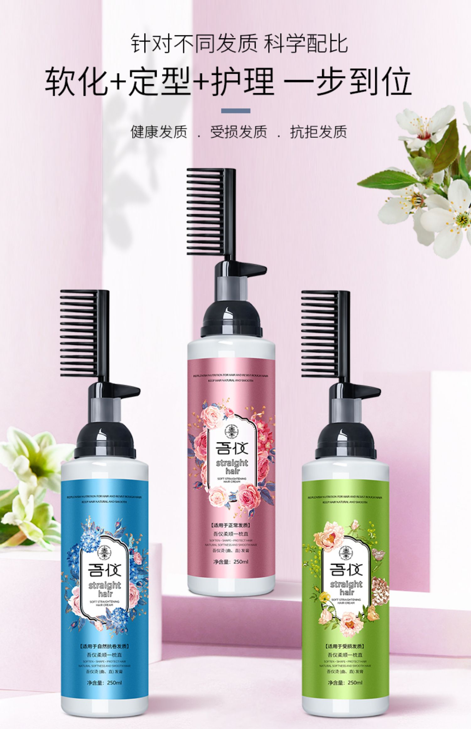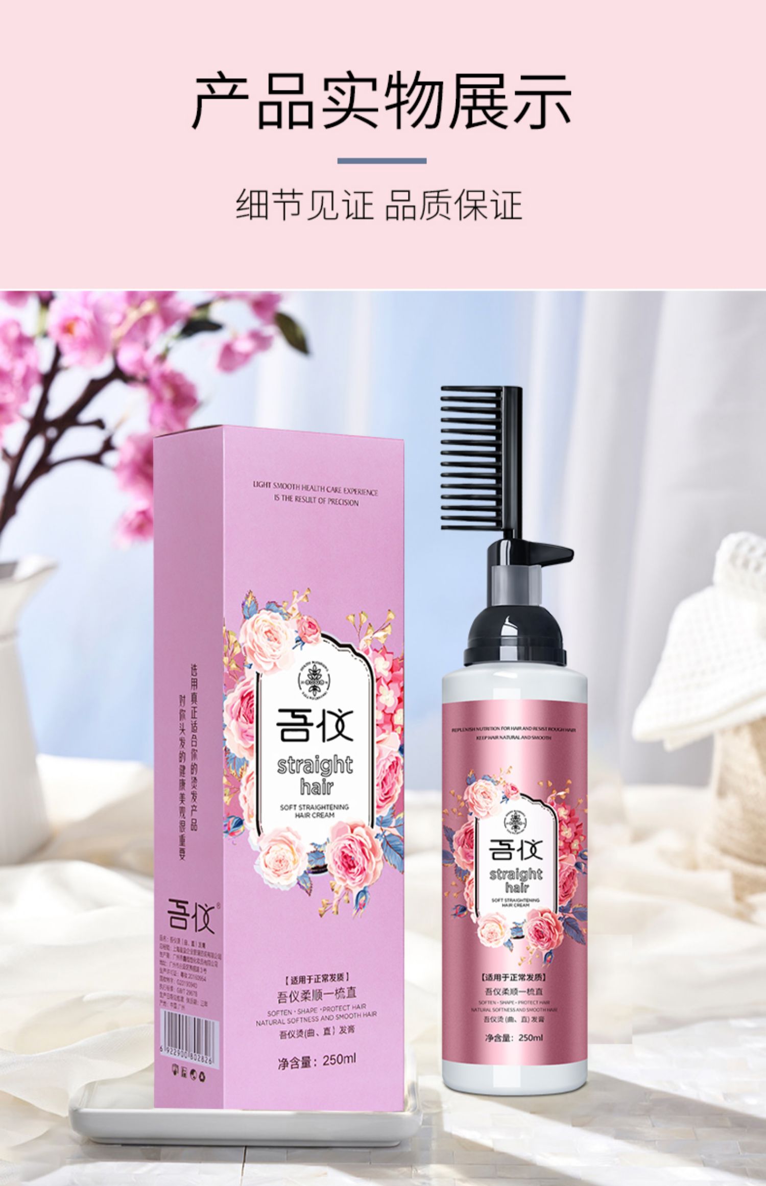 吾仪!一梳直免夹直发膏200ml,草本温和配方,不伤发质,一抹一梳,直发就是这么简单!