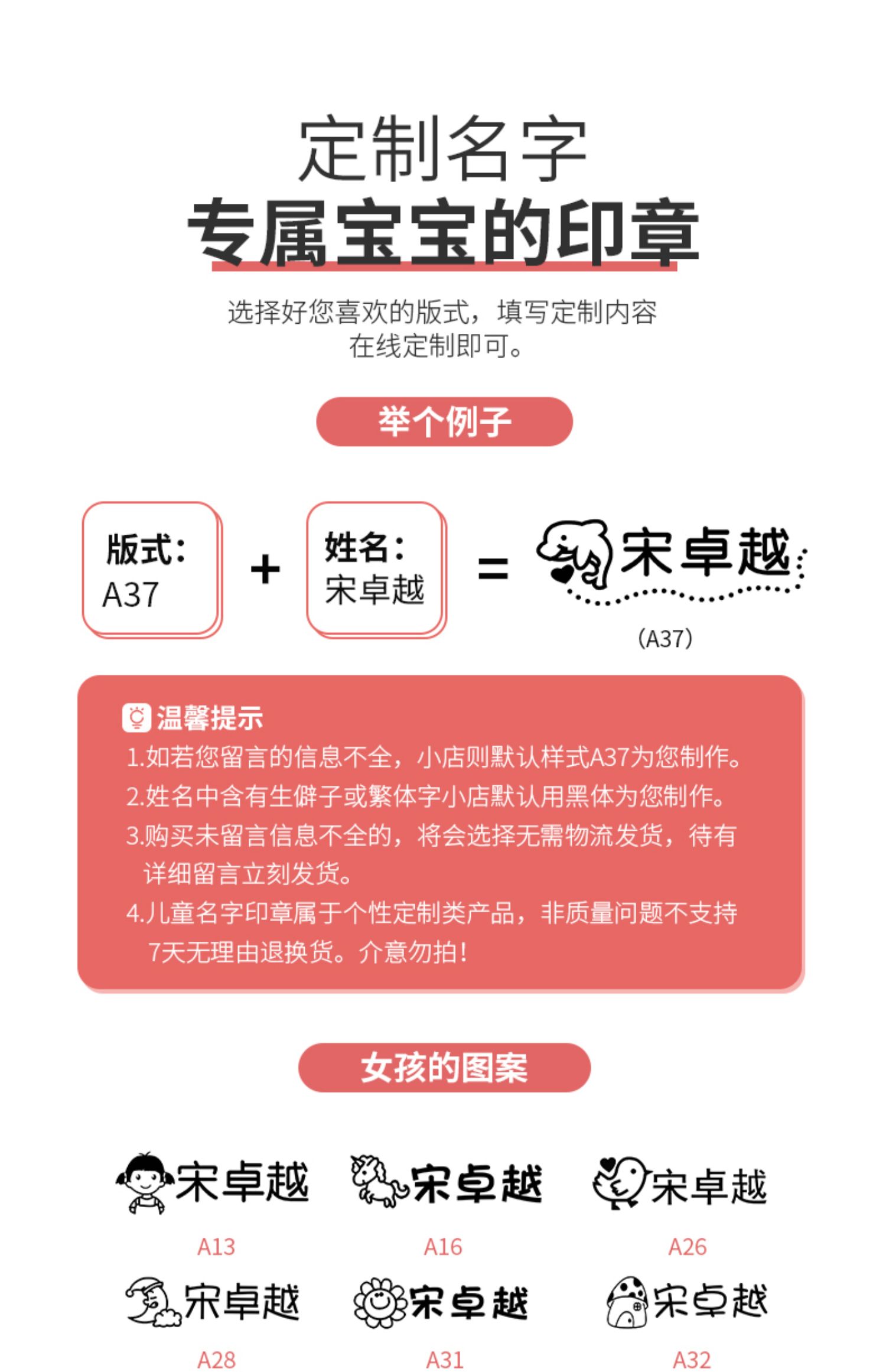 【御茂旗舰店】幼儿园定做姓名卡通印章