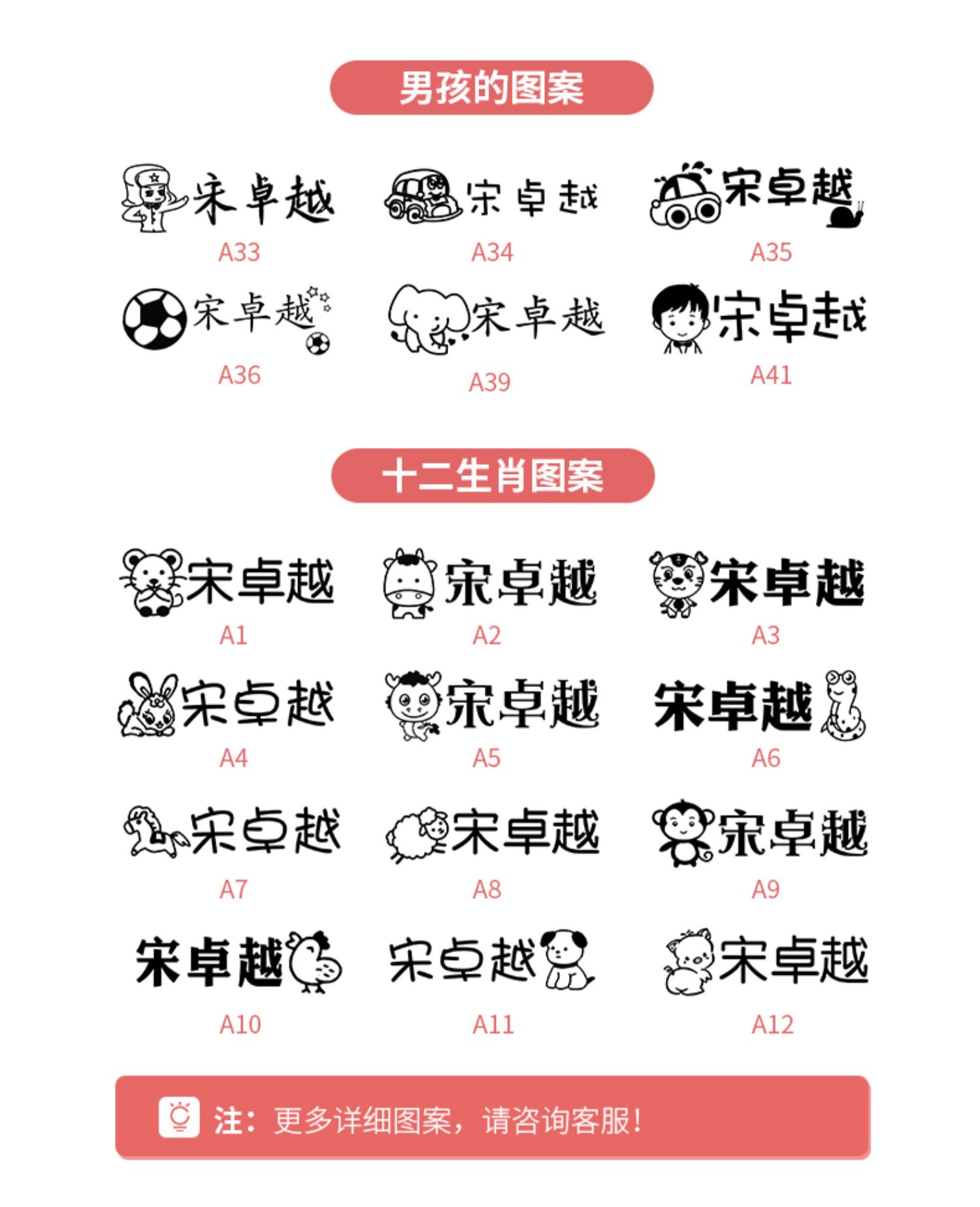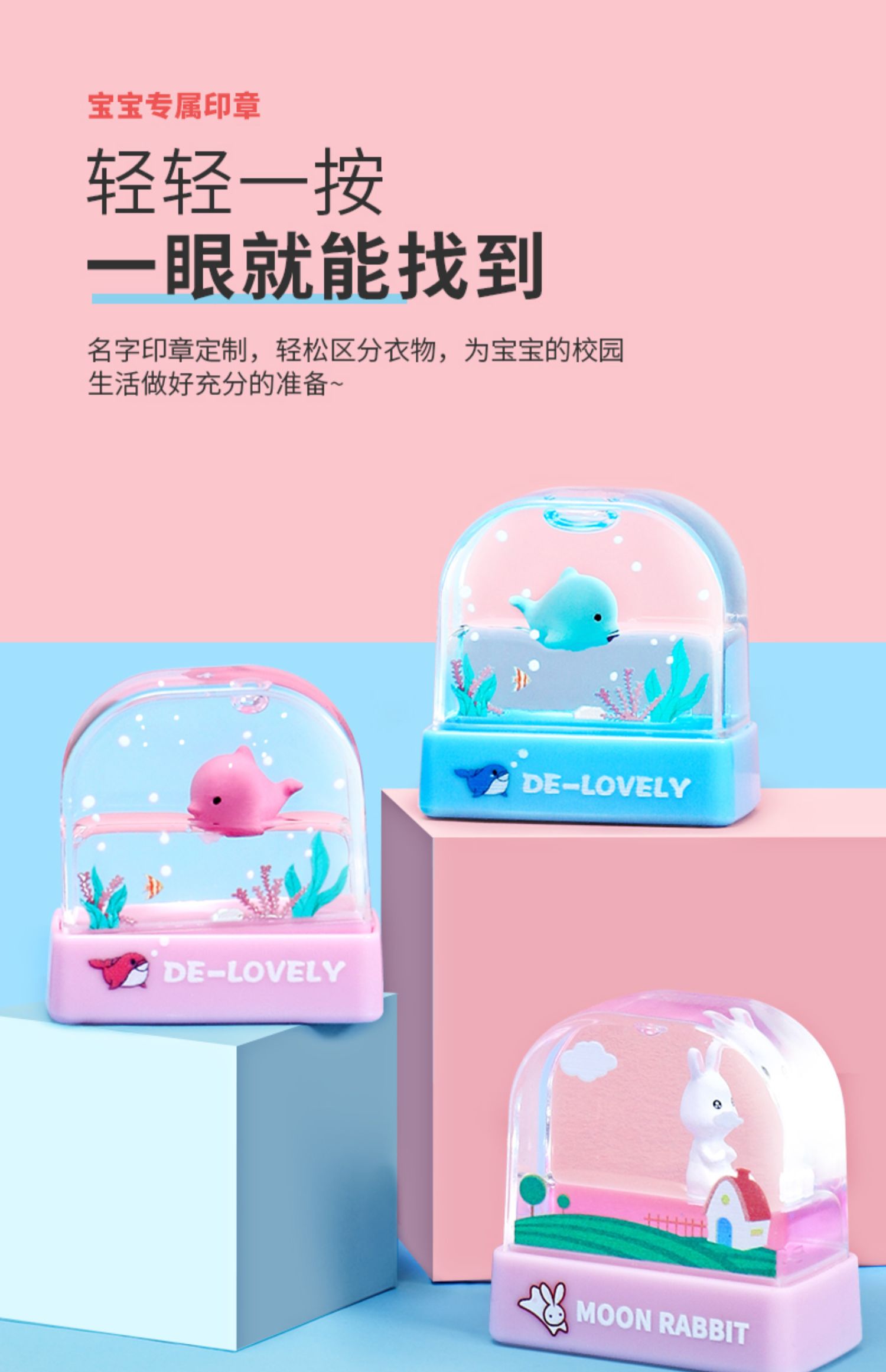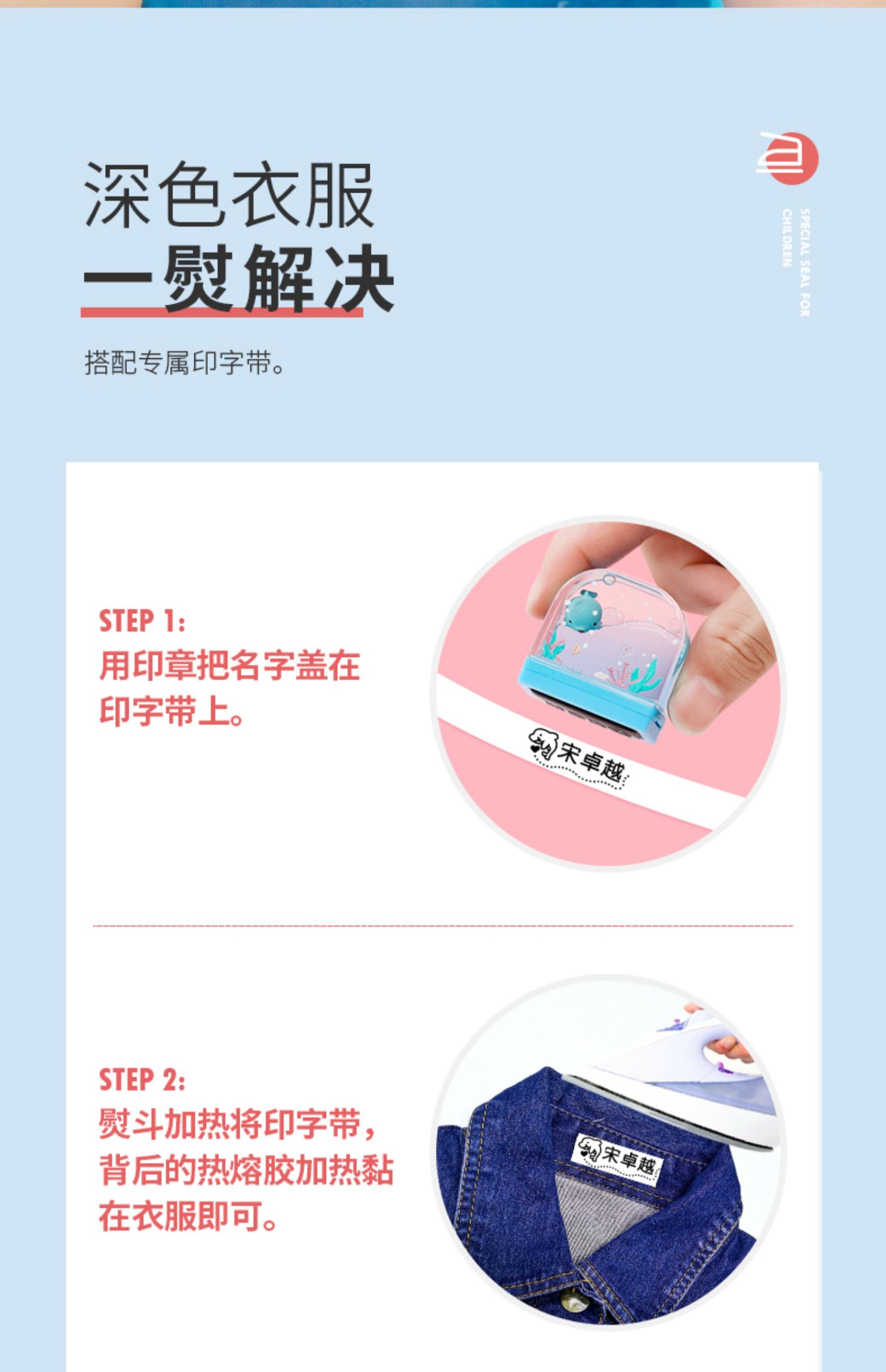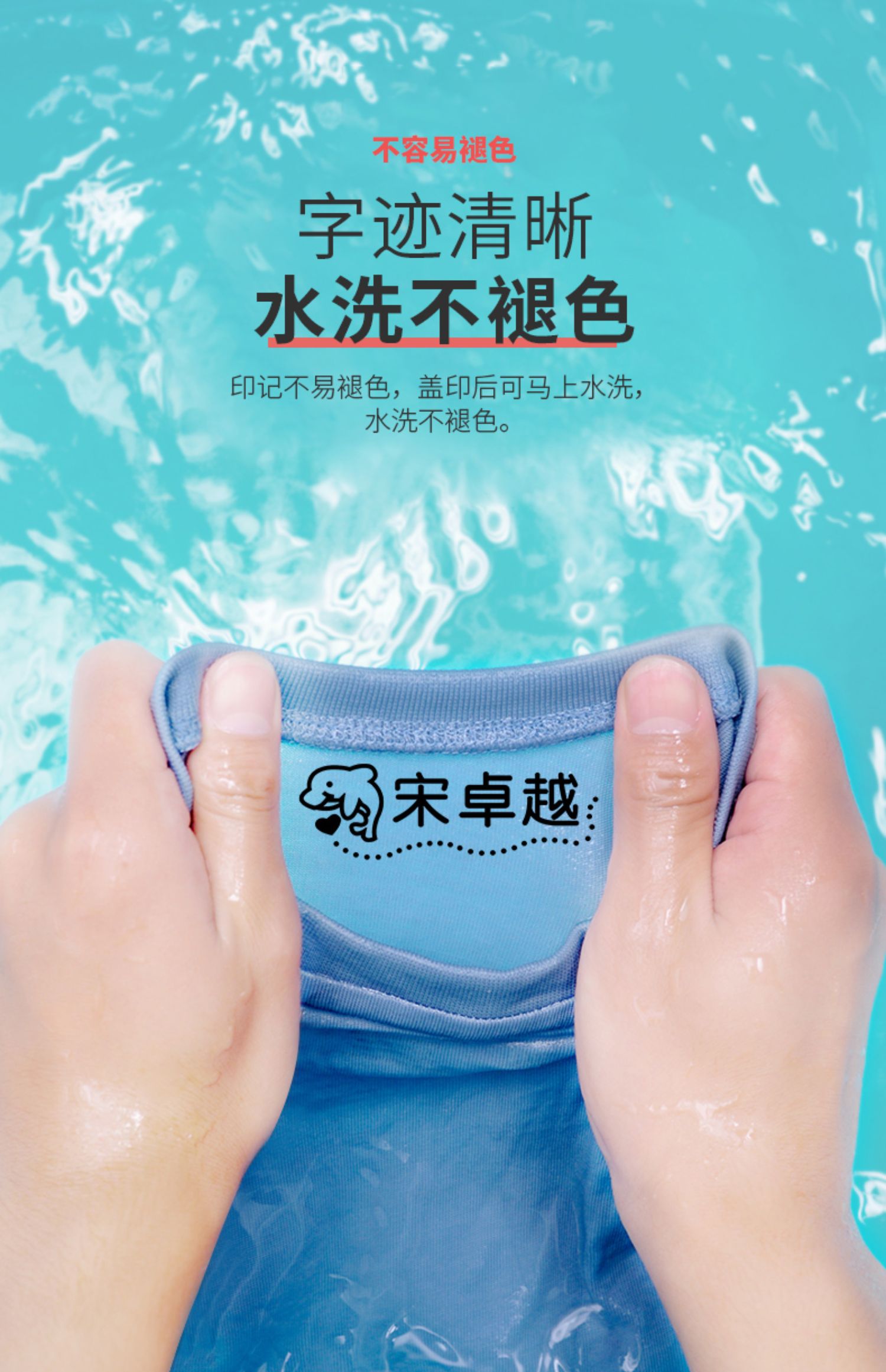 告别裁缝刺绣,轻轻一按,方便快捷,印迹清晰,专用印油,安全环保,水洗不易褪色,衣物、课本都能使用~轻松解决用品不混淆,快给宝宝定制一个专属印章吧!