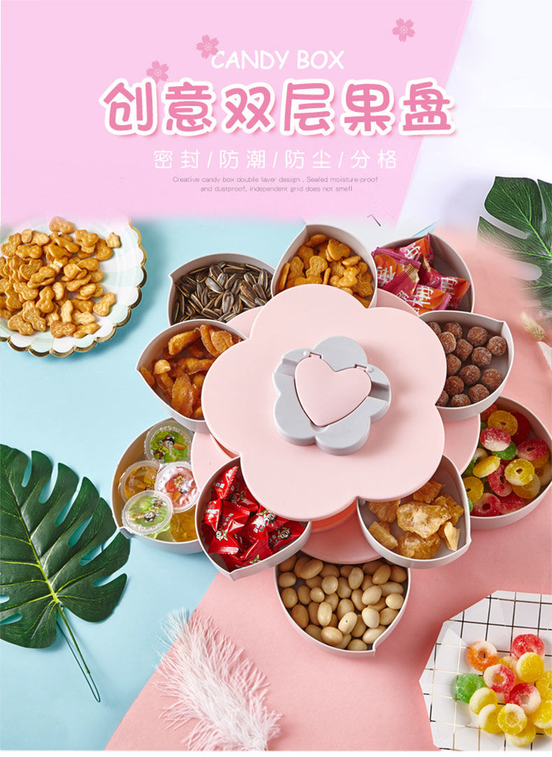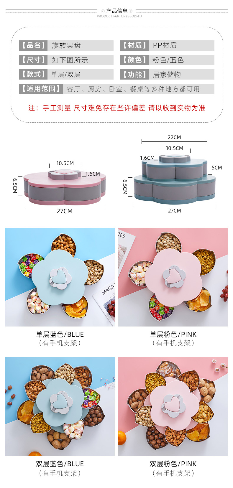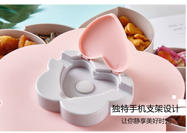 花瓣造型多功能家用客厅水果盘,分格收纳不串味,手机卡槽设计,暖心造型,甜蜜色彩,把甜蜜装进盒子里,家庭必备待客自用家居。