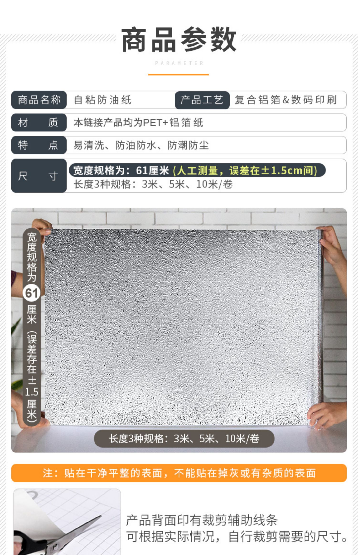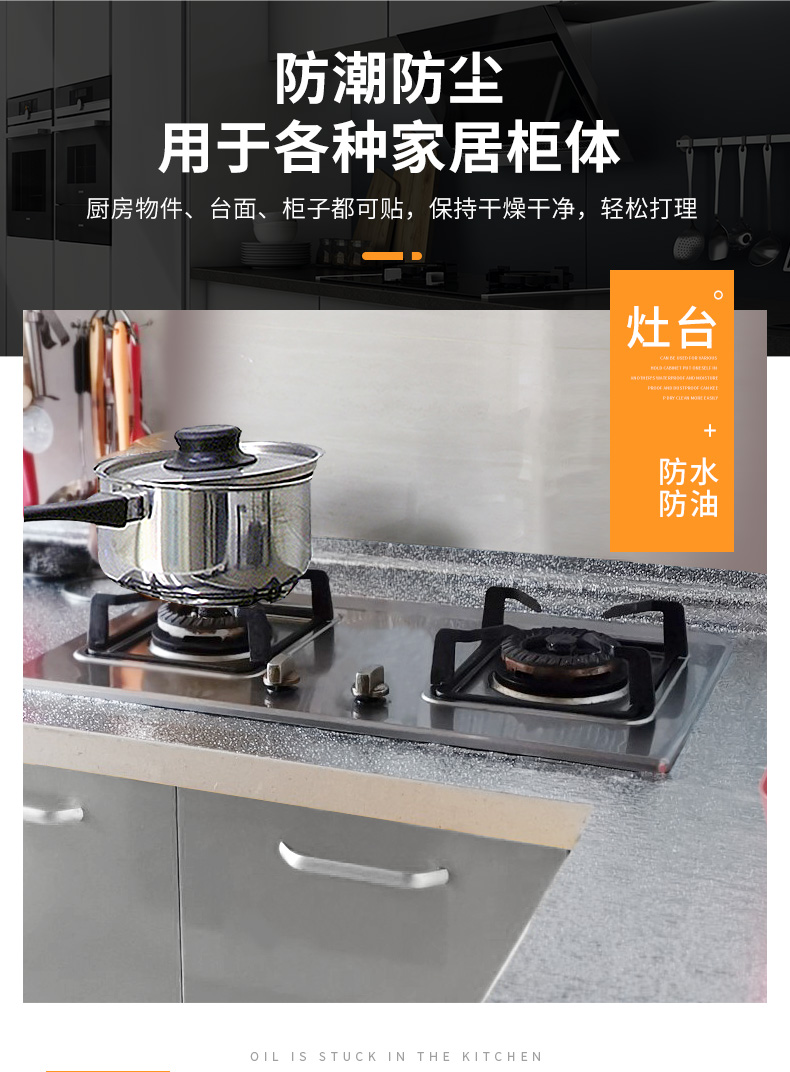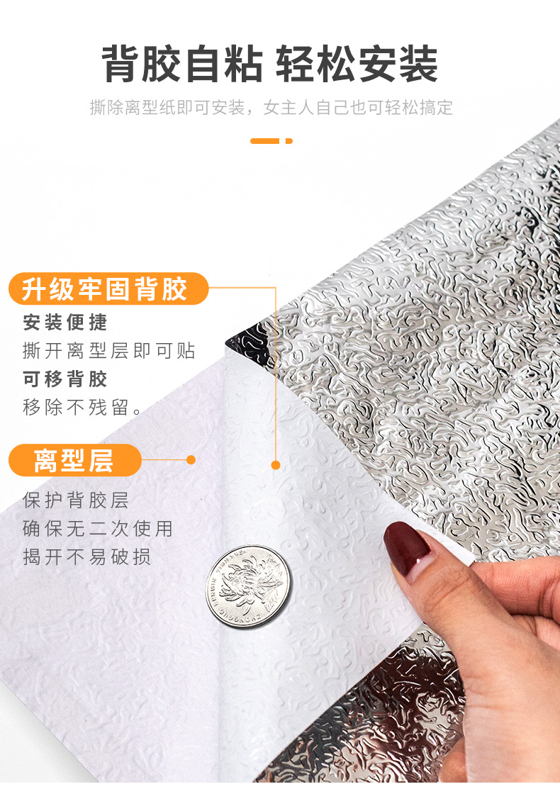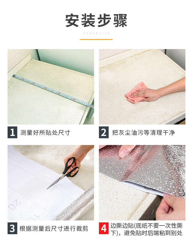 选择我们的铝箔防油贴,无气味、无甲醛、强粘力、耐高温、易清洁,给你一个健康干净的下厨环境。