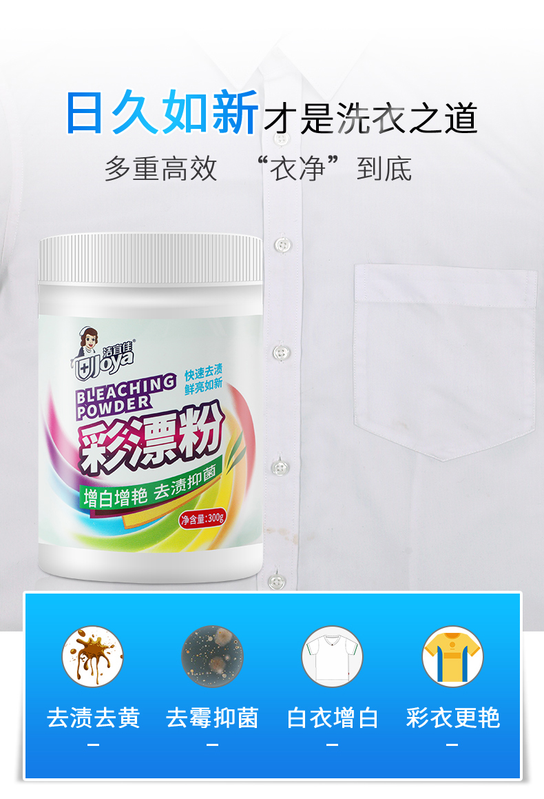 第二瓶半价!拍二发四!洁宜佳好口碑家庭精选!不伤衣物不伤手,不含荧光剂,高效去污去黄,增白护色,根本不怕衣服发黄问题!轻松解决各种污渍问题!