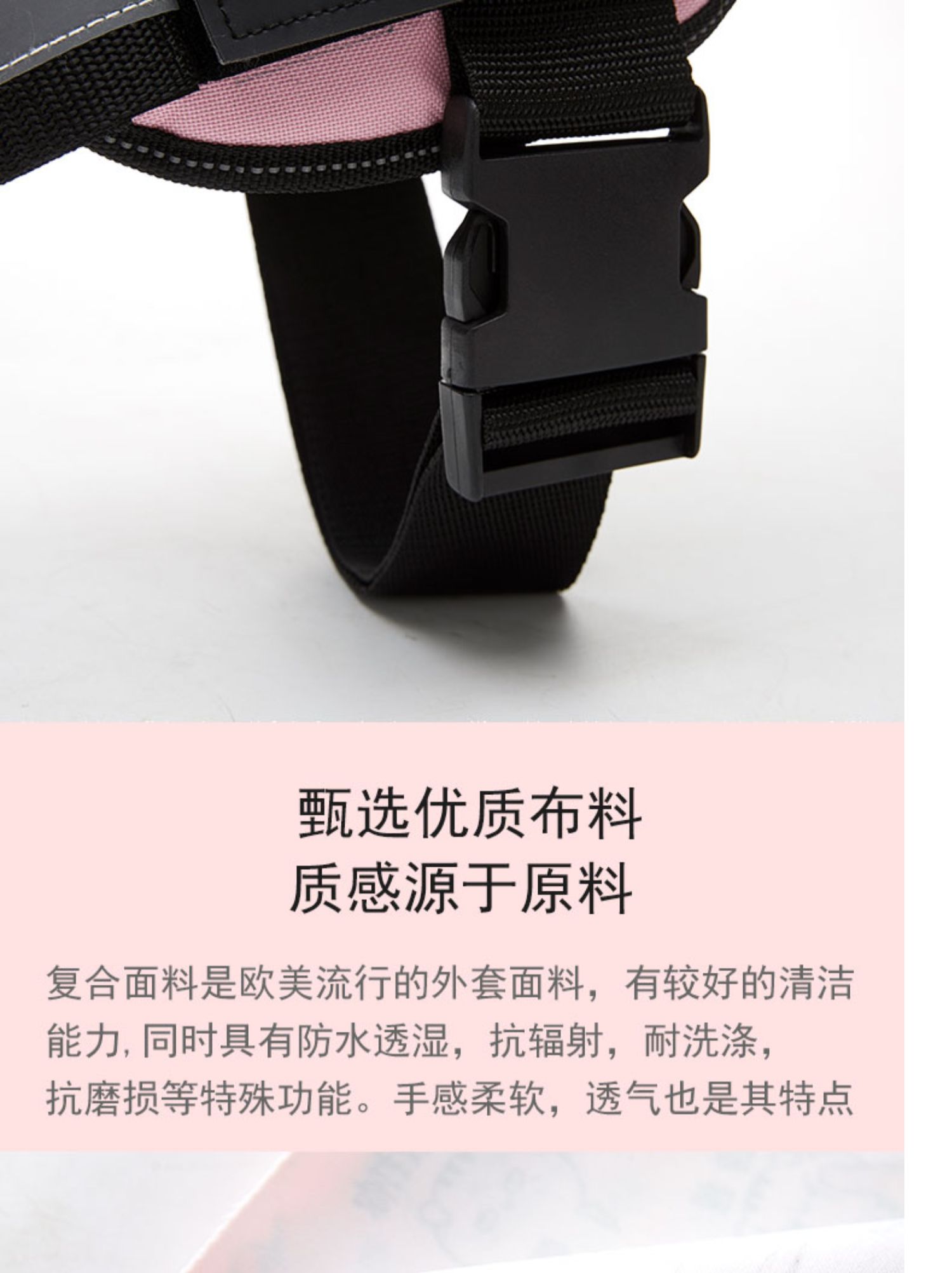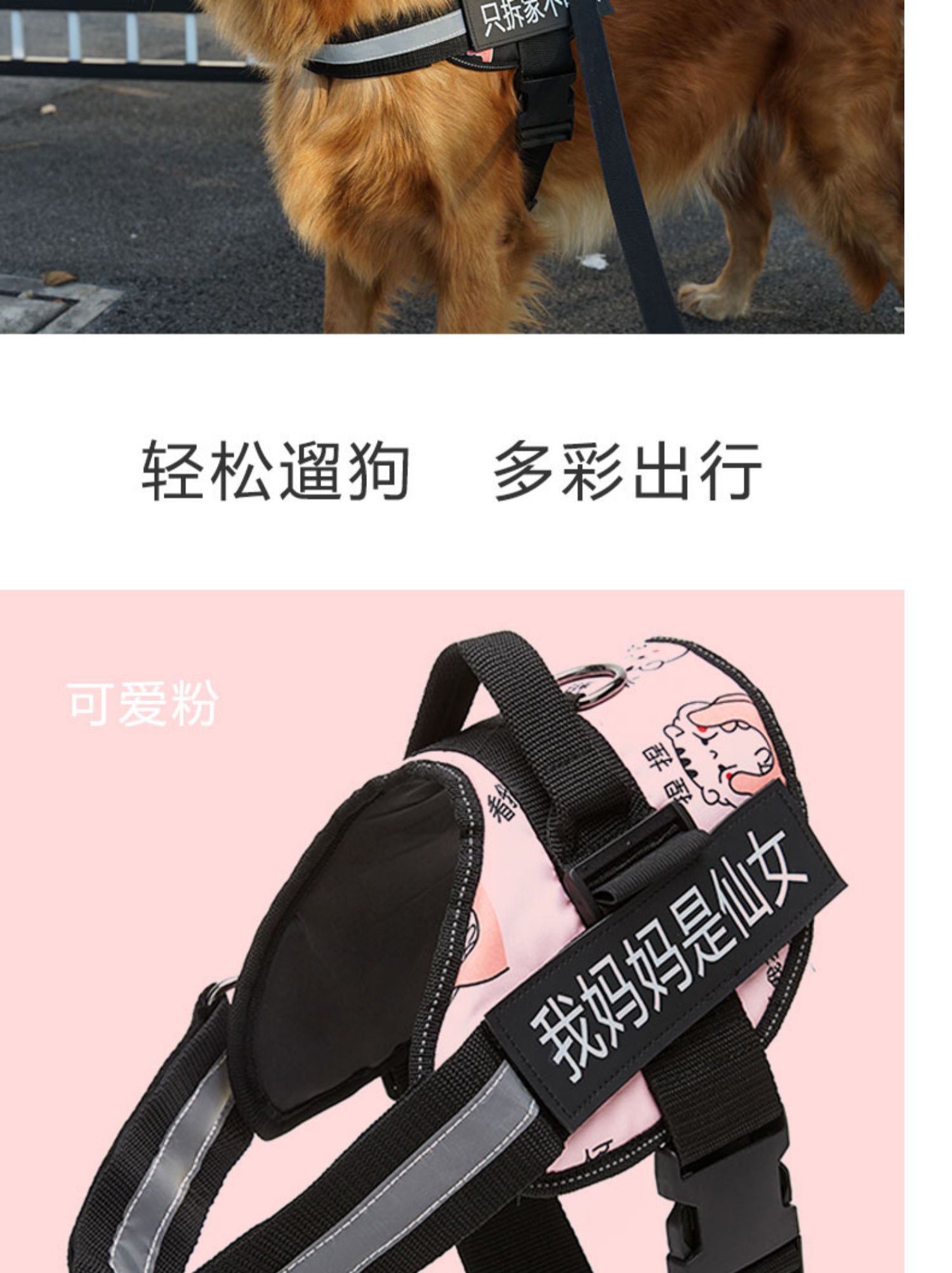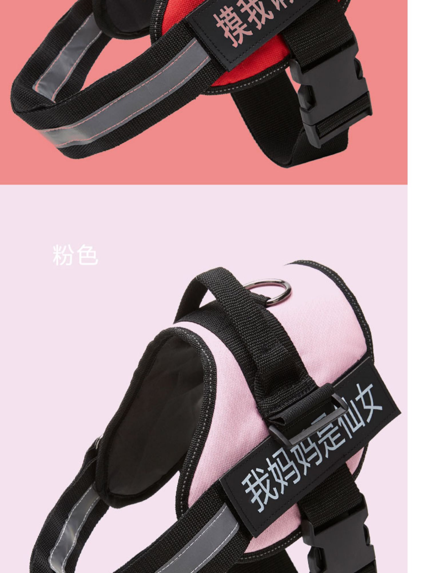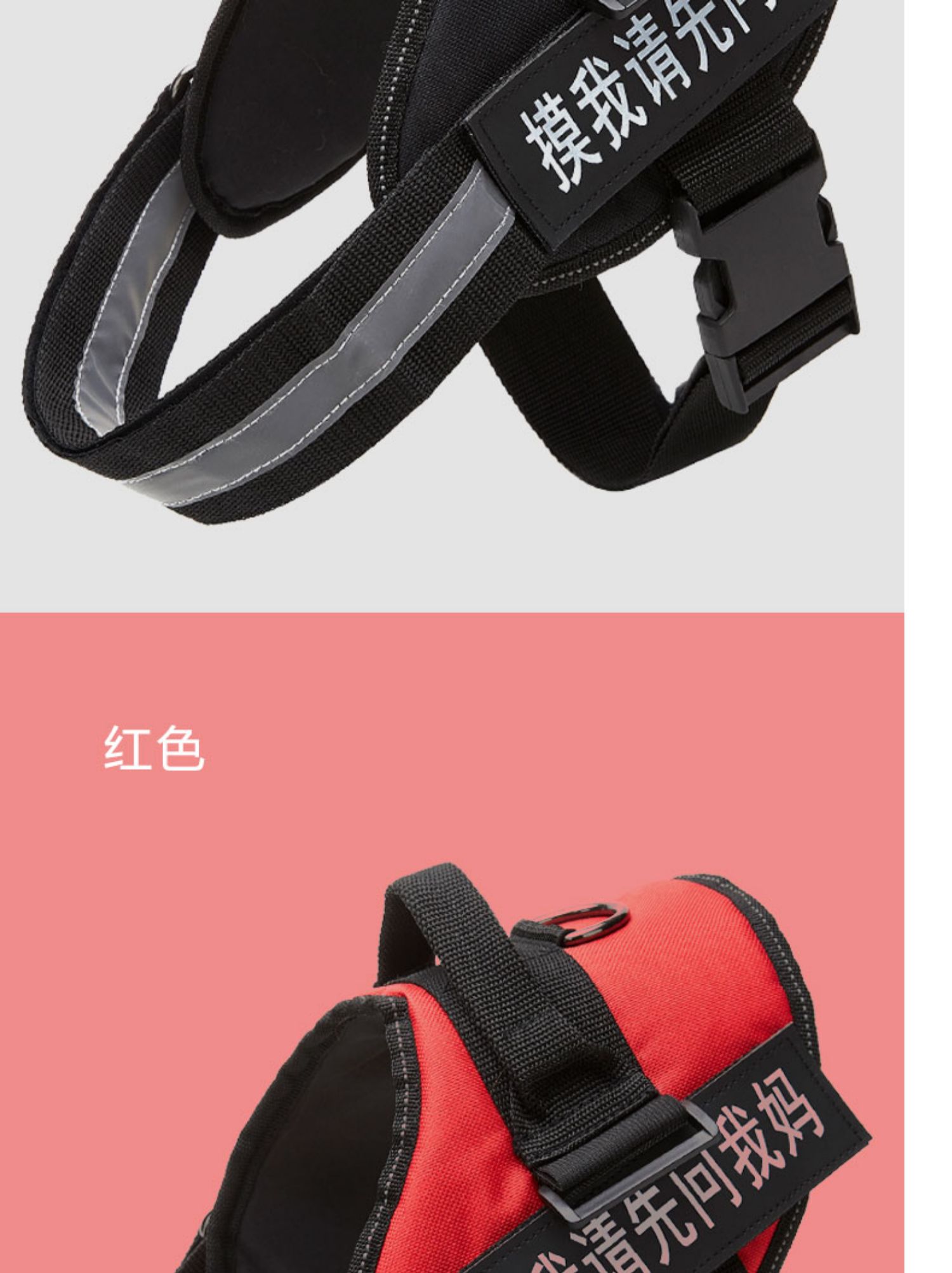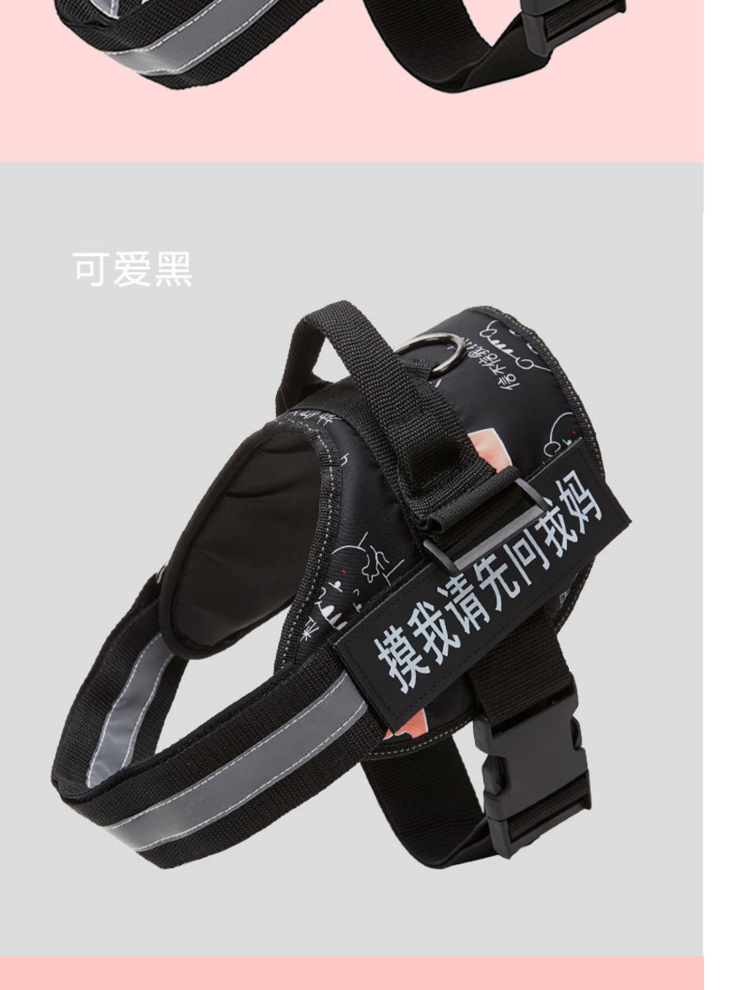 赠美容刷+铃铛+字帖+1.5米牵引绳!!全犬种可用防爆冲护胸,宠物胸背采用高密度牛津布+尼龙织带制作,使用便捷耐用,背部防爆冲D环设计,织带反光材质,使夜间行走安全性得到提升。