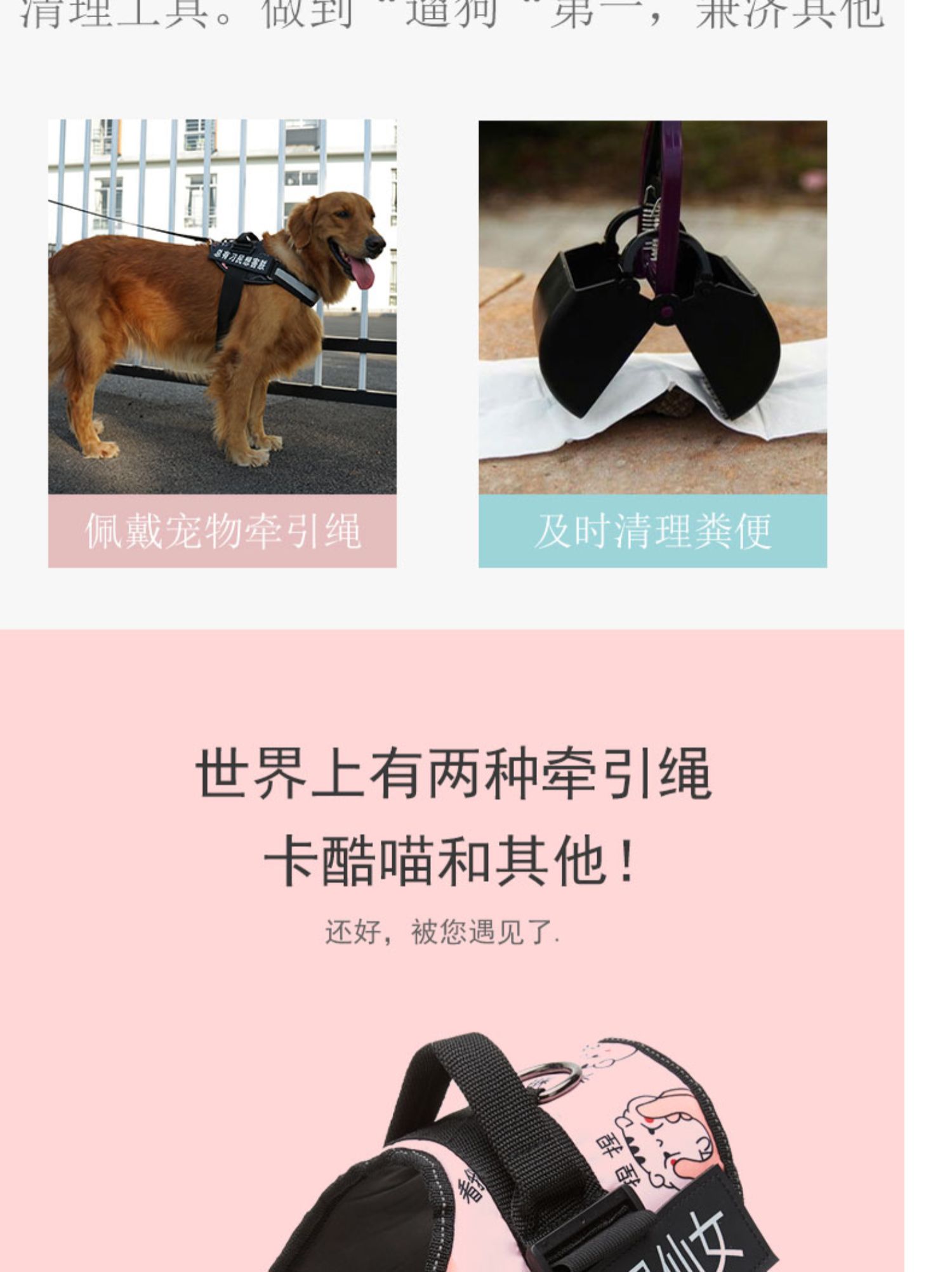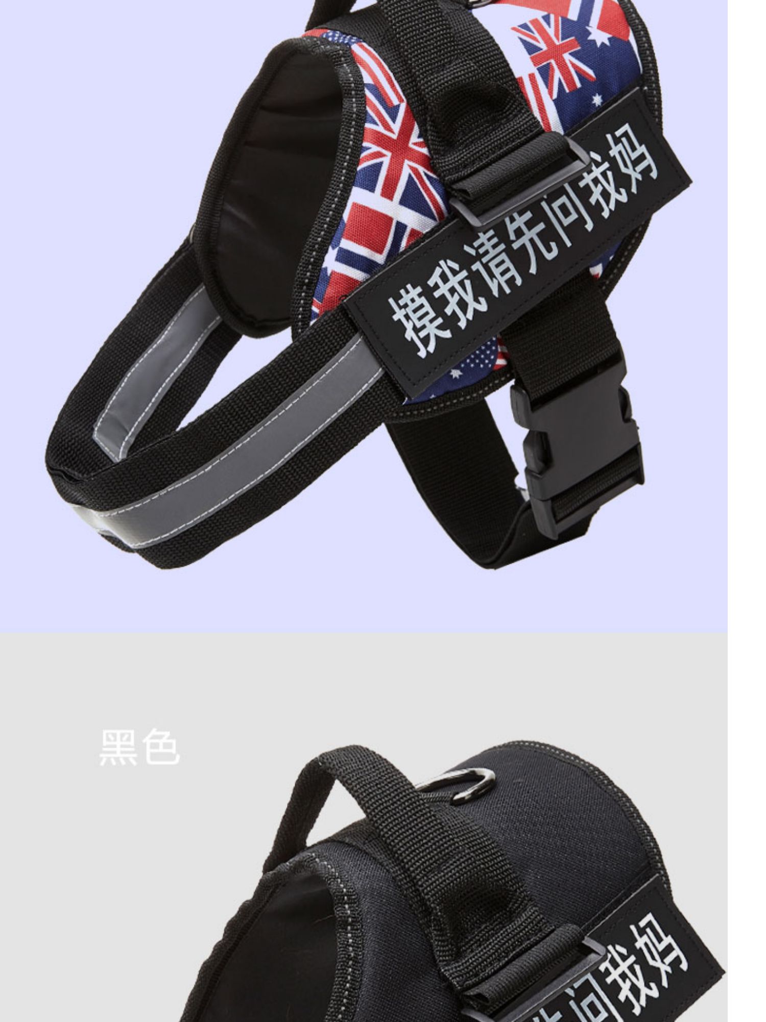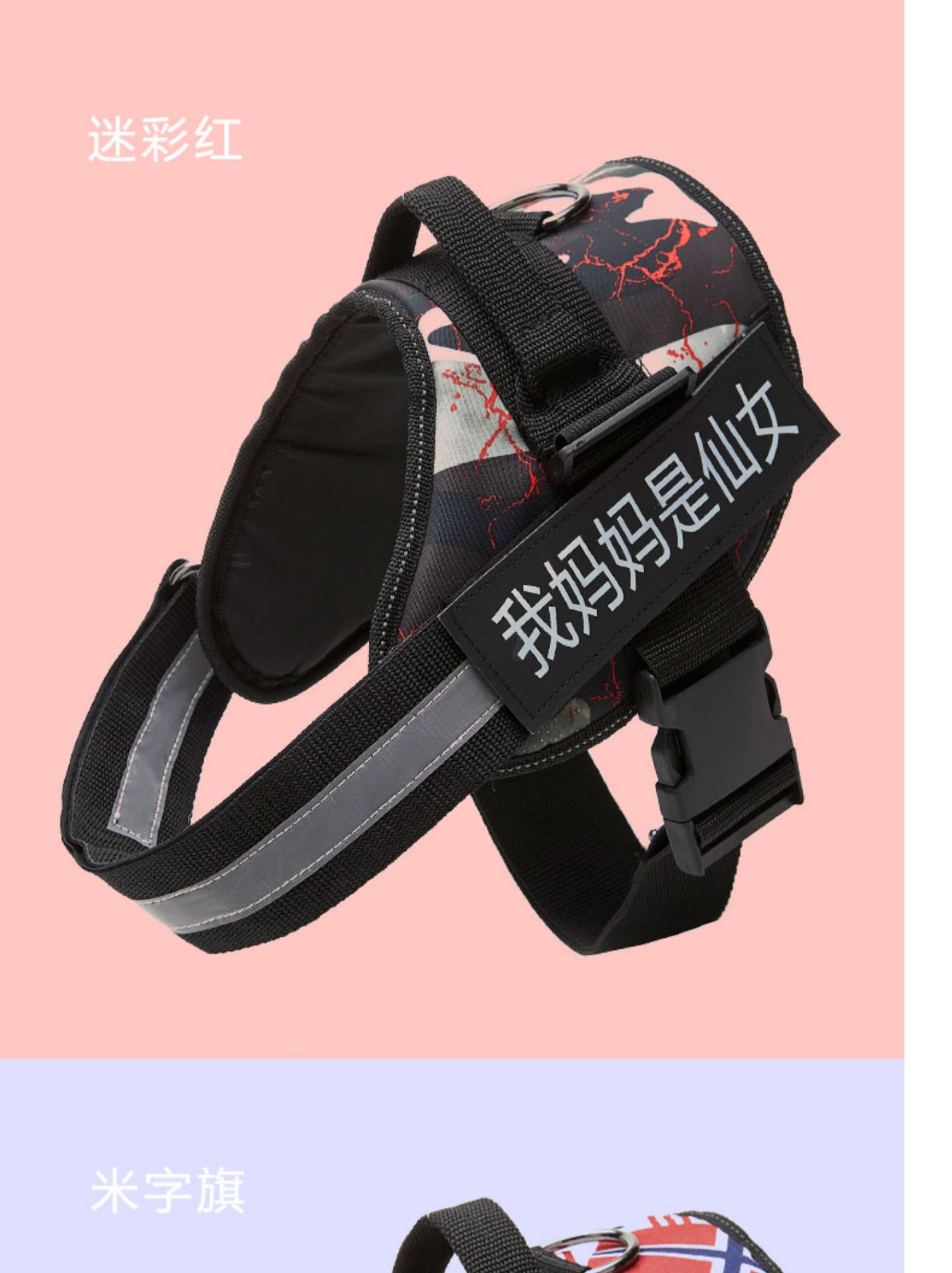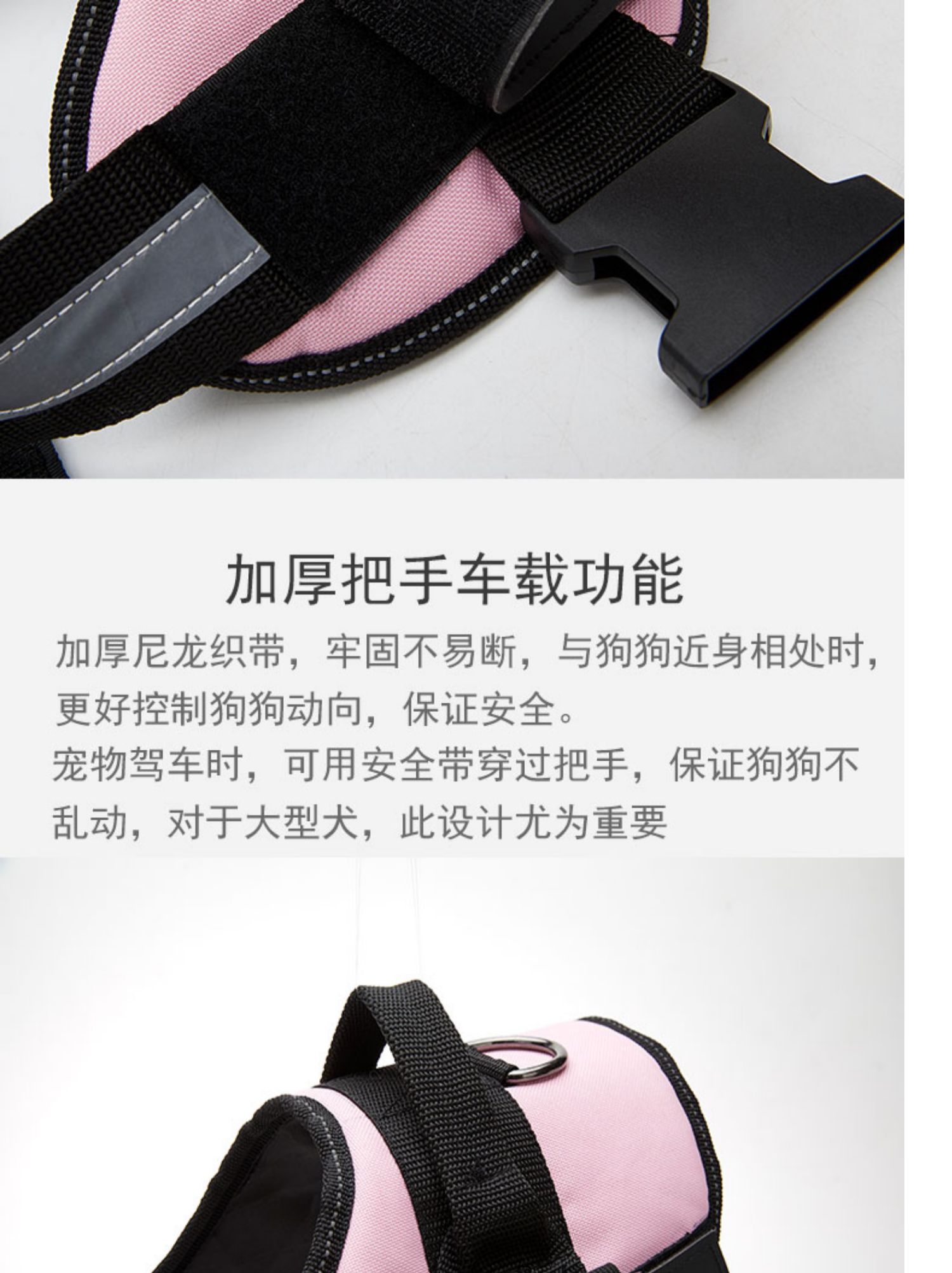 赠美容刷+铃铛+字帖+1.5米牵引绳!!全犬种可用防爆冲护胸,宠物胸背采用高密度牛津布+尼龙织带制作,使用便捷耐用,背部防爆冲D环设计,织带反光材质,使夜间行走安全性得到提升。