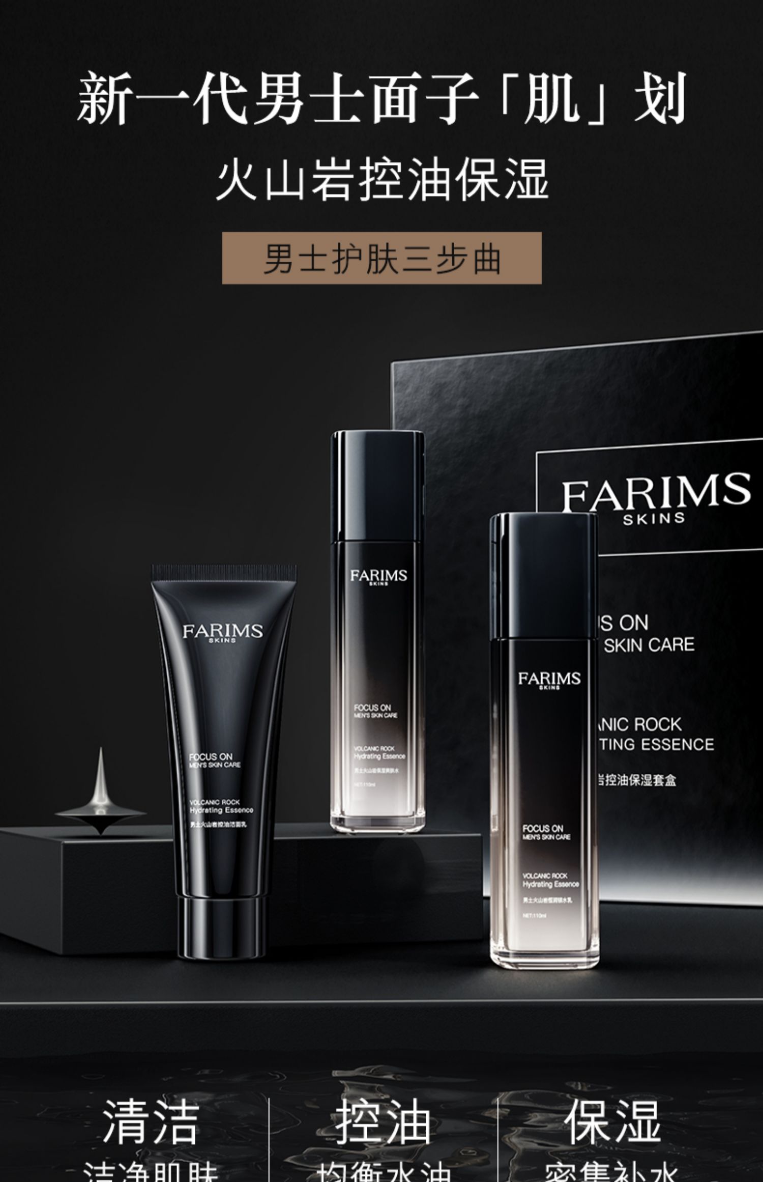 【超值3件套】高效补水,美白控油,祛粉刺,祛黑头,清洁毛孔+祛痘,清除多余油脂,适用于任何肤质,谁说男人不护肤,夏季保湿控油,和痘痘说拜拜!【赠过敏险】【赠运费险】
