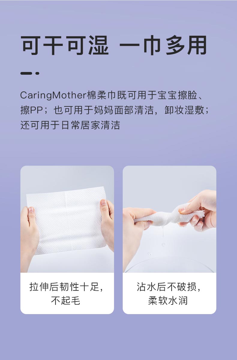 宝宝干湿两用棉柔纸巾,可干可湿,一巾多用,安全无添加使用放心,柔韧更亲肤。