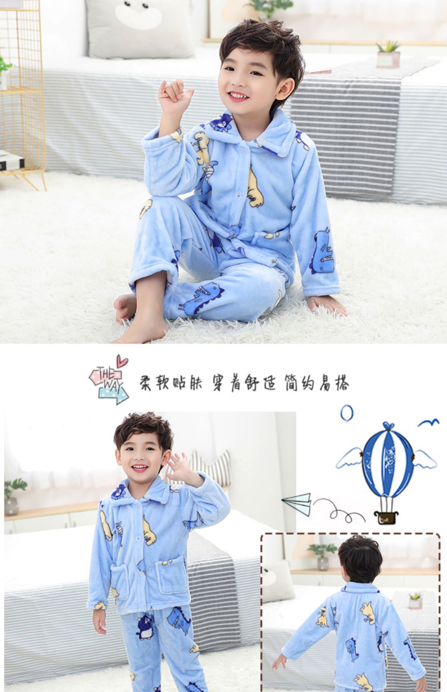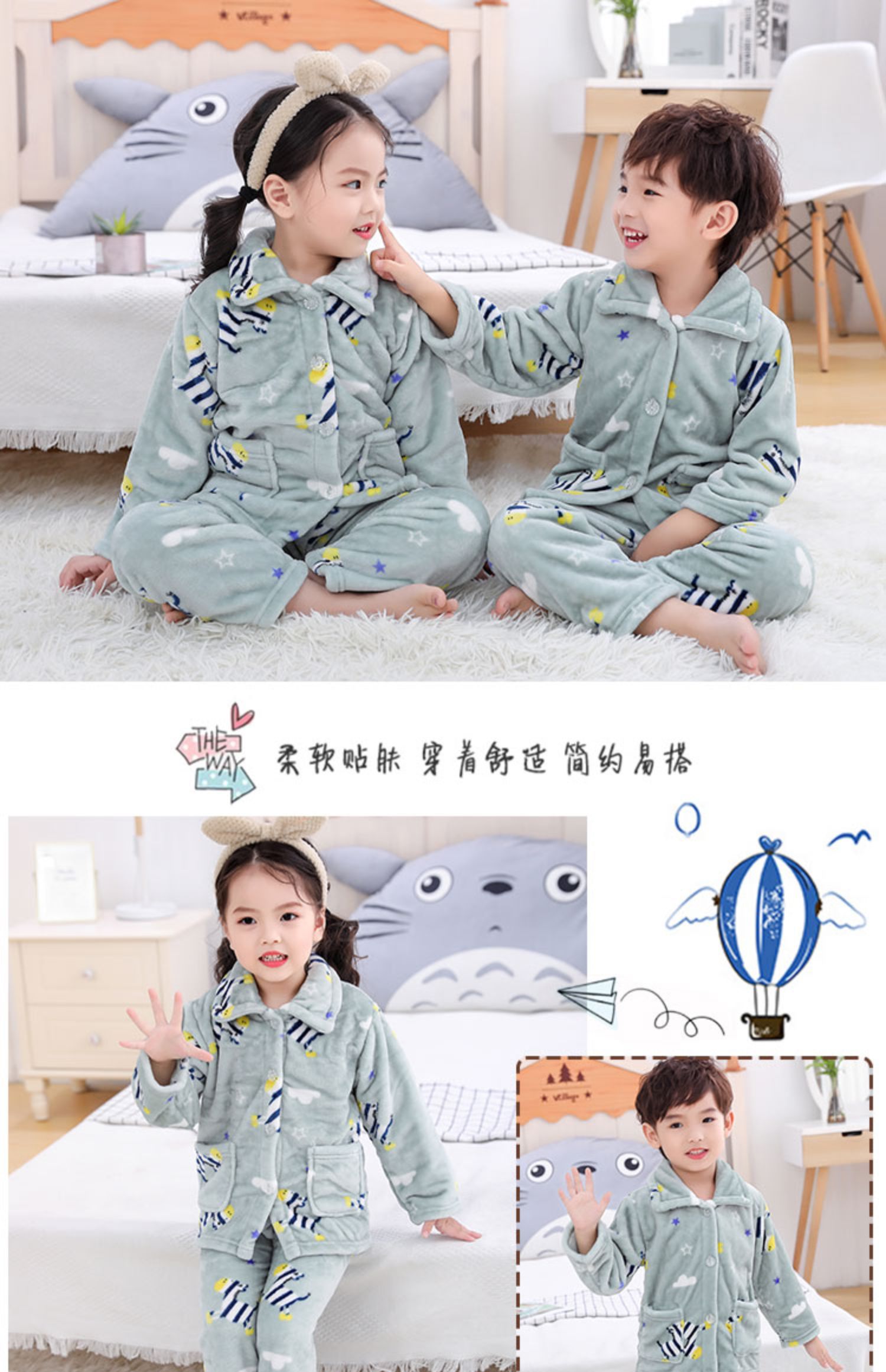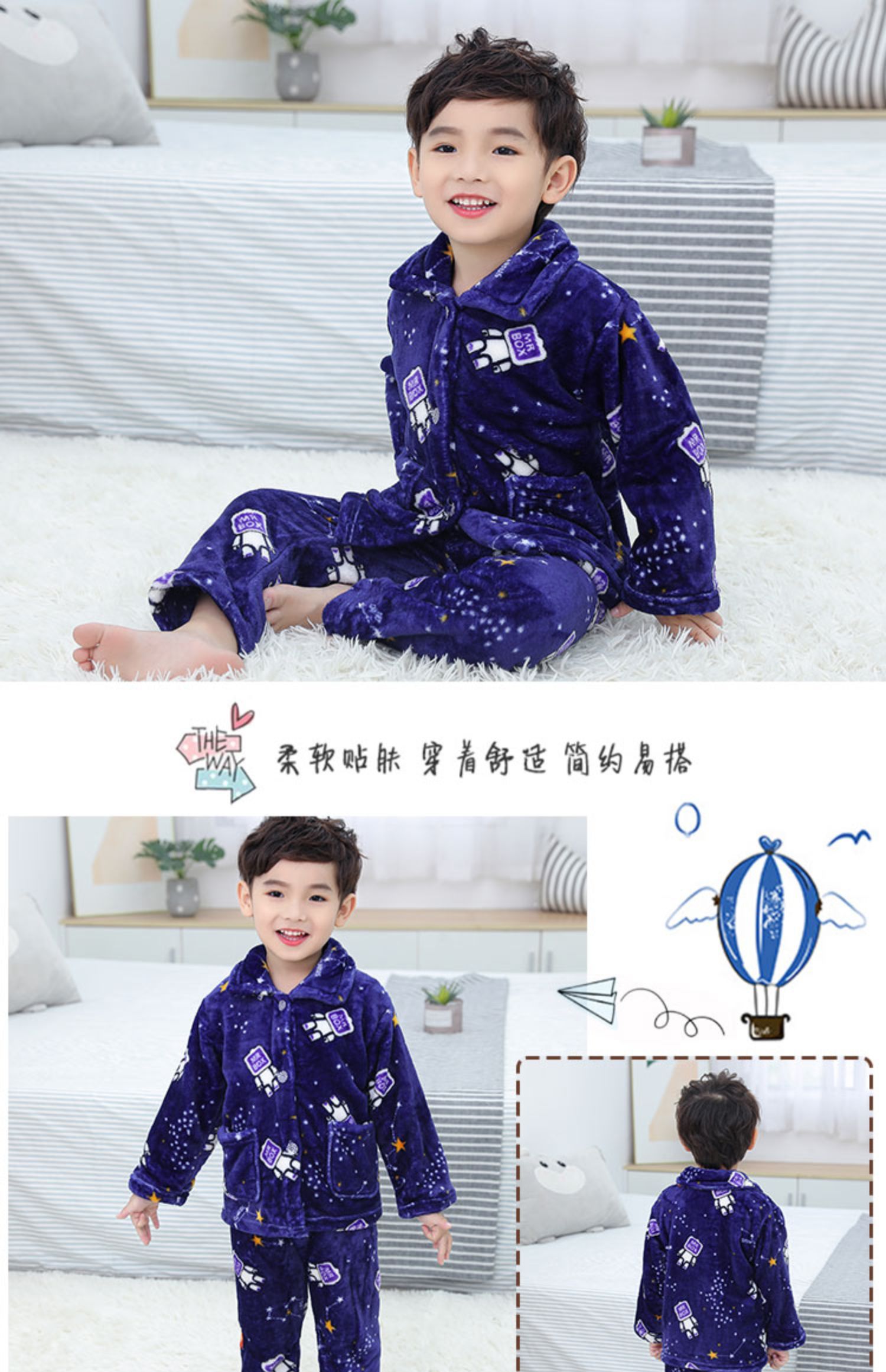 儿童加厚法兰绒卡通睡衣,高密度法兰绒,御寒保暖不臃肿。不掉绒,不掉色,无异味,更贴心,萌翻暖冬,多种款式随心选