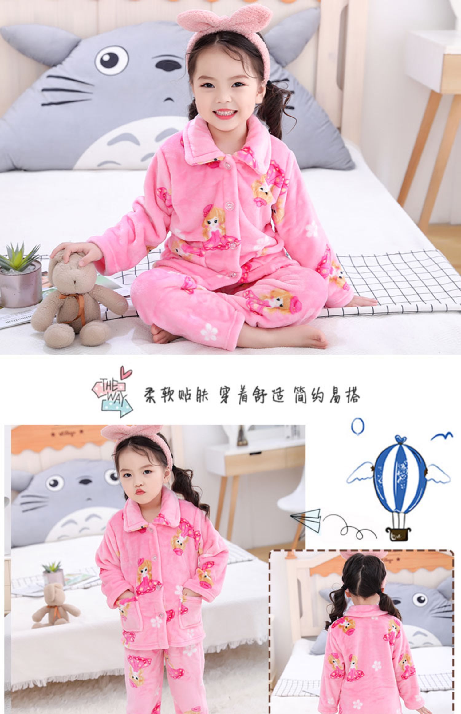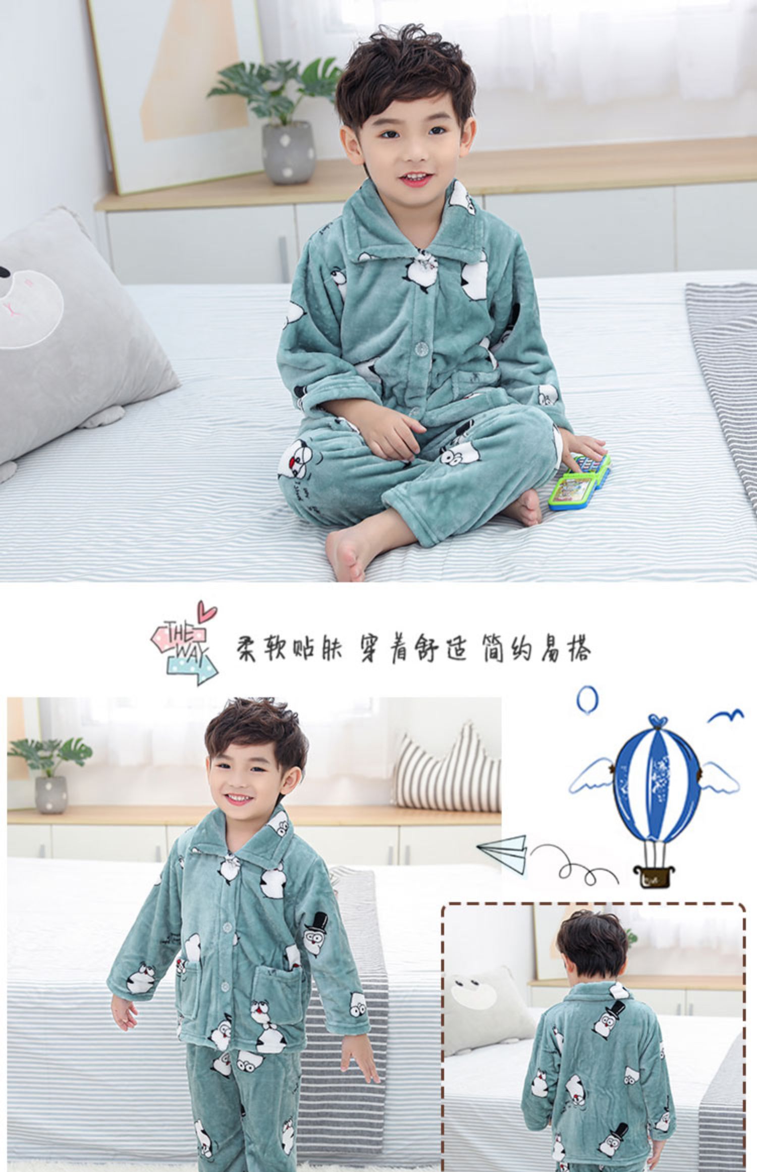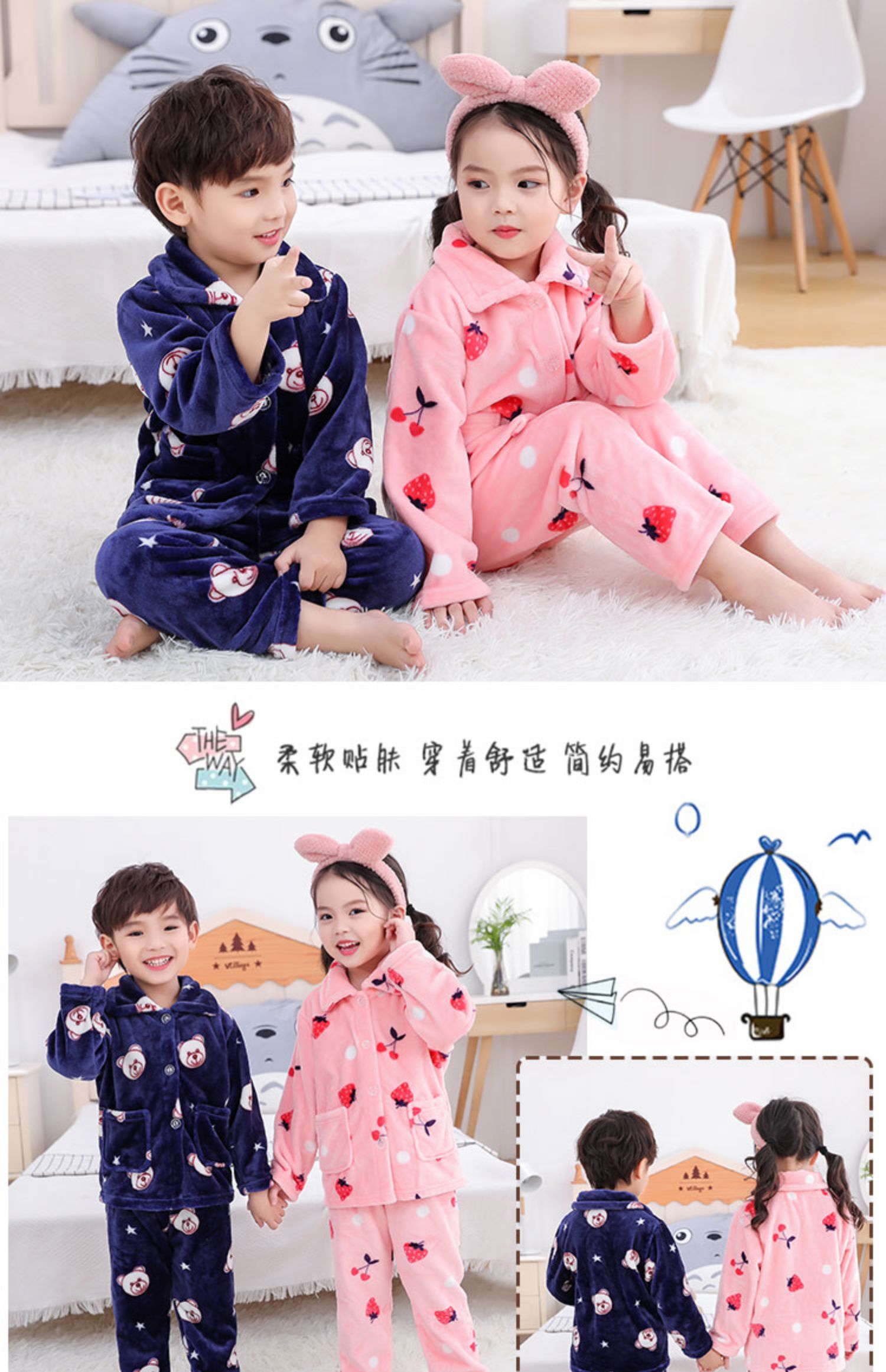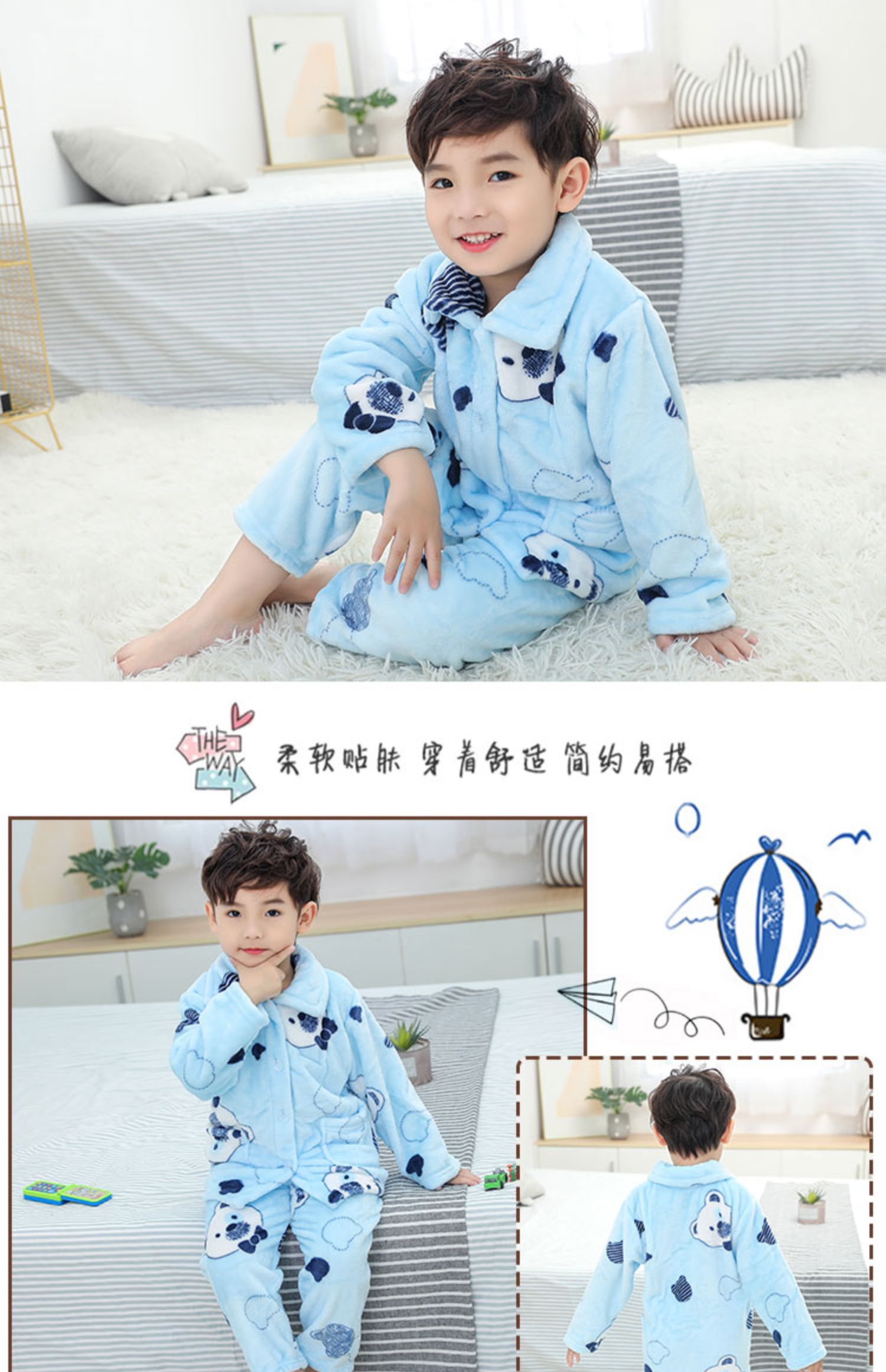 儿童加厚法兰绒卡通睡衣,高密度法兰绒,御寒保暖不臃肿。不掉绒,不掉色,无异味,更贴心,萌翻暖冬,多种款式随心选