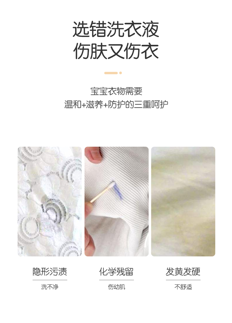 宝宝专用,不含荧光剂,温和洁净,轻松去污,干净无残留,柔顺护色,怡人清香,温和亲肤,多效洁净,呵护宝宝娇嫩肌肤