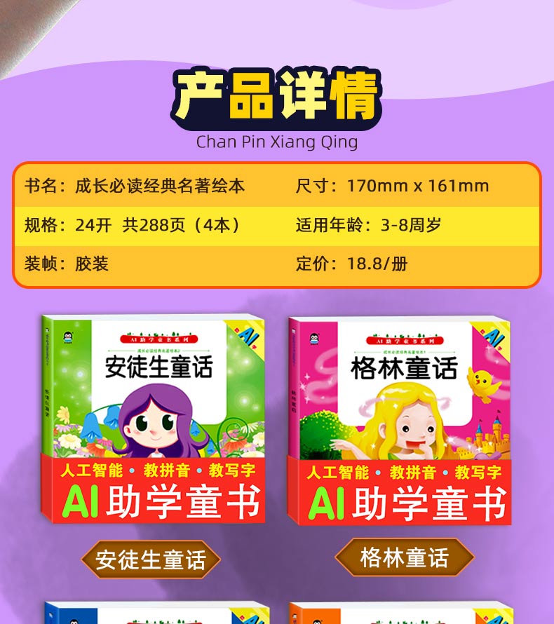 【3D立体有声伴读】安徒生童话格林童话一千零一夜伊索寓言。共288页,彩图注音版,丰富的AI多媒体互动,有声词语解释,寓教于乐,儿童成长必备的经典图书【赠运费险】