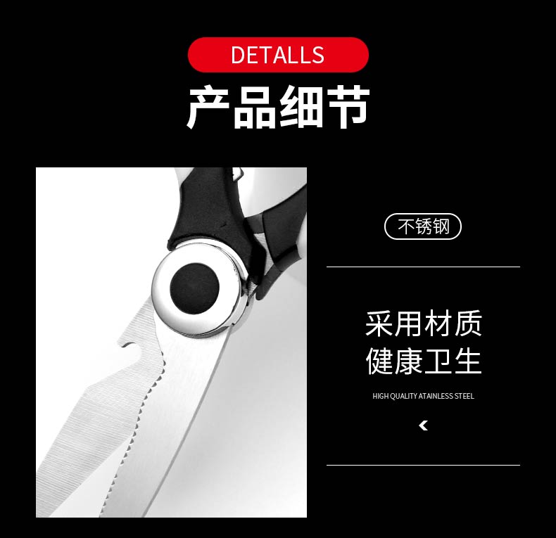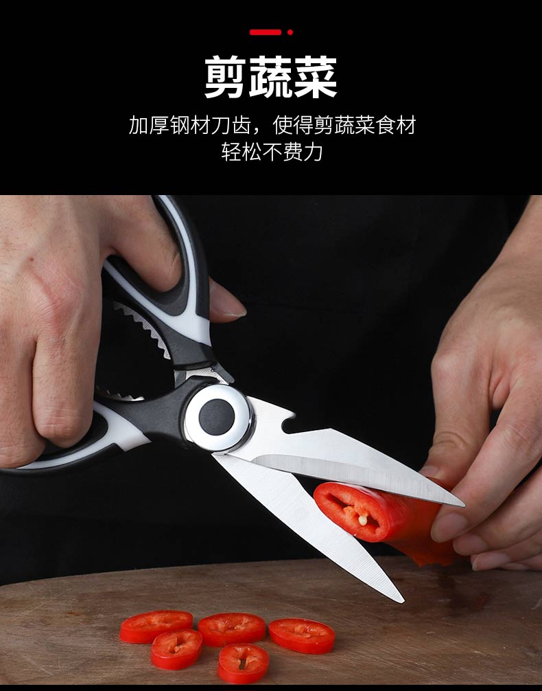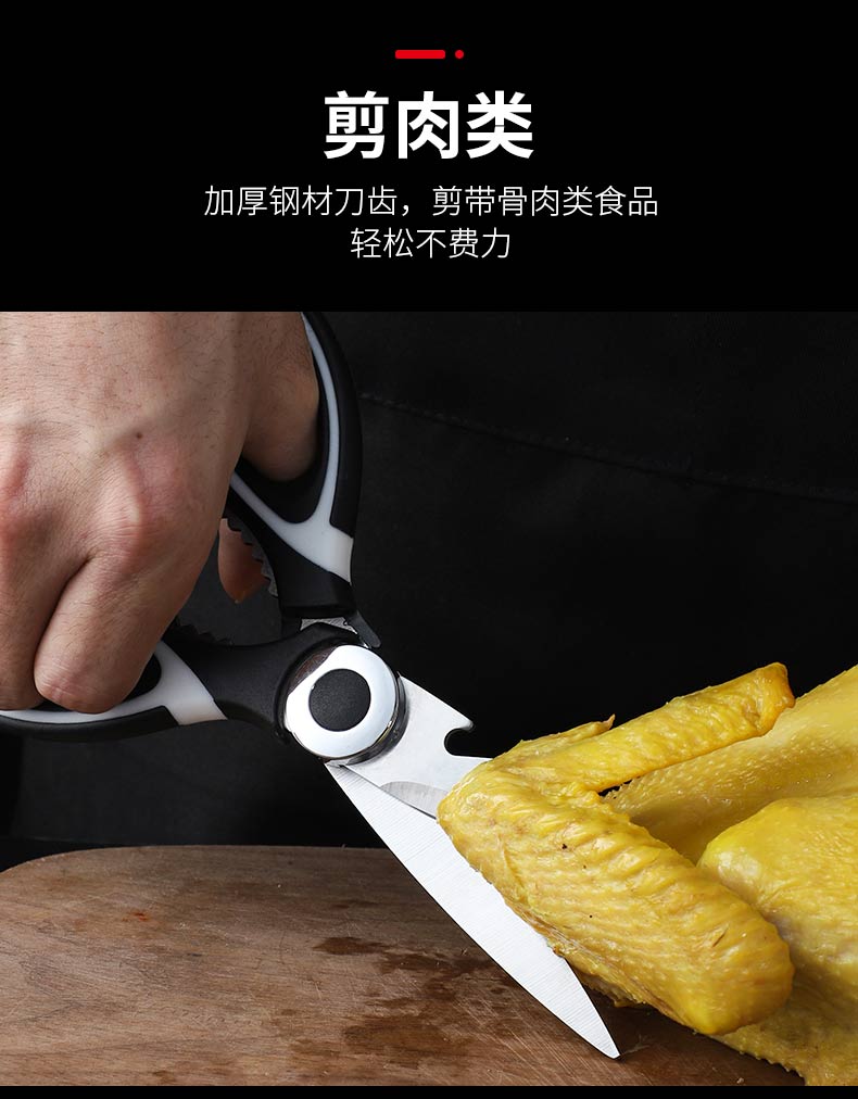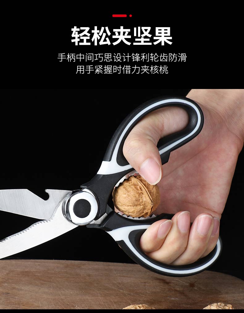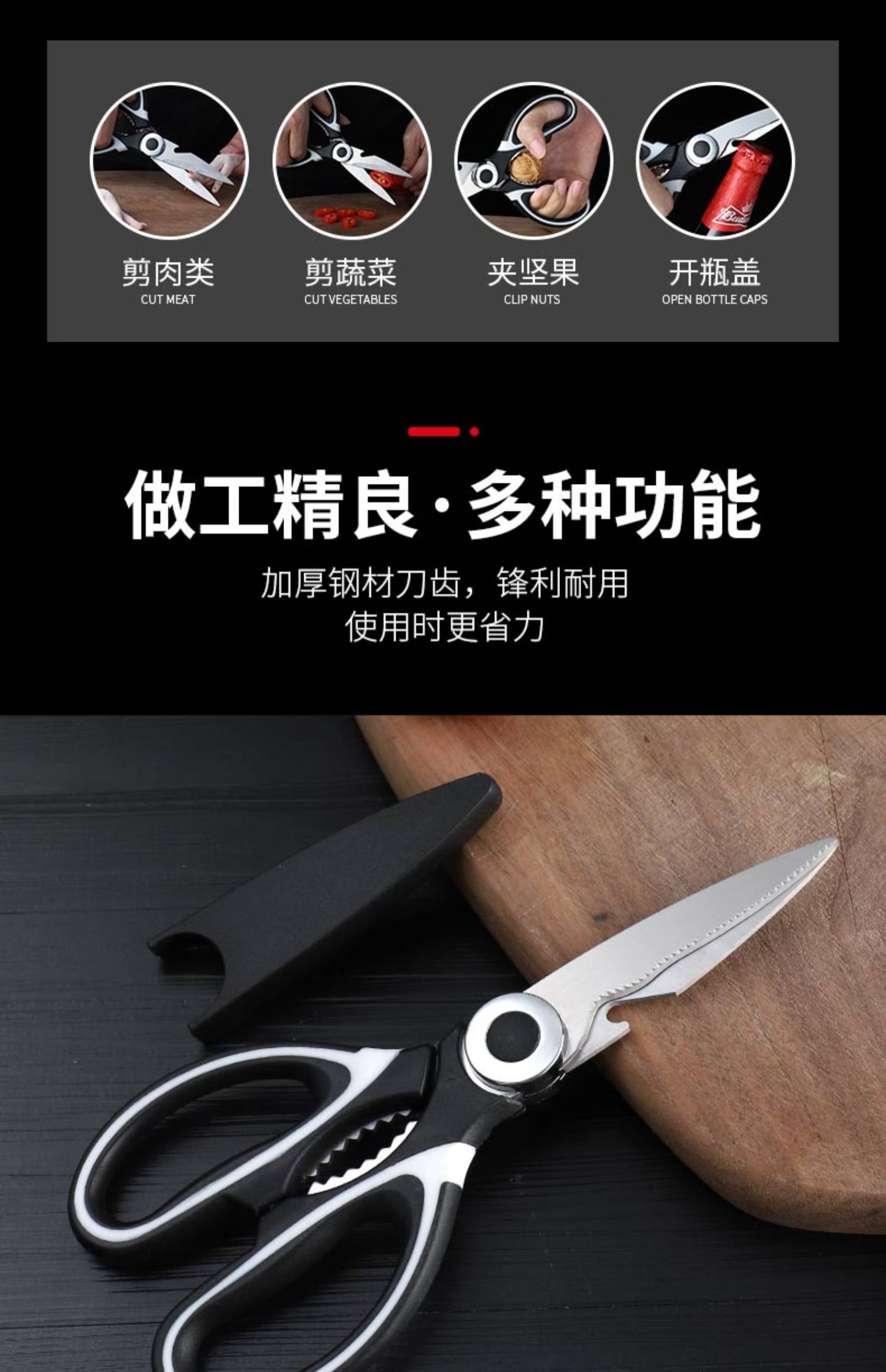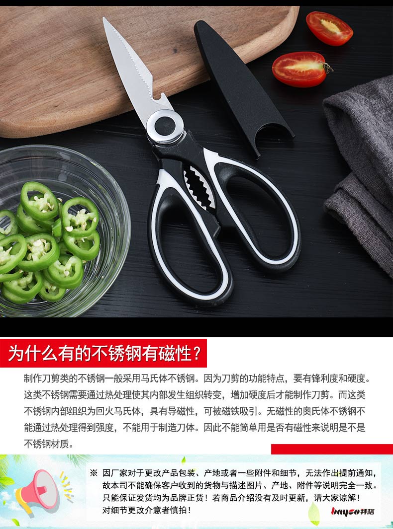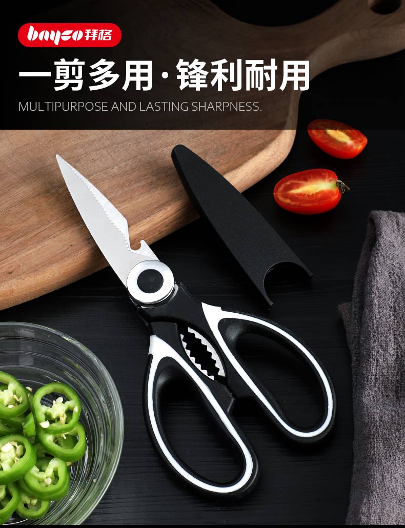 拜格品牌,多用途剪刀、厨房剪刀、家用剪刀三件套,不锈钢材质锯齿弯刀,不易生锈经久耐用欧防滑省力,带齿剪柄开瓶盖夹坚果,刀刃锋利无比,注塑手柄握感舒适,不磨手!