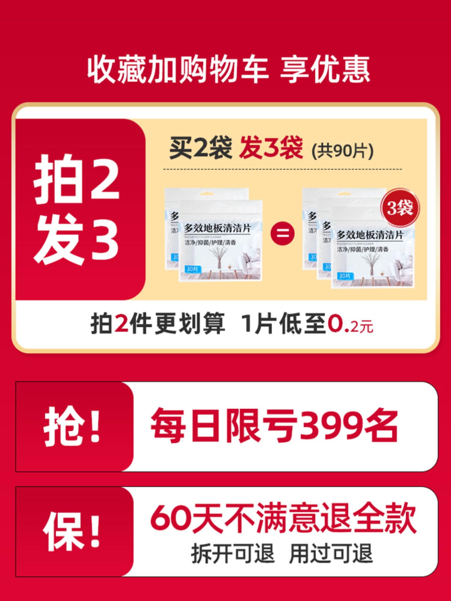 买2发3(共90片)【居家神器】地板清洁片,家里清洁神器,浓缩配,小小一片,遇水即溶,快速去污,恢复干净如新,强力去污!不打滑,无刺激,持久留香,清洁!