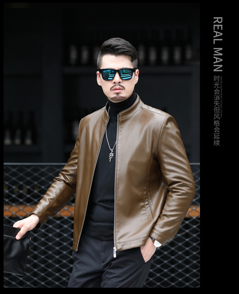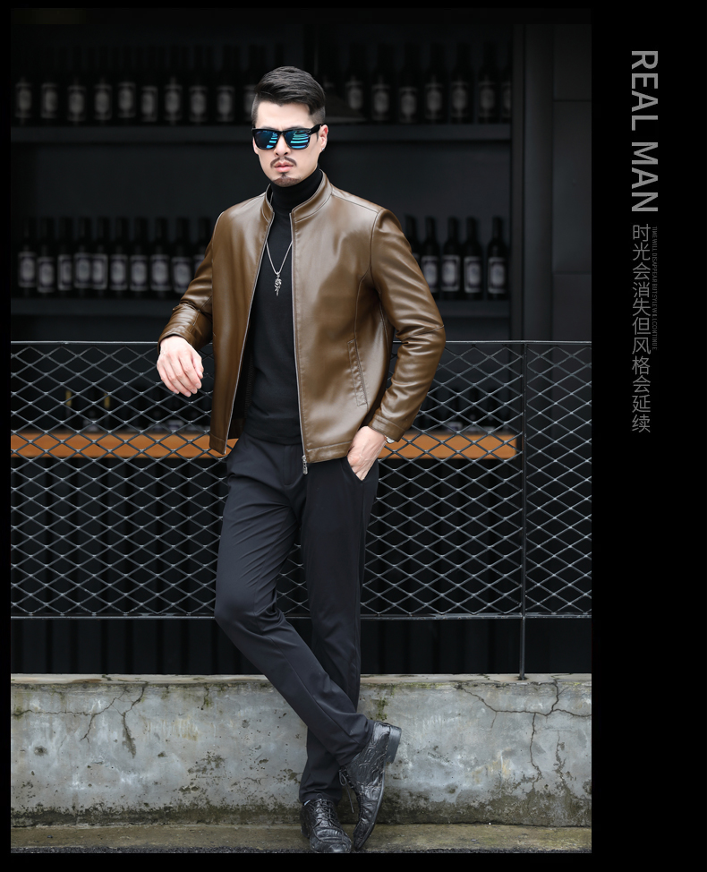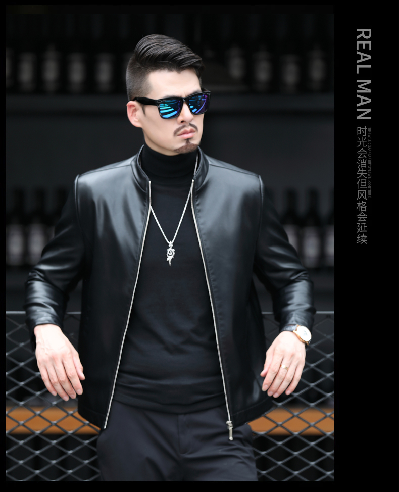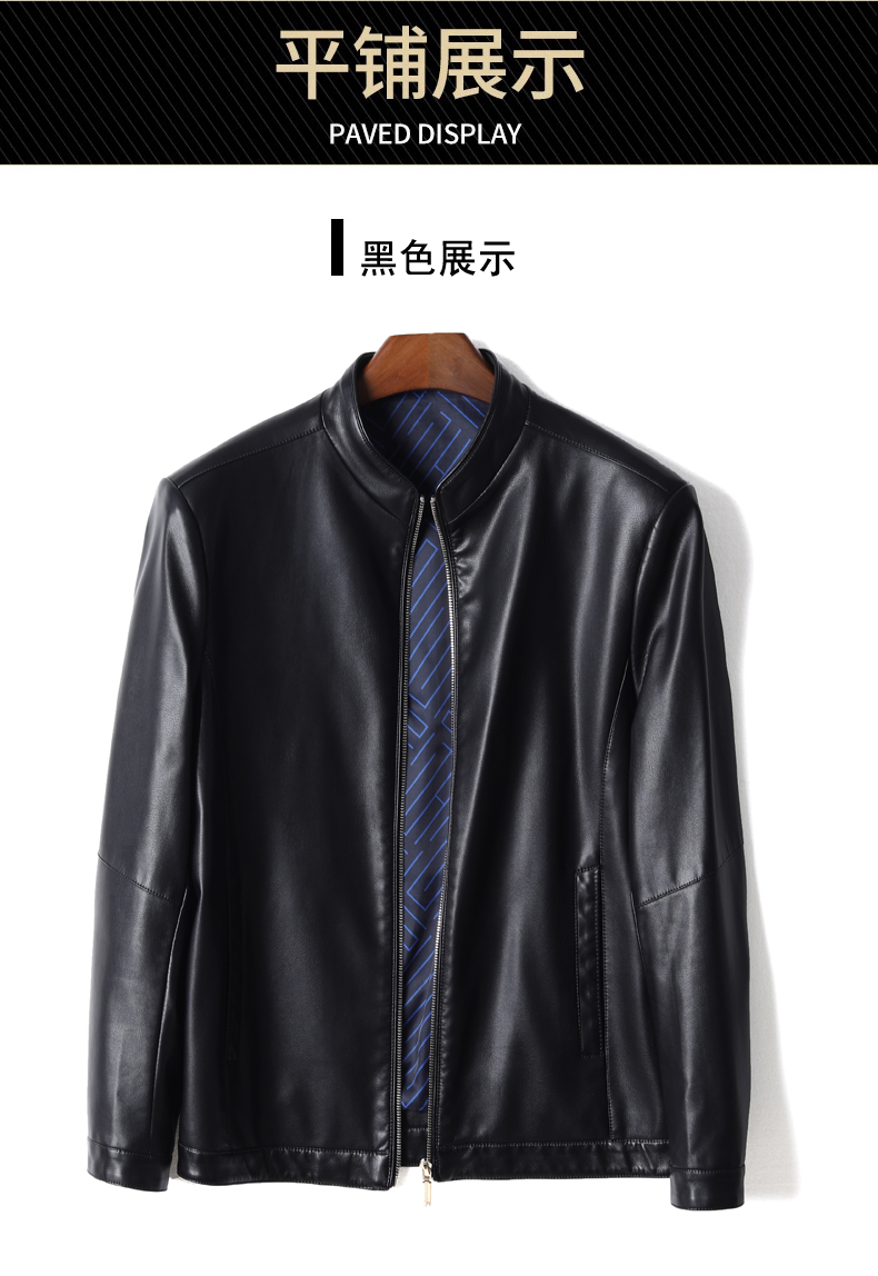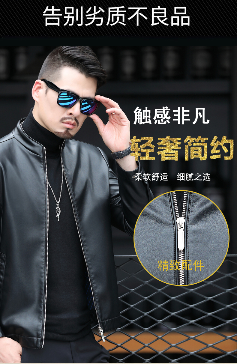 精选海宁高档皮衣夹克,秋季薄绒商务外套,防风保暖,优质生态皮,真皮质感好保养,比真皮更耐穿,成熟帅气,挺拔有型,给爸爸给老公,凉季的暖心礼物~【赠运费险】