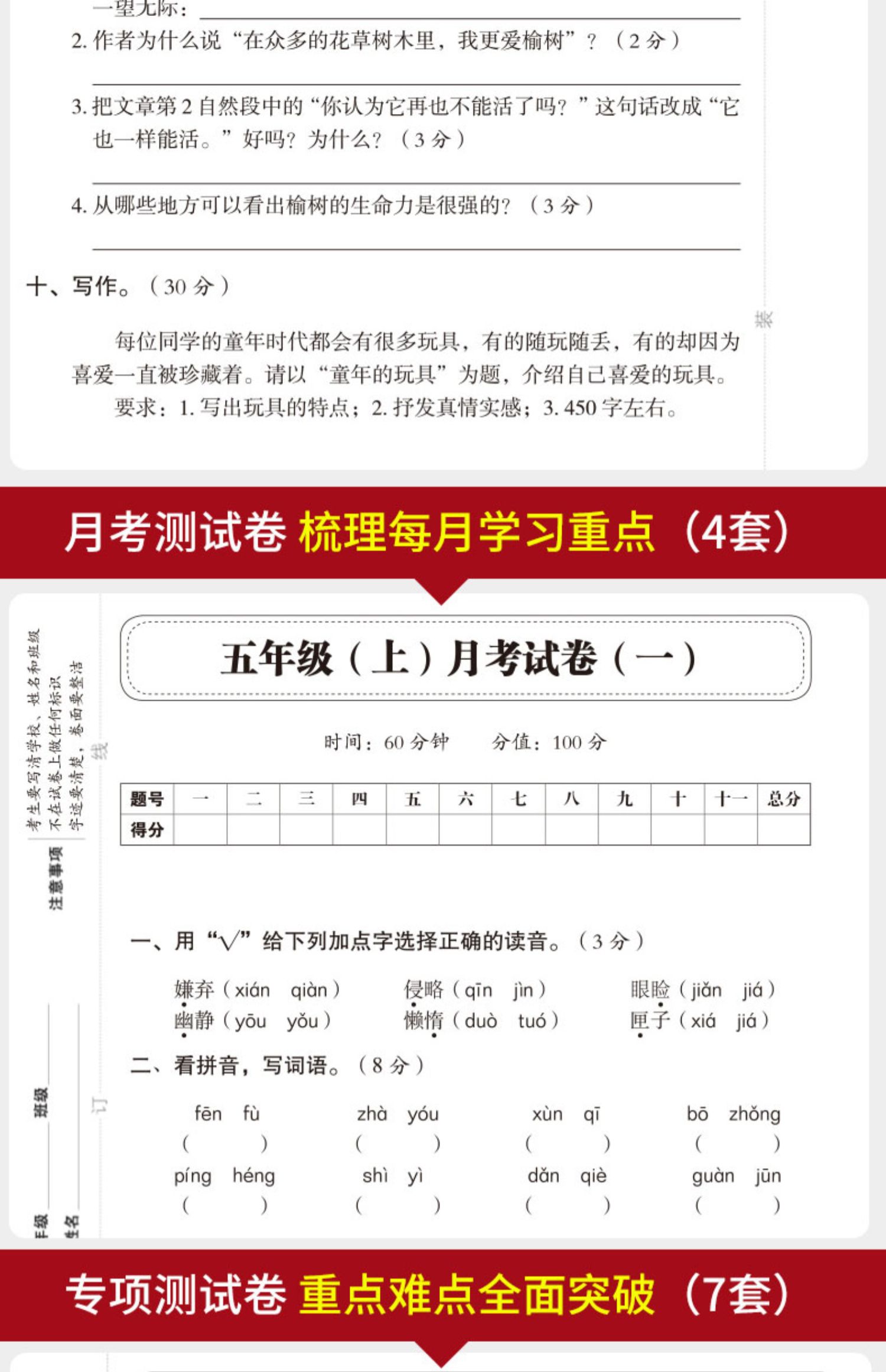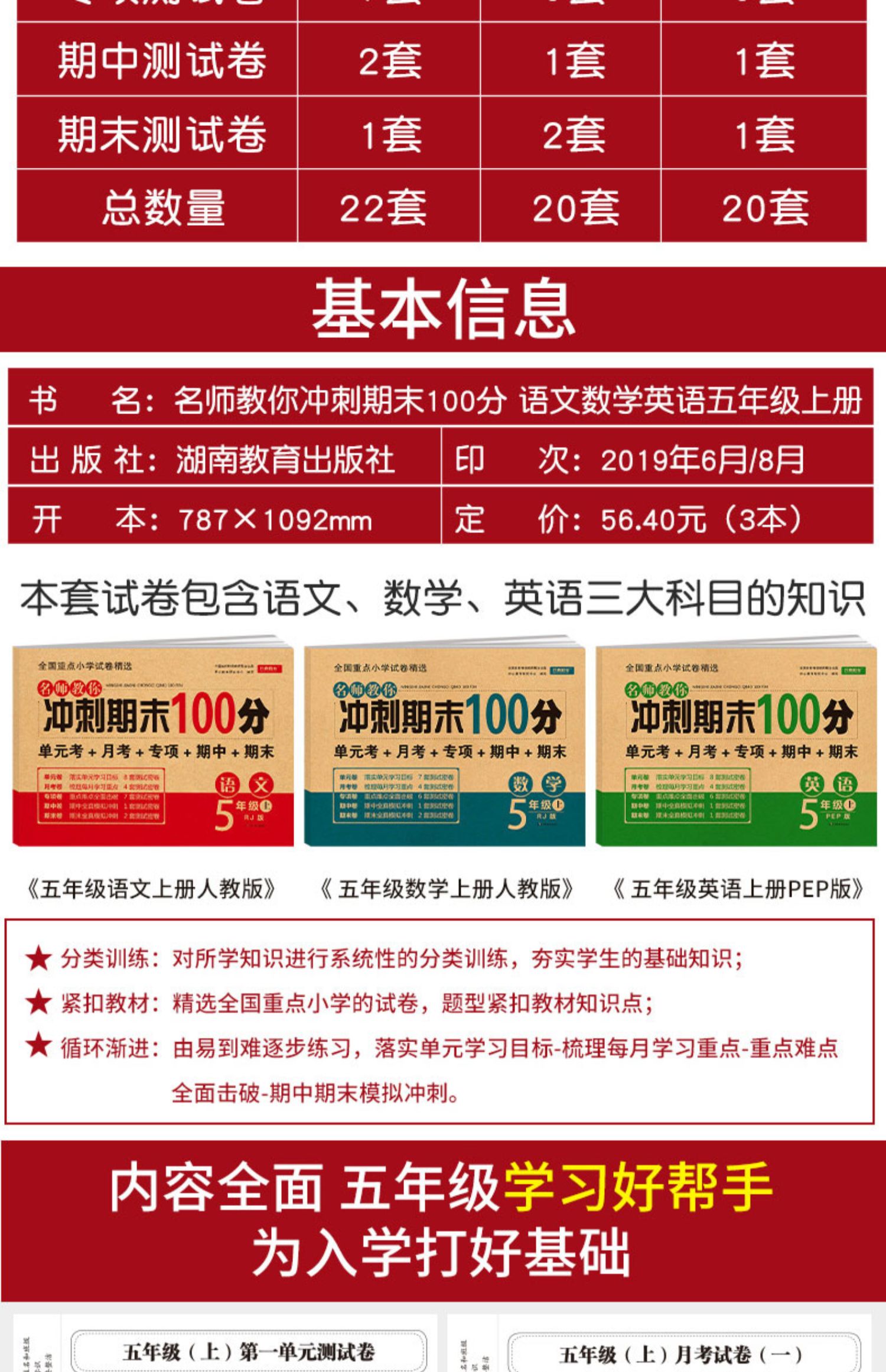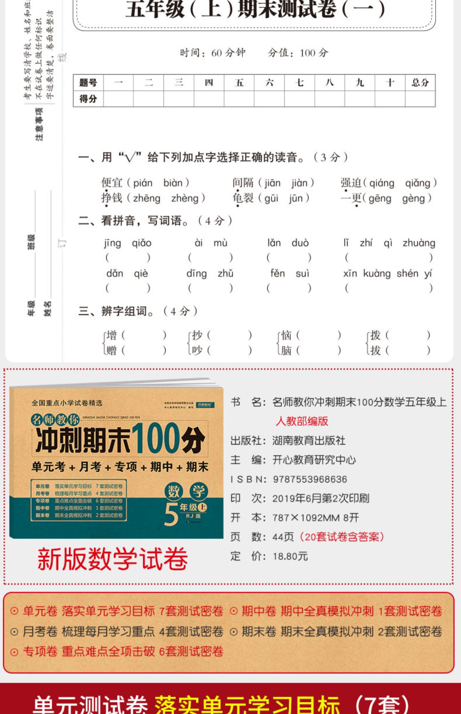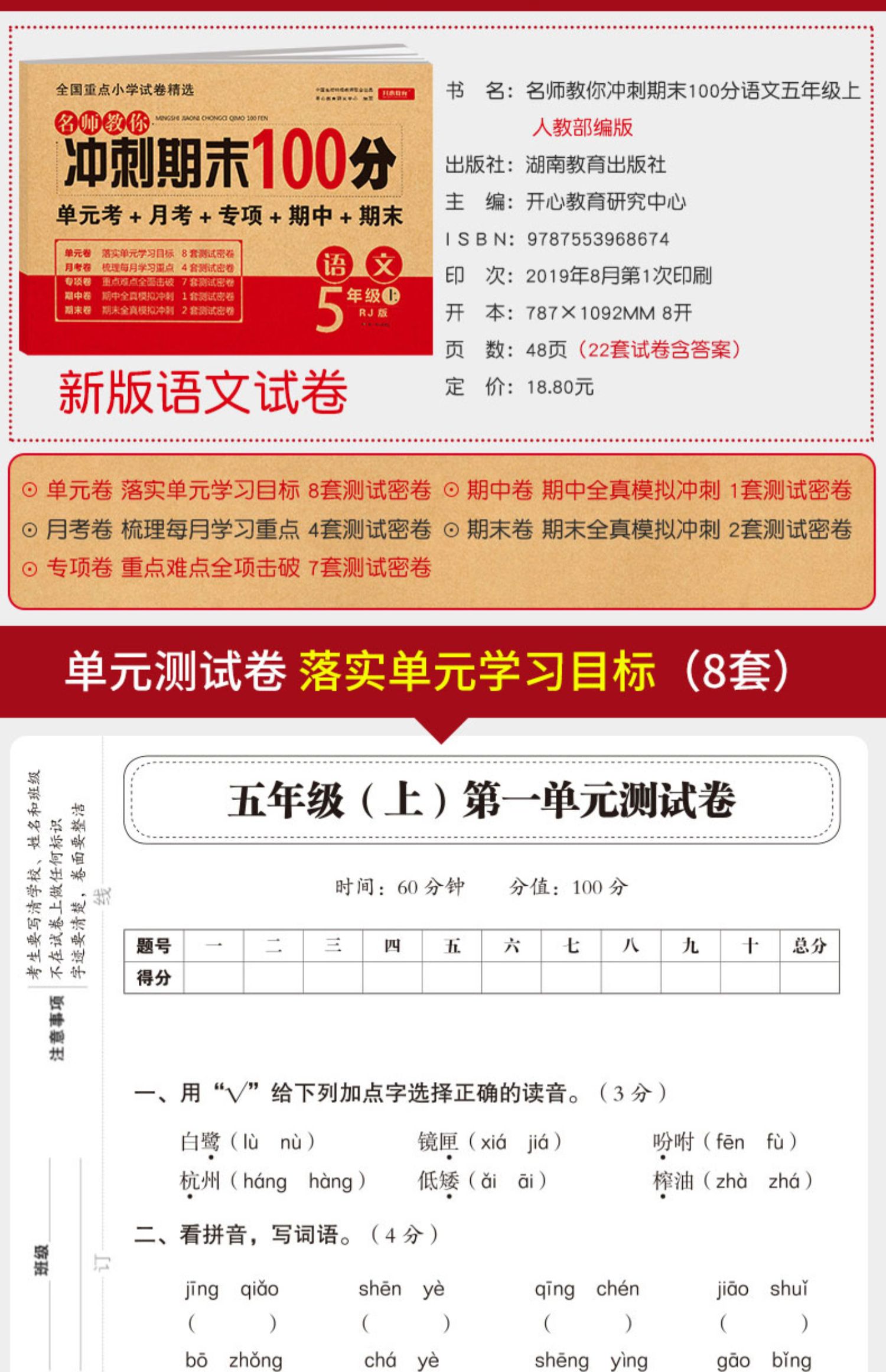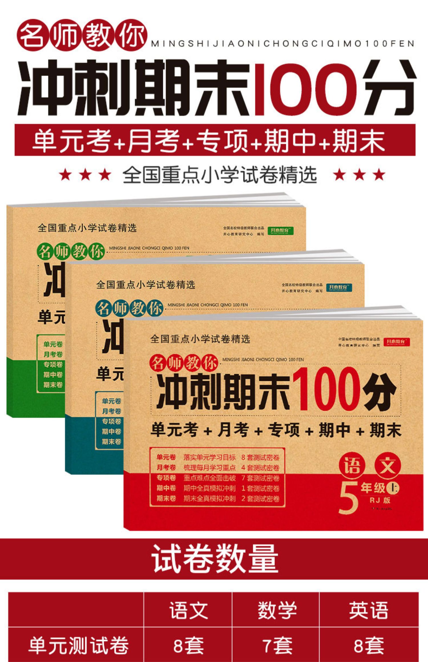 【助飞图书】人教版五年级上册全套冲刺100分,语数英62套。巩固知识,梳理重点。题型丰富,内容全面,老师推荐,让孩子轻松考个好成绩!