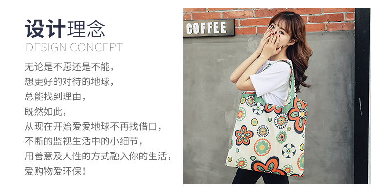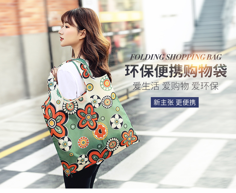 田园风可折叠环保便携购物袋,时尚新主张,便携大容量,爱生活,爱购物,爱环保。就算是去买菜,咱也要是最潮时尚的菜市场风景线!