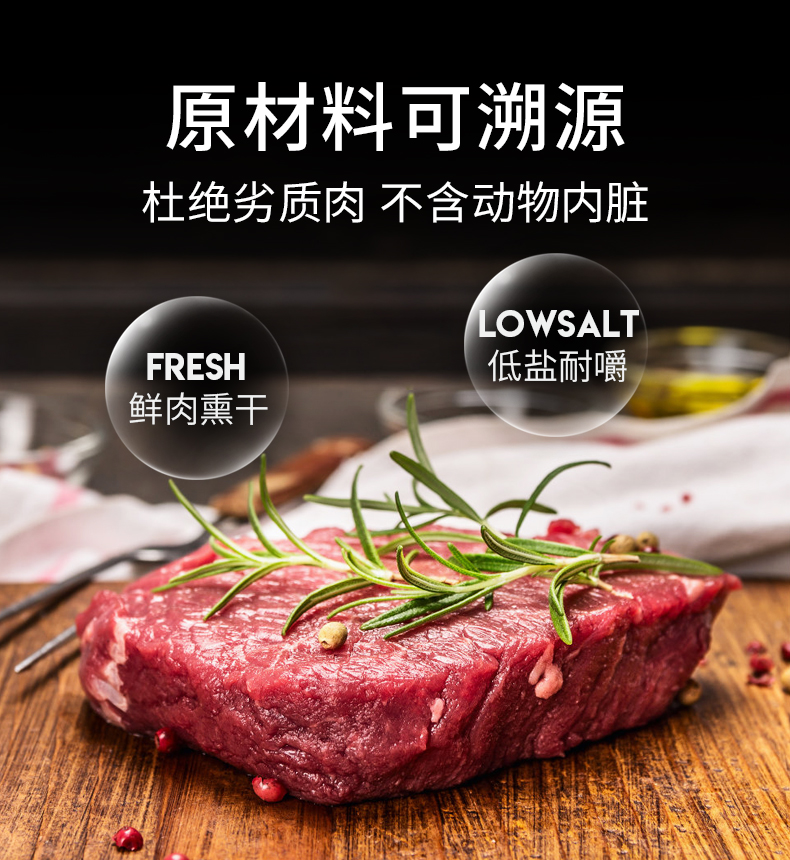 【佩蒂旗下品牌,上市公司】原材料可溯源,手工制作低盐不添加防腐剂,牛肉含量43百分比,超高适口性