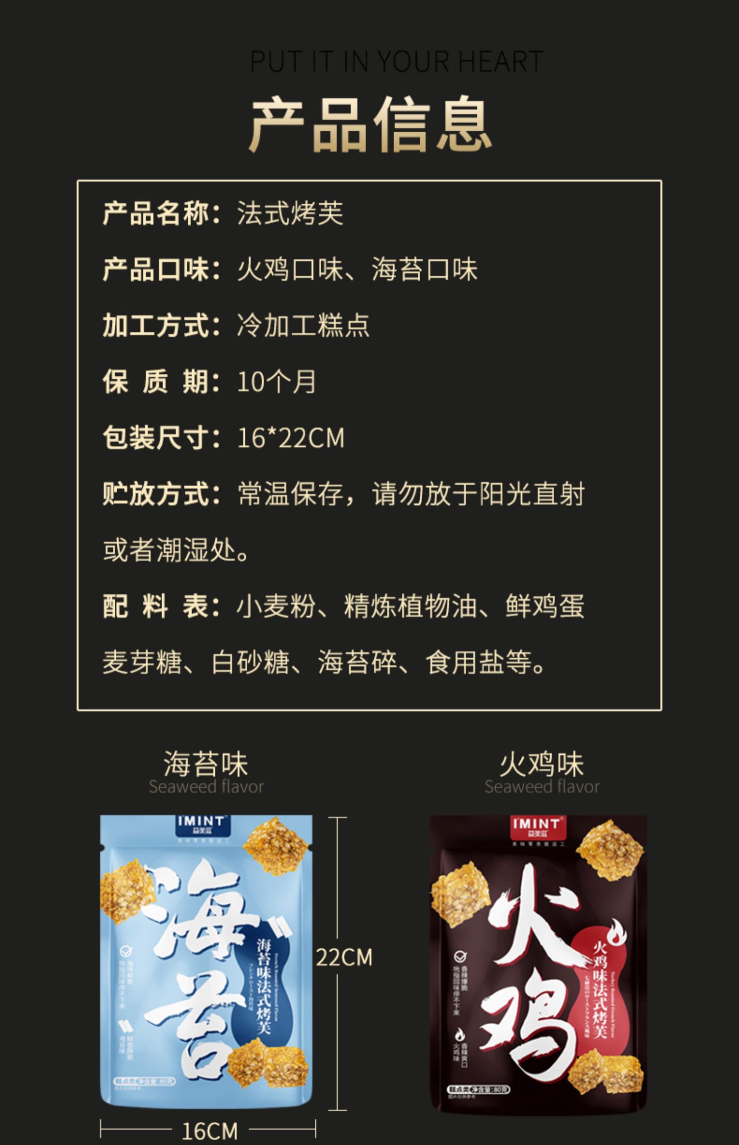 IMINT法式烤芙饼干,非油炸,健康好味道,酥脆火鸡烤麸,辣有层次,鲜香浓郁,海苔-鲜薄香脆,原滋原味,入口香脆,悠闲时光零食不二之选,赶紧入手吧