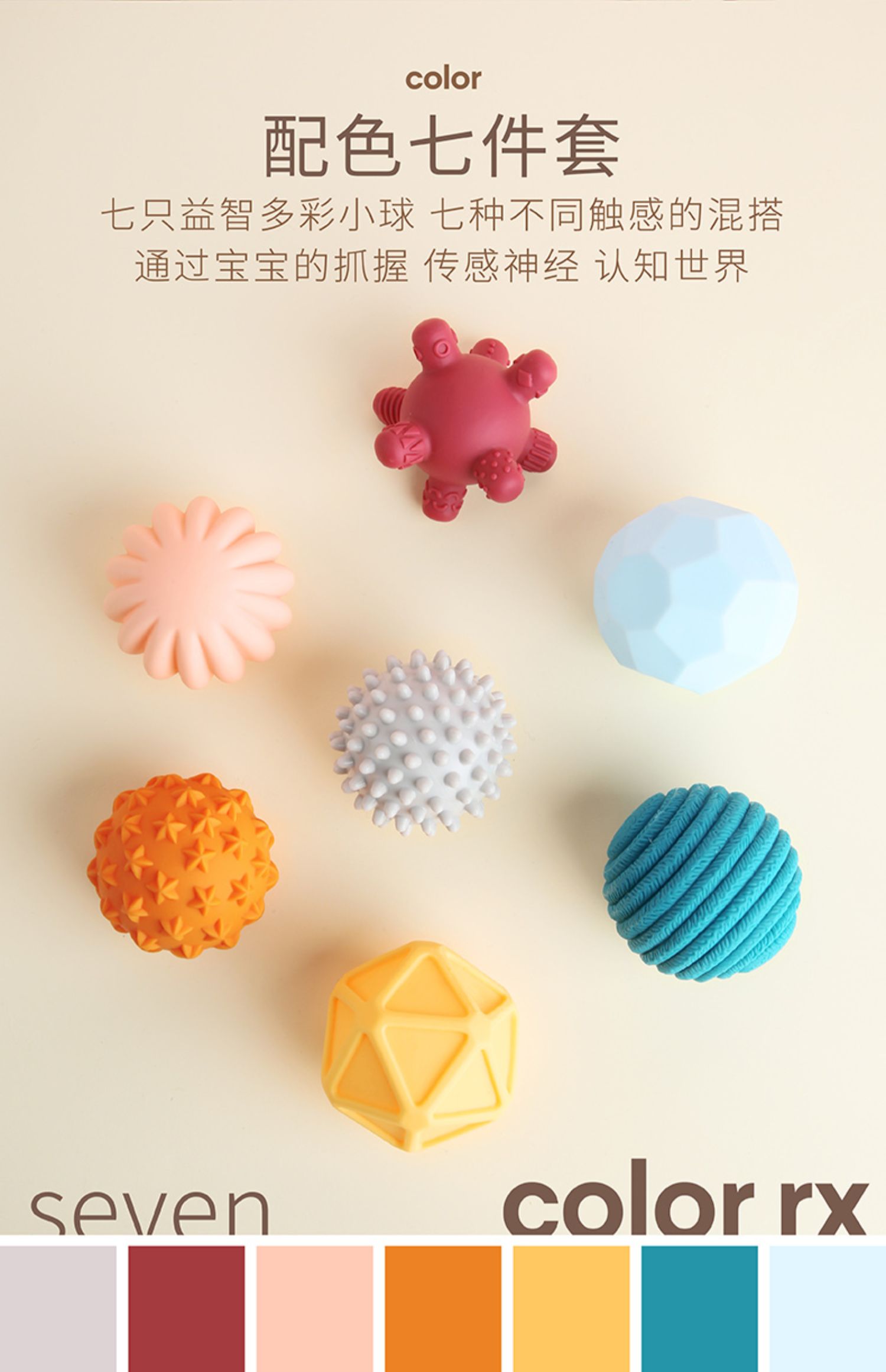 婴儿的多彩童年!少不了这款软胶触感手抓球!多彩色,多纹理,开发宝宝的感知辩色能力,锻炼宝宝的手脑协调能力~还可以放心啃咬的款,宝妈放心囤哟!【赠运费险】