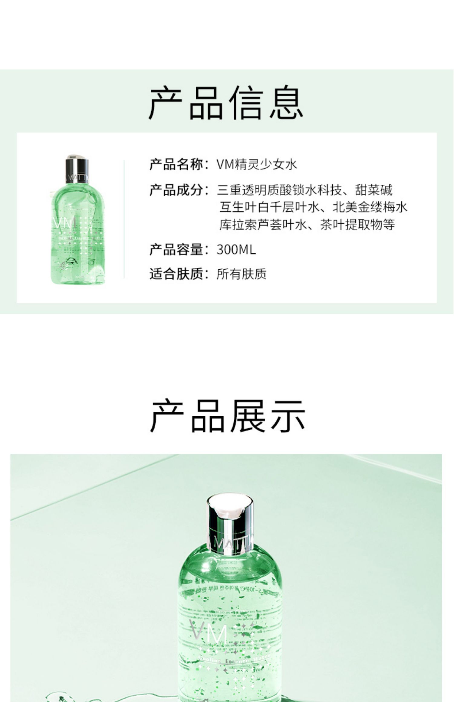 韩国VM精灵水少女水精华液,收缩毛孔,修复面部,一瓶水女水,轻松解决肌肤所有问题。全新配方,24小时焕能技术肌肤一键还原的神秘力量。赠送湿敷棉+随身杯【赠运费险】