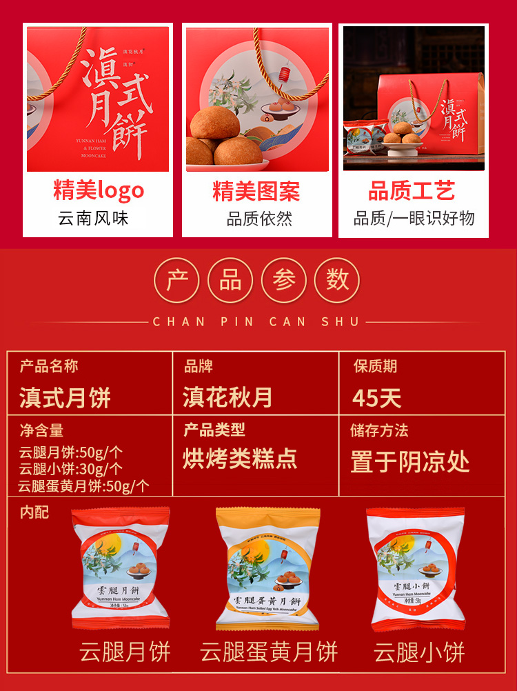云腿小饼月饼礼盒8枚,不看价格看质量,云南别样特产,手工月饼选用云南宣威老火腿,酥软饼皮包裹醇厚肉馅,好吃不腻!
