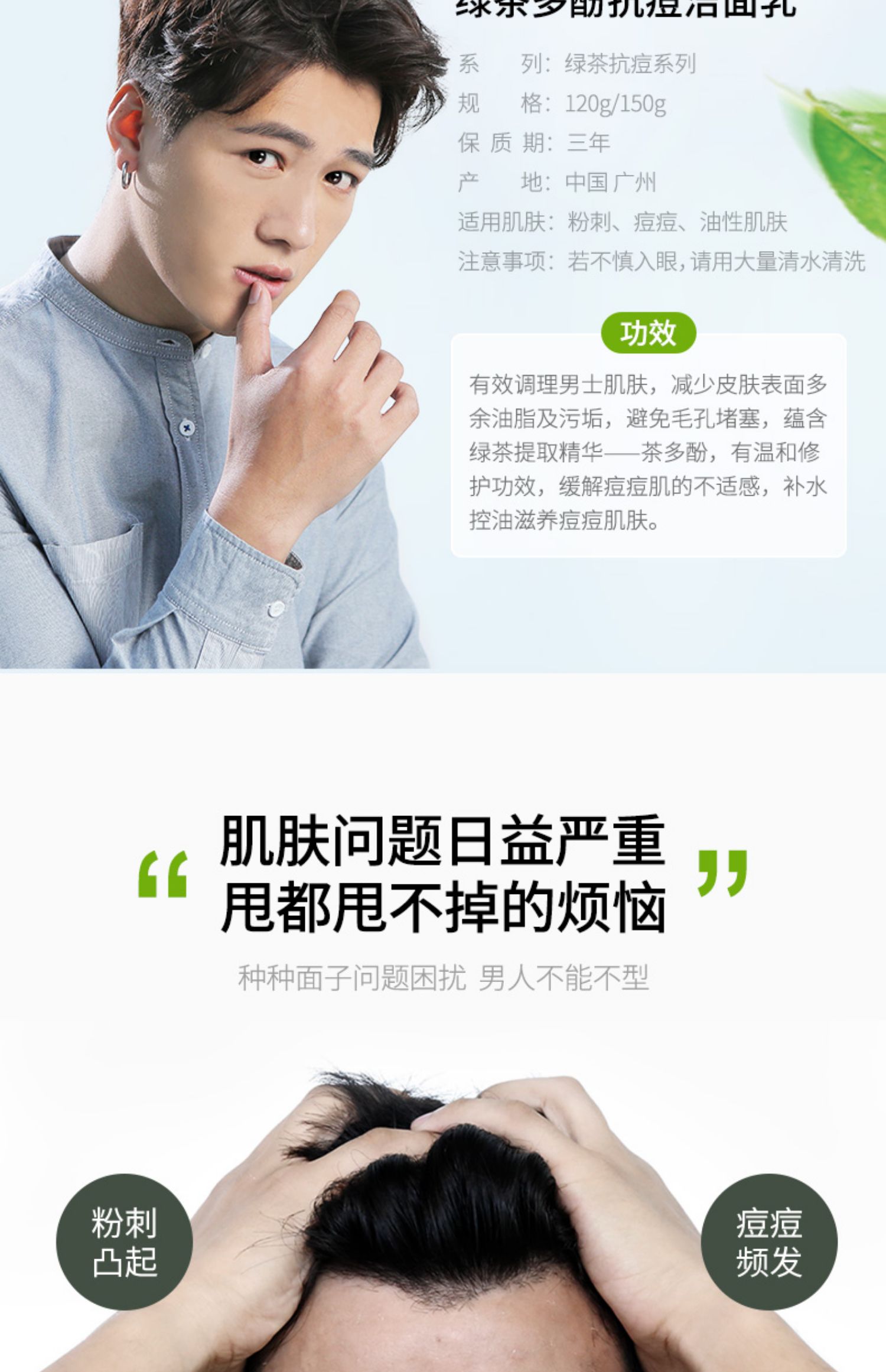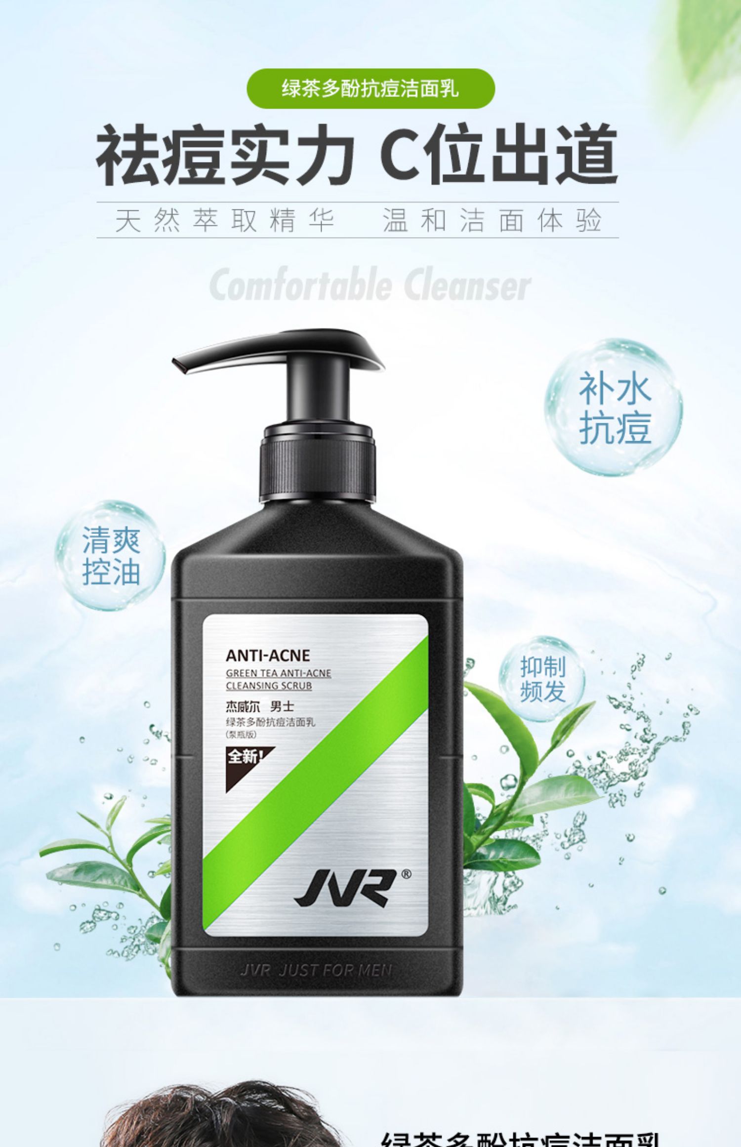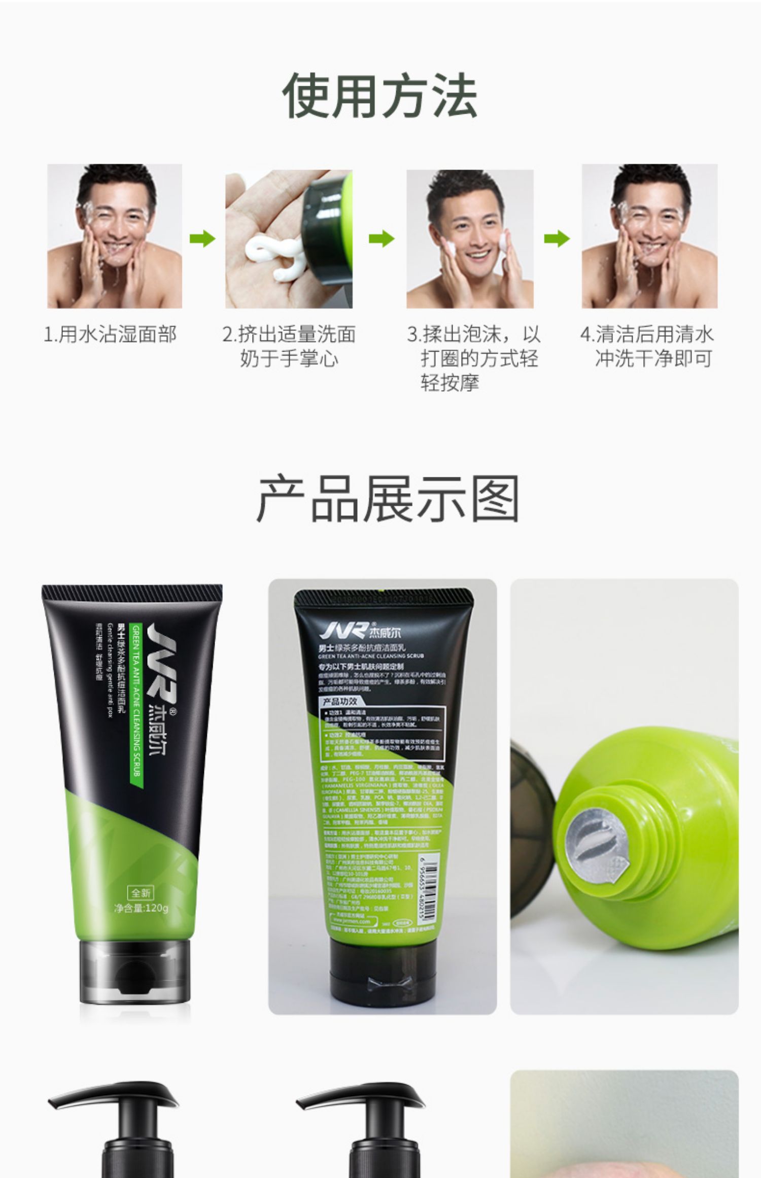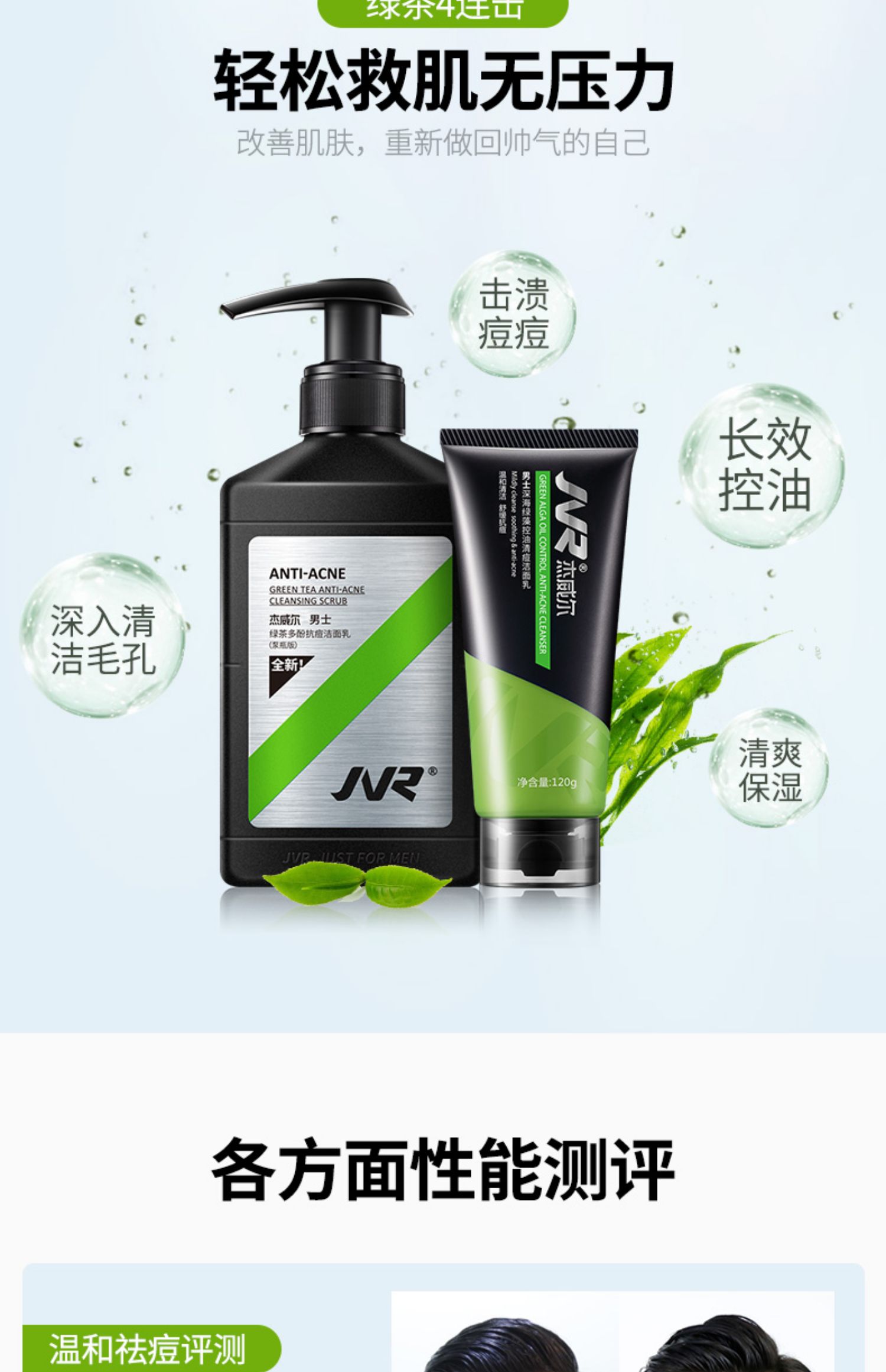 【买一送四送爽肤水祛痘面膜】杰威尔洗面奶,男控油祛痘补水保湿男士洁面乳膏,去油护肤品套装,型男季特惠买1送4,送爽肤水祛痘面膜试用装!