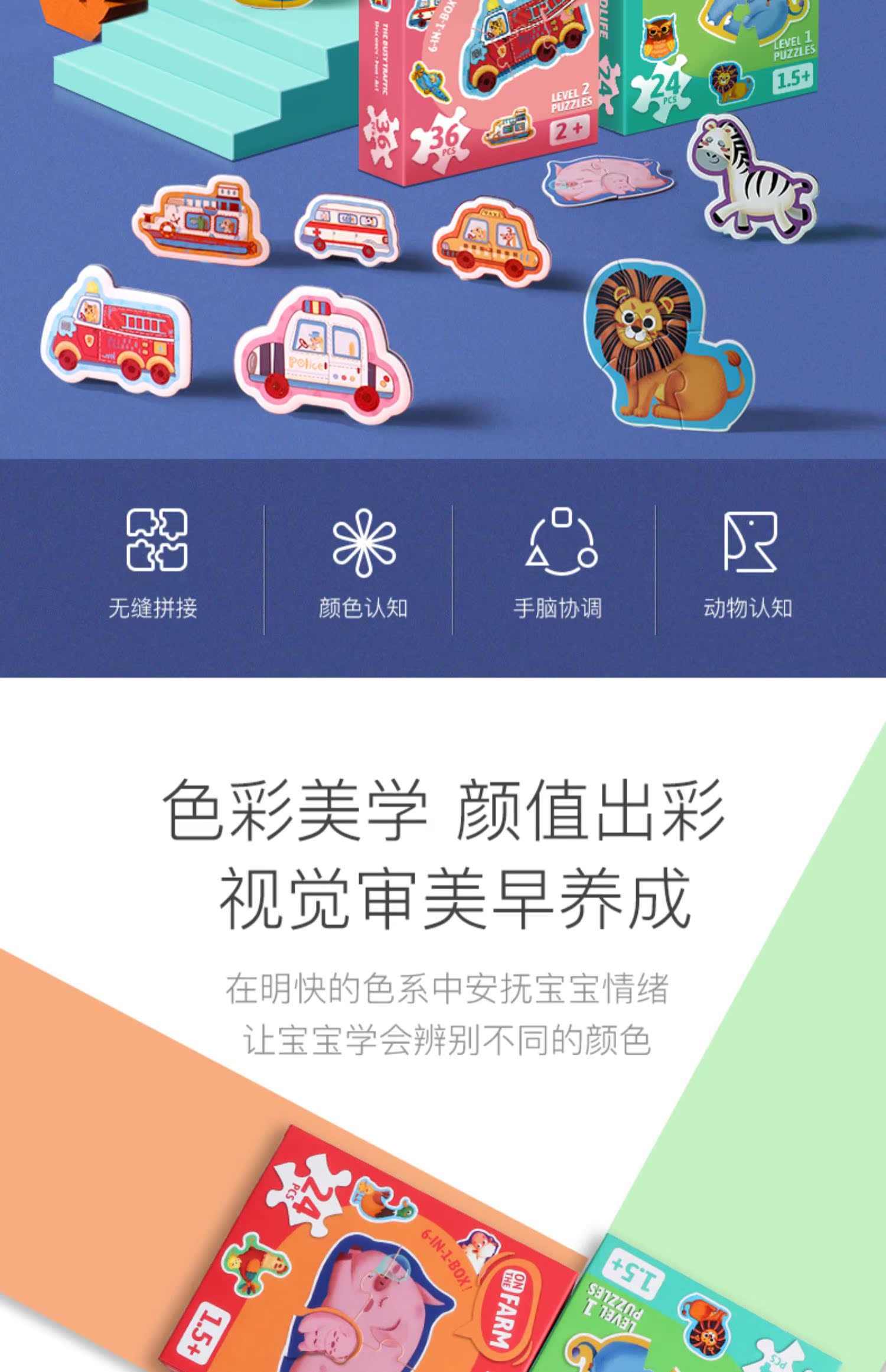 大块拼图,适合1.5岁以上宝宝,开发大脑、安抚情绪、创造宝宝成就感,让孩子边玩边学习。增强记忆能力,在玩的过程中能够自己学到知识。知识不等待,赶快买起来!