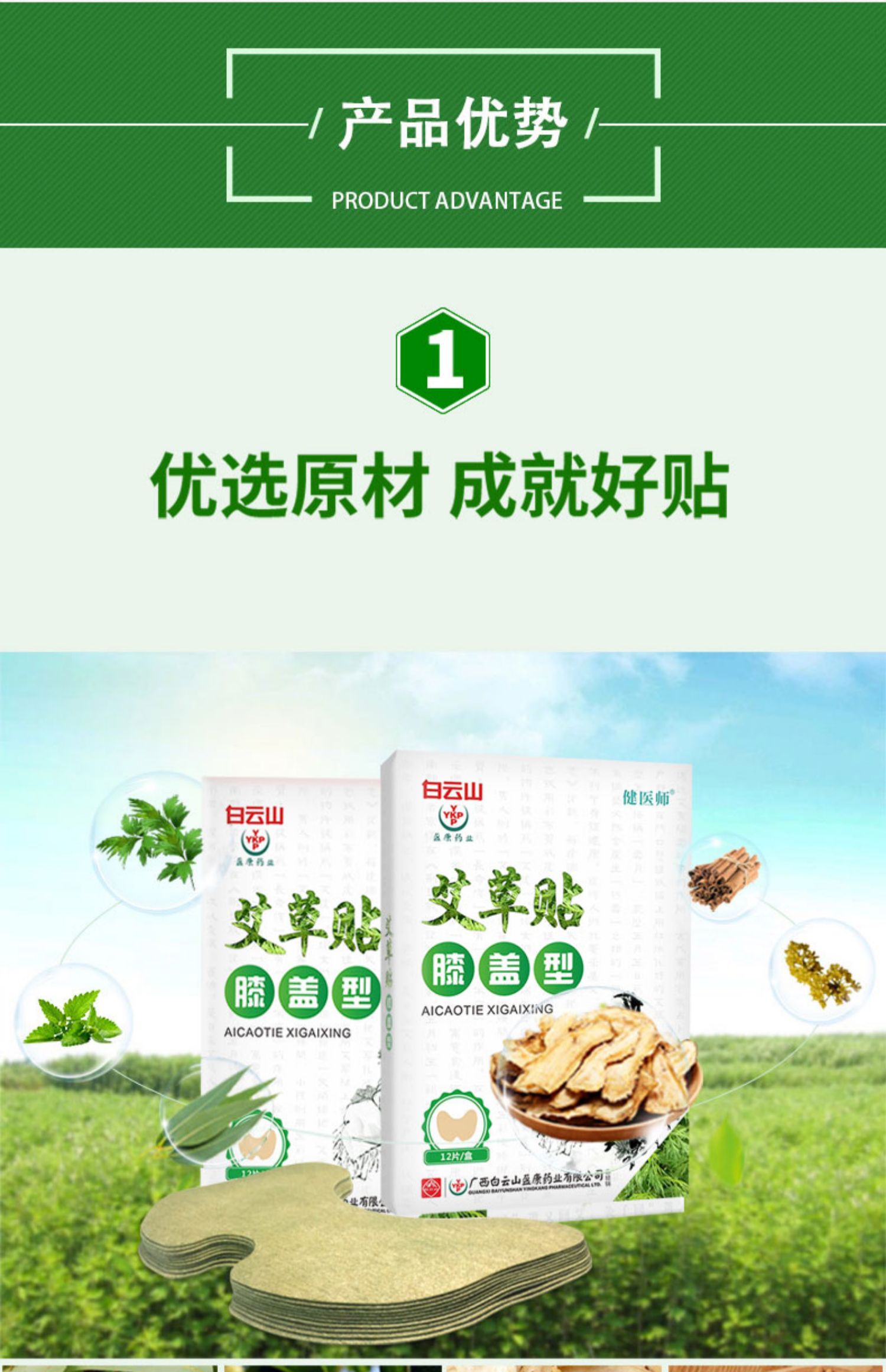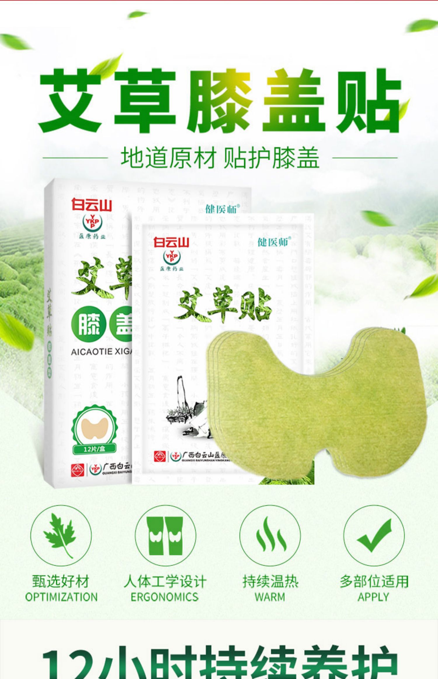 广药集团,白云山艾草膝盖贴!膝盖酸疼,四肢无力,快贴艾叶膝盖贴!送父母中老年人走路脚抖!12小时持续温热,萃取天然中药成分,疏通经络,通畅气血,贴得牢,不易脱落,行动方便!
