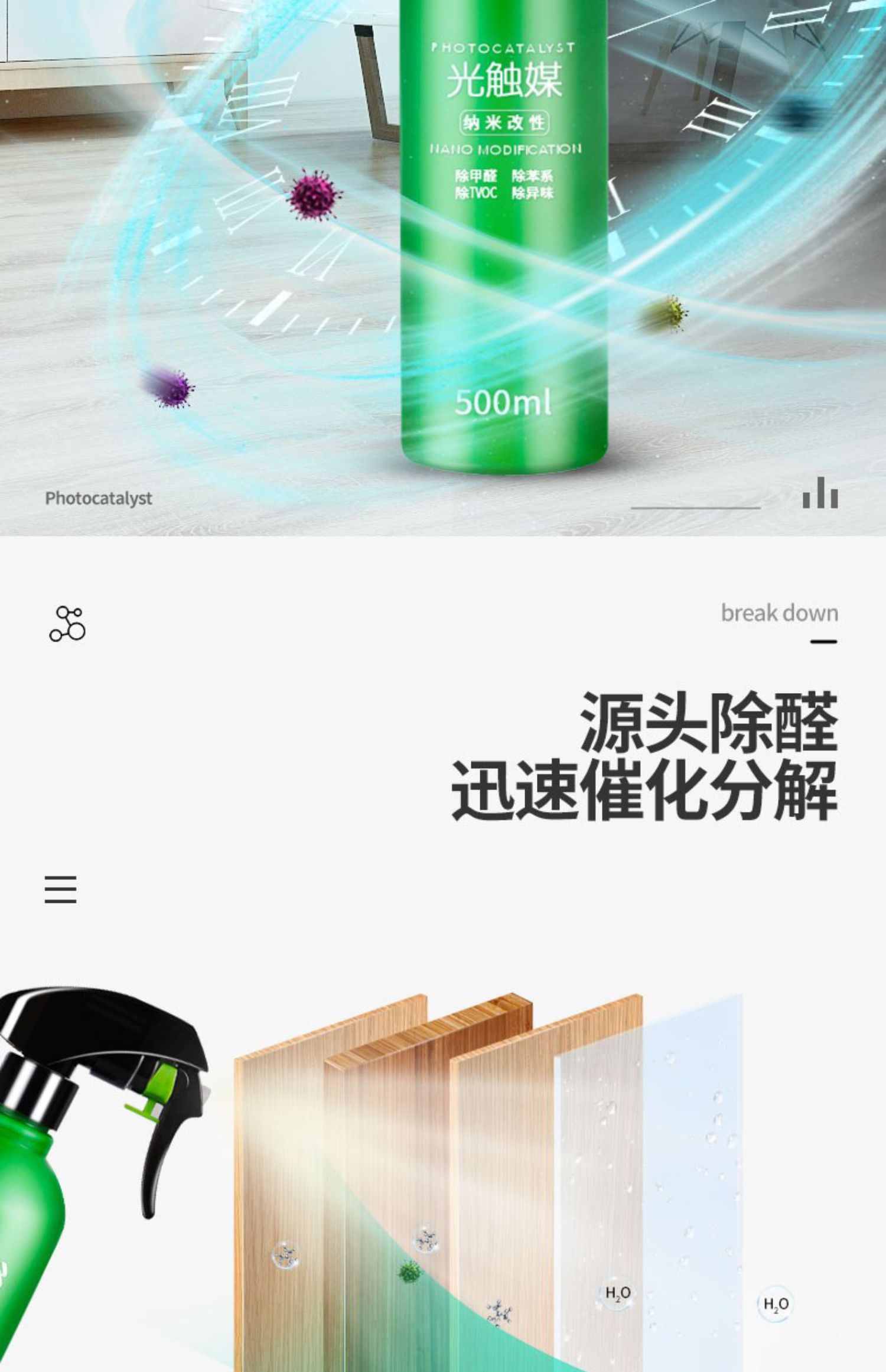 纳米改性光触媒500ml,新升级喷雾型,除甲醛速度快,24小时快速分解污染物,一次治理长久有效,植物合成,安全环保,母婴皆可用,无二次污染【赠送运费险】