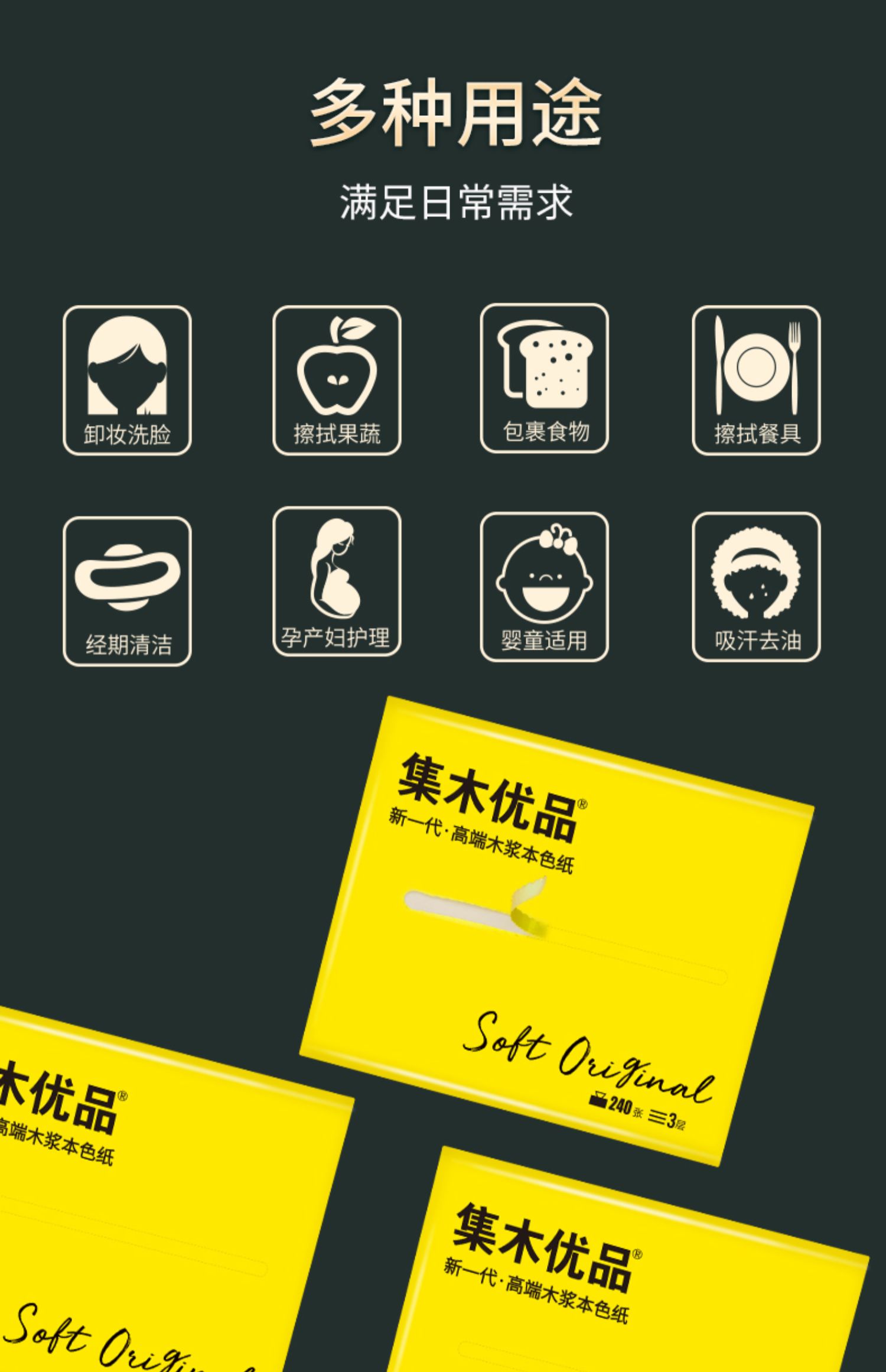 【24包80抽!非60抽!】原生木浆本色纸,无漂白荧光剂,婴儿可用,食品级,可直接将食物放置在上面,撕开无尘屑,韧性好,湿水可放20枚以上硬币,湿水后可当湿巾使用。
