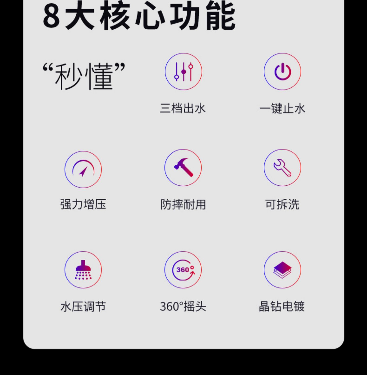 德式淋浴花洒喷头,家用洗澡神器淋雨莲蓬头套装,德国最近技术,超强增压花洒喷头易控,防堵,节水,可自由切换出水,家中常备,有备无患,值得信赖!