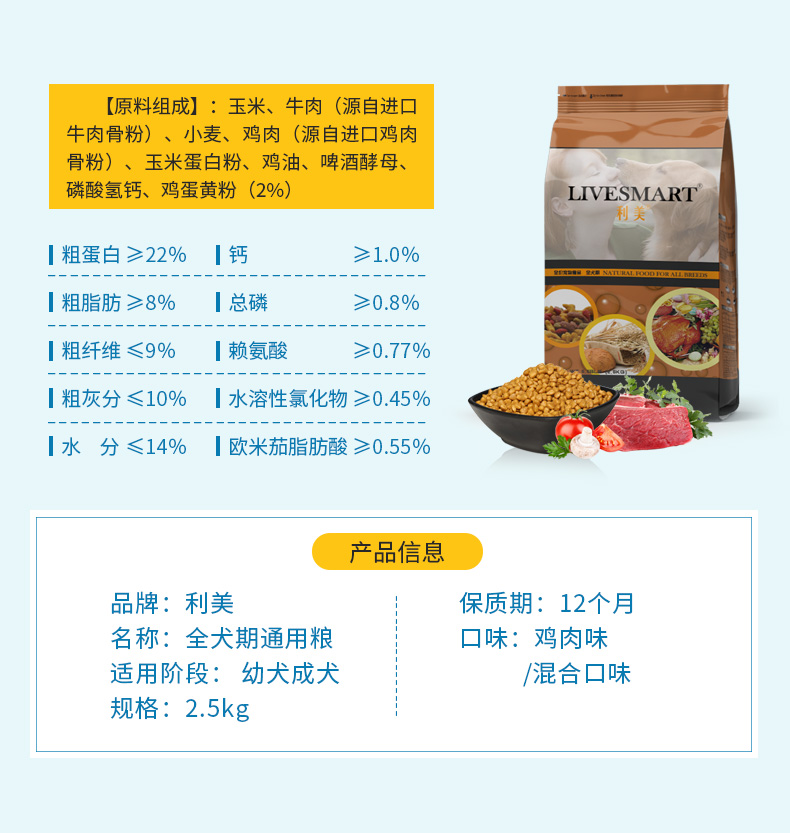 全犬种通用天然狗粮,强壮骨骼,补充钙质,淡化泪痕,粪便除臭,美毛因子,营养配比,无盐配方,好犬粮用心制造【赠运费险】