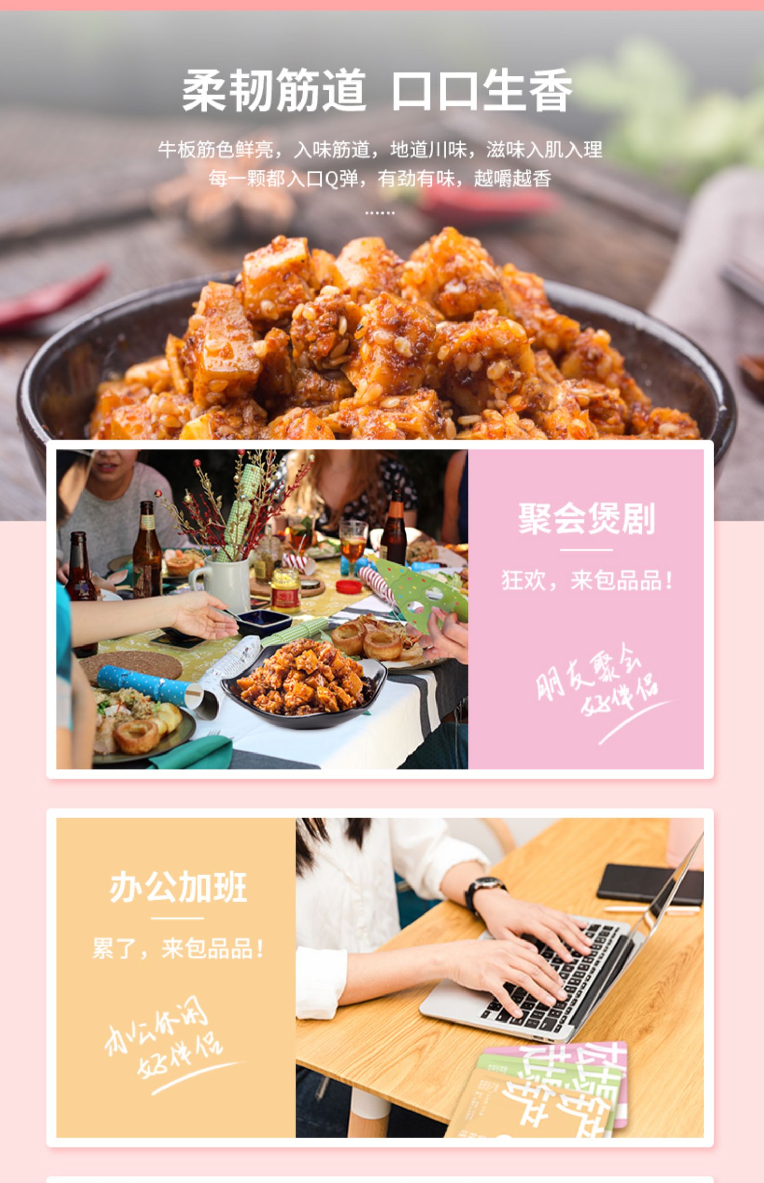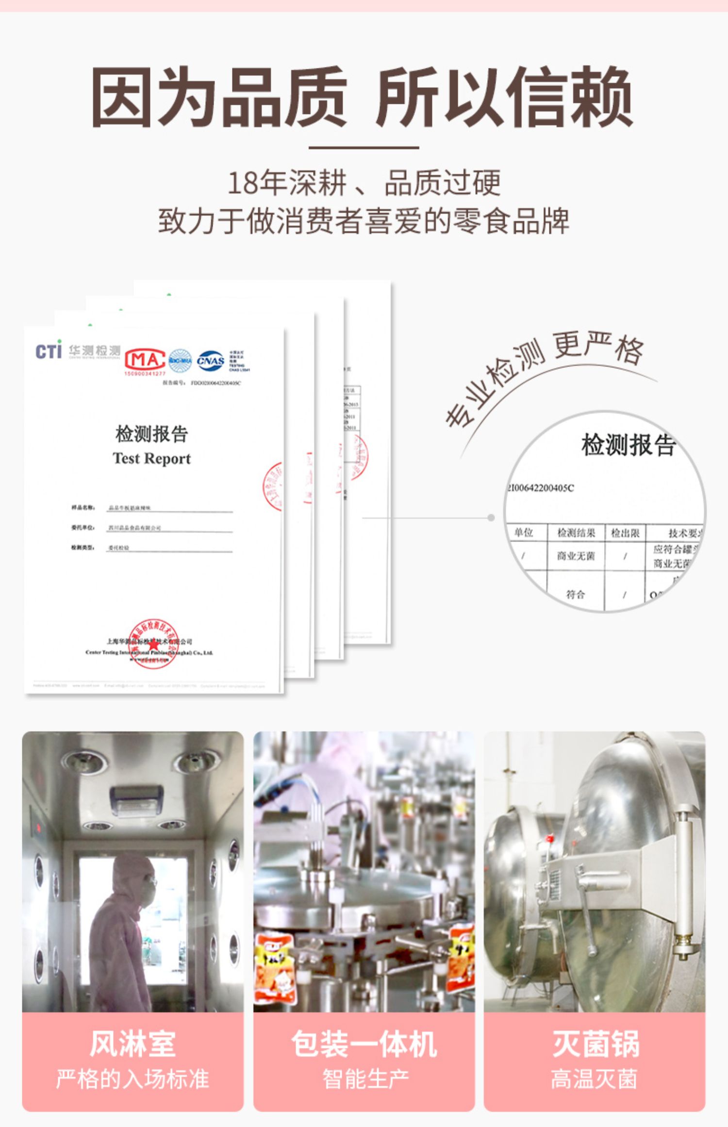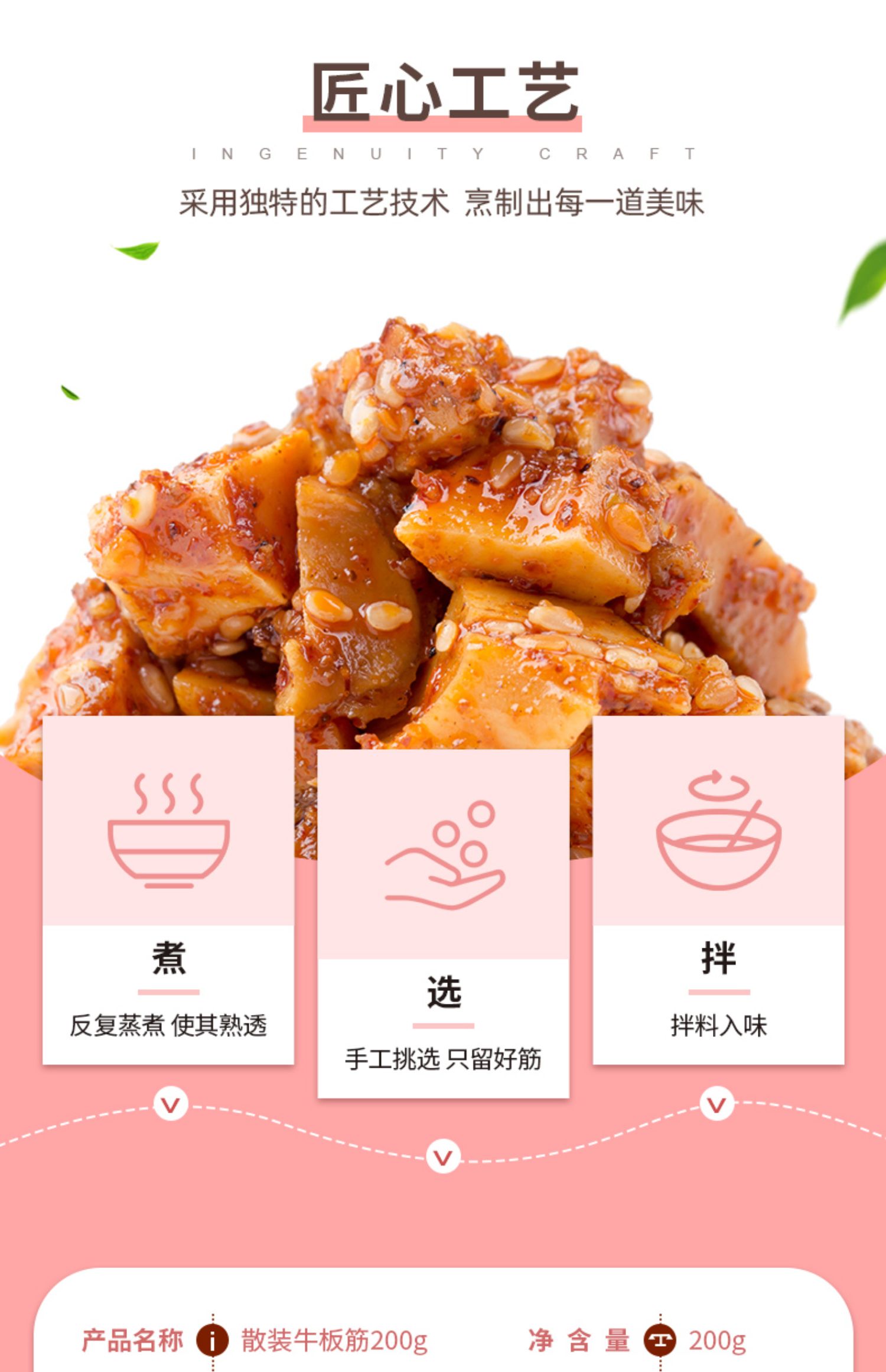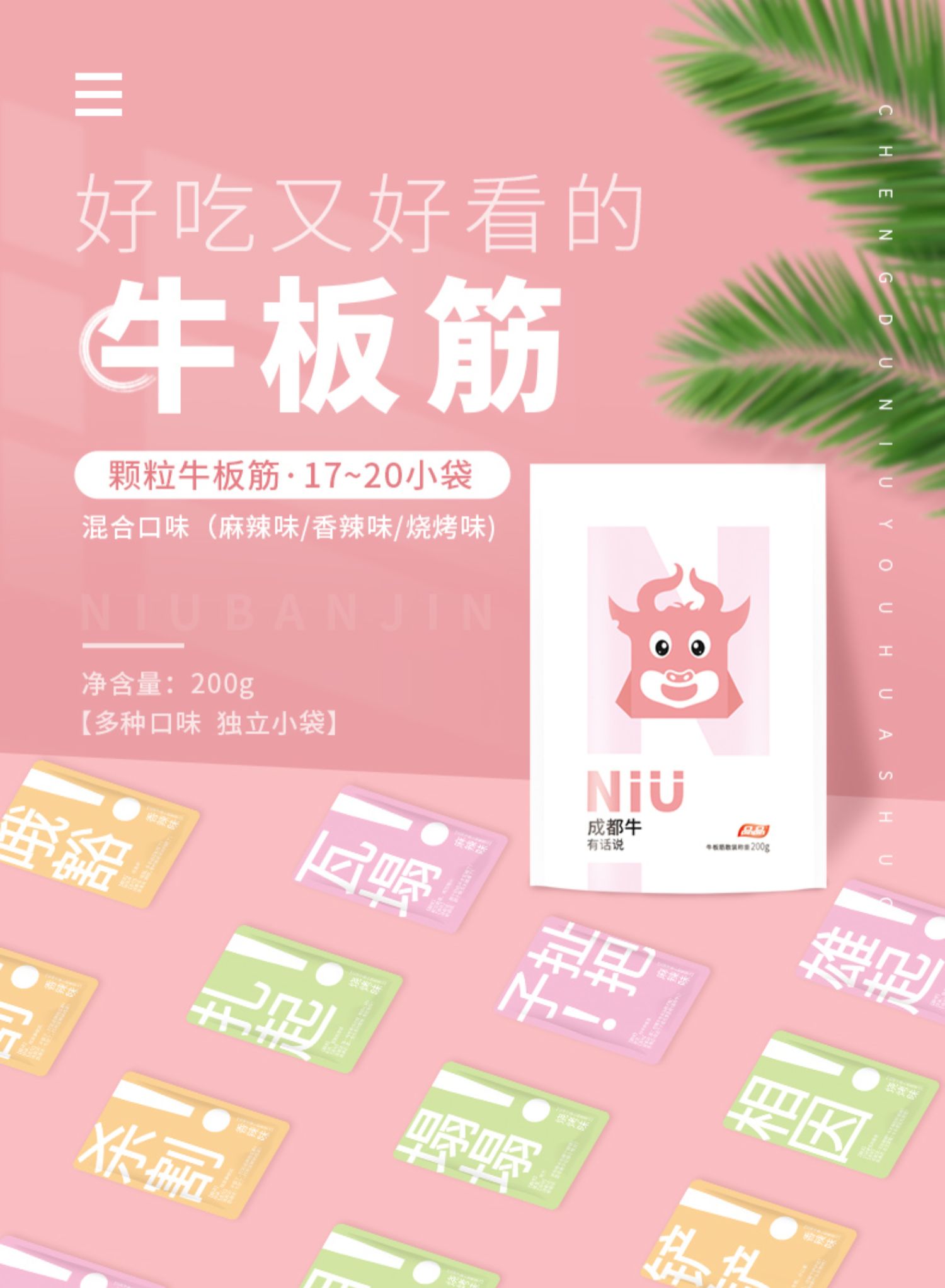 【三只松鼠百草味代工厂生产!】品品牛板筋,牛板筋行业领军品牌,一袋约20袋,分量足,吃过瘾。一袋包含三种口味(麻辣/烧烤/香辣)满足不同顾客的味蕾,颗粒饱满,颗颗劲道,独立小包装,适合不同场景。