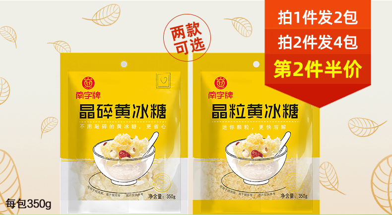 【第二份半价,拍1发2包,拍2发4】绿豆大小,不用敲碎的黄冰糖,更省心,精选优质原料,现代工艺,品质保证,晶莹剔透,纯净透亮。【赠运费险】