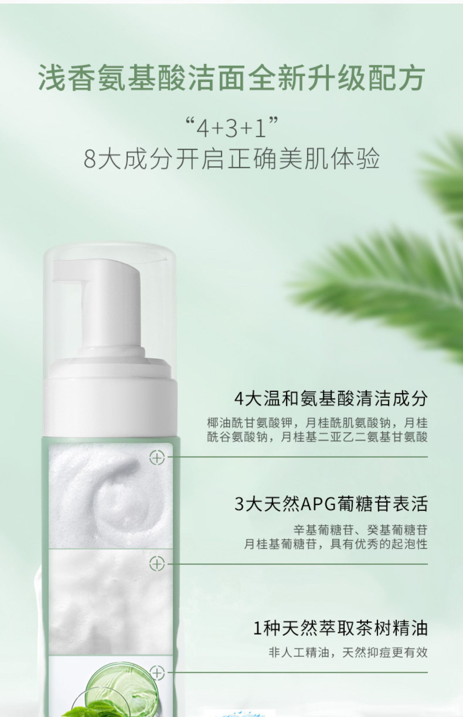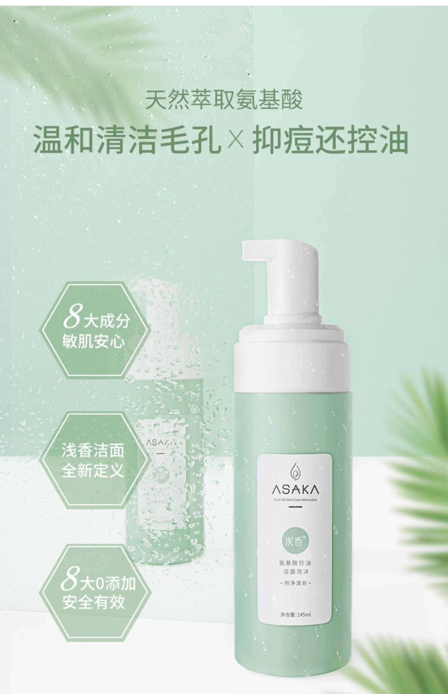 浅香氨基酸控油洗面奶洁面慕斯泡沫深度清洁温和不刺激敏感肌男女 温和不刺激,深度清洁,控油抑痘