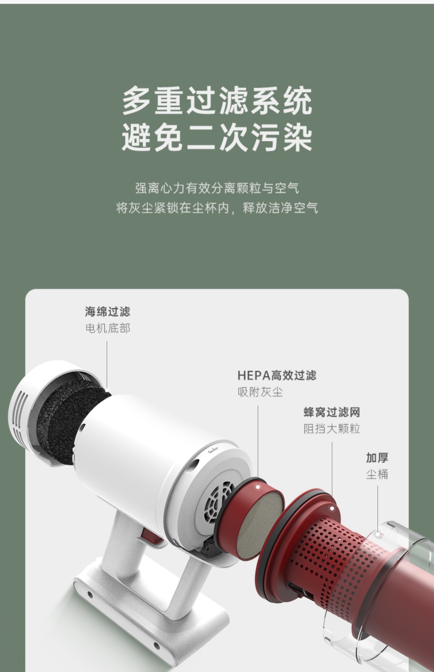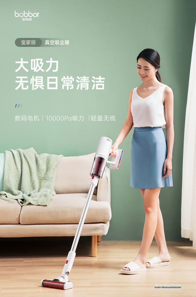 宝家丽家用吸尘器,真空吸尘器,1000Pa飓风旋吸,1.25kg超轻重量,手持/地推二合一,地板、沙发、车都可以轻松清理灰尘。【赠运费险】