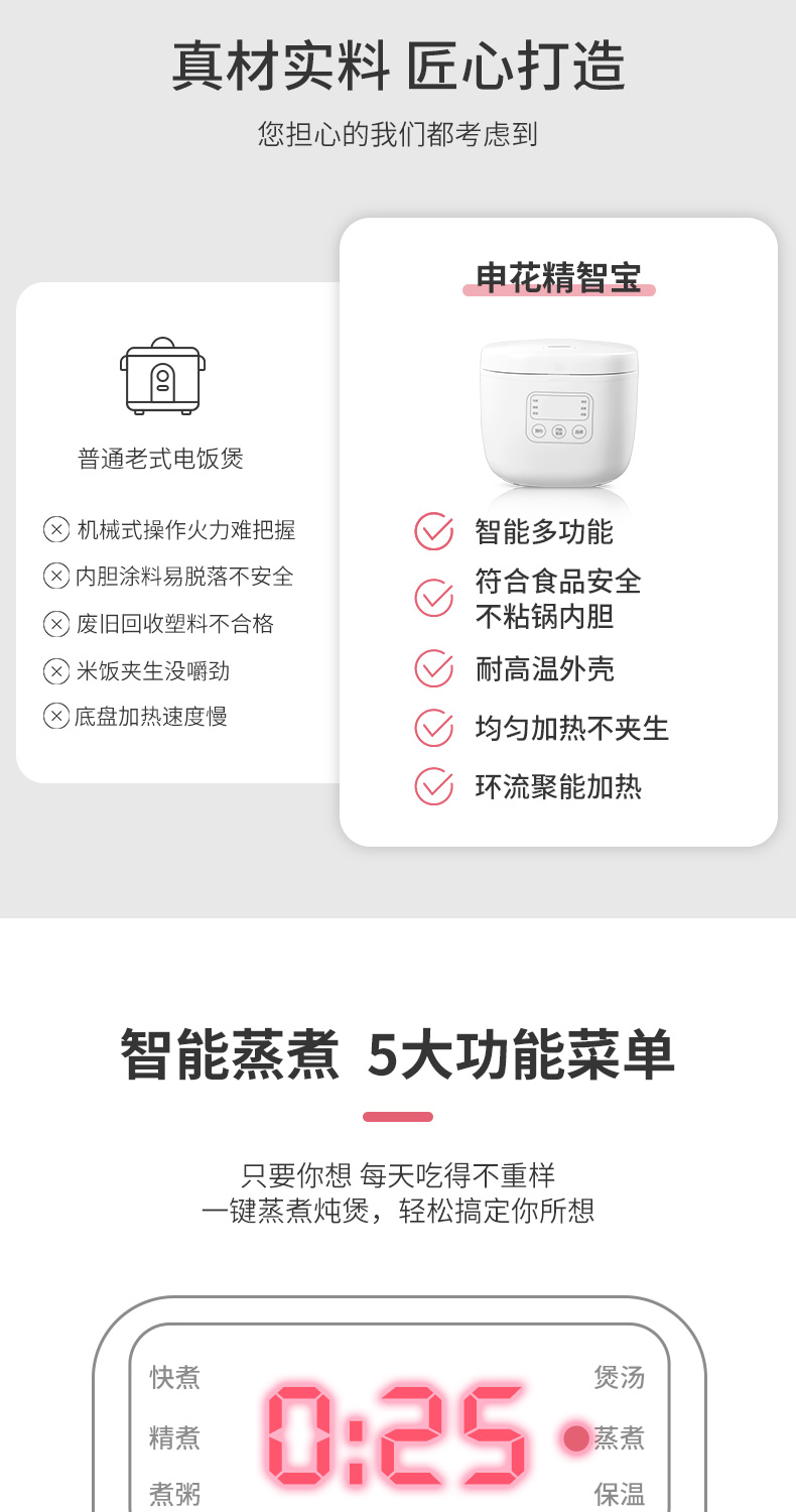 【赠蒸笼+量杯+饭勺】小型多功能电饭煲,加厚防烫机身,食品级蒸盘,质量保证,不粘内胆,可煮粥可煲汤,蒸煮一步到位,节能省电,学生宿舍也能用,方便美味,就是不一样的口感,还在犹豫吗?赶紧下手吧!