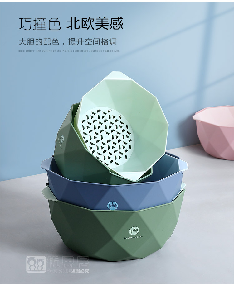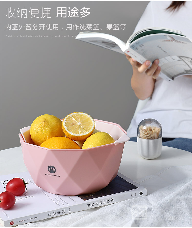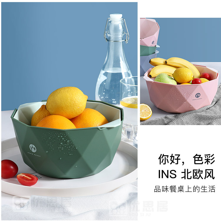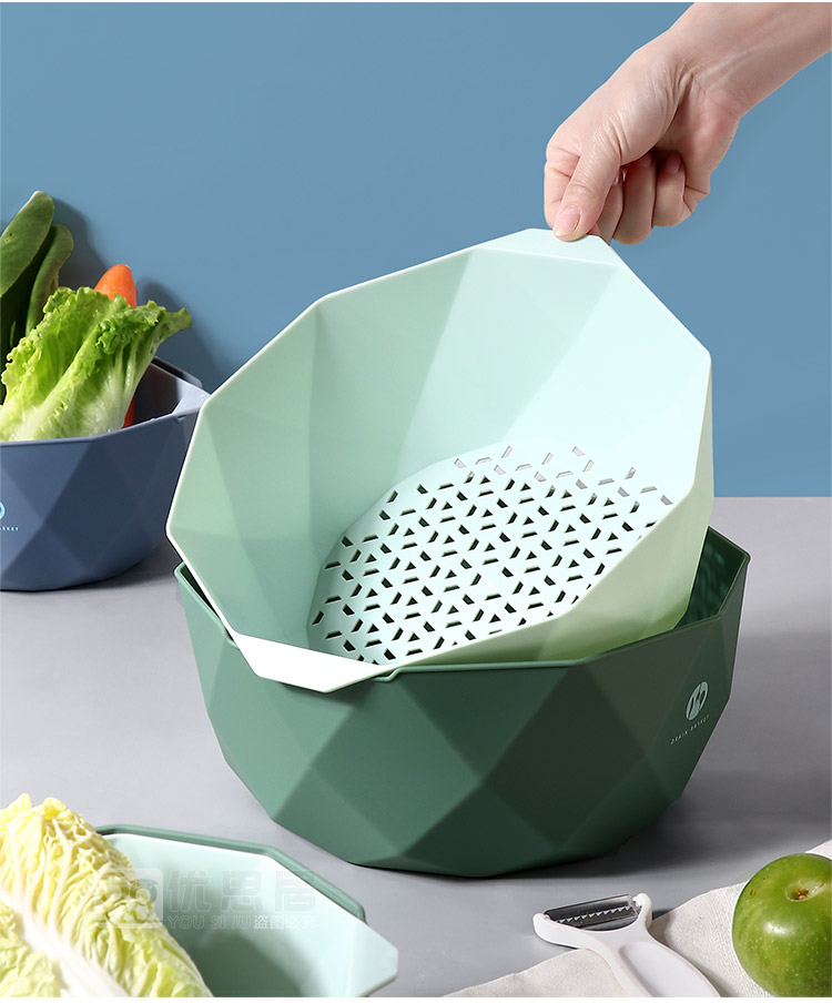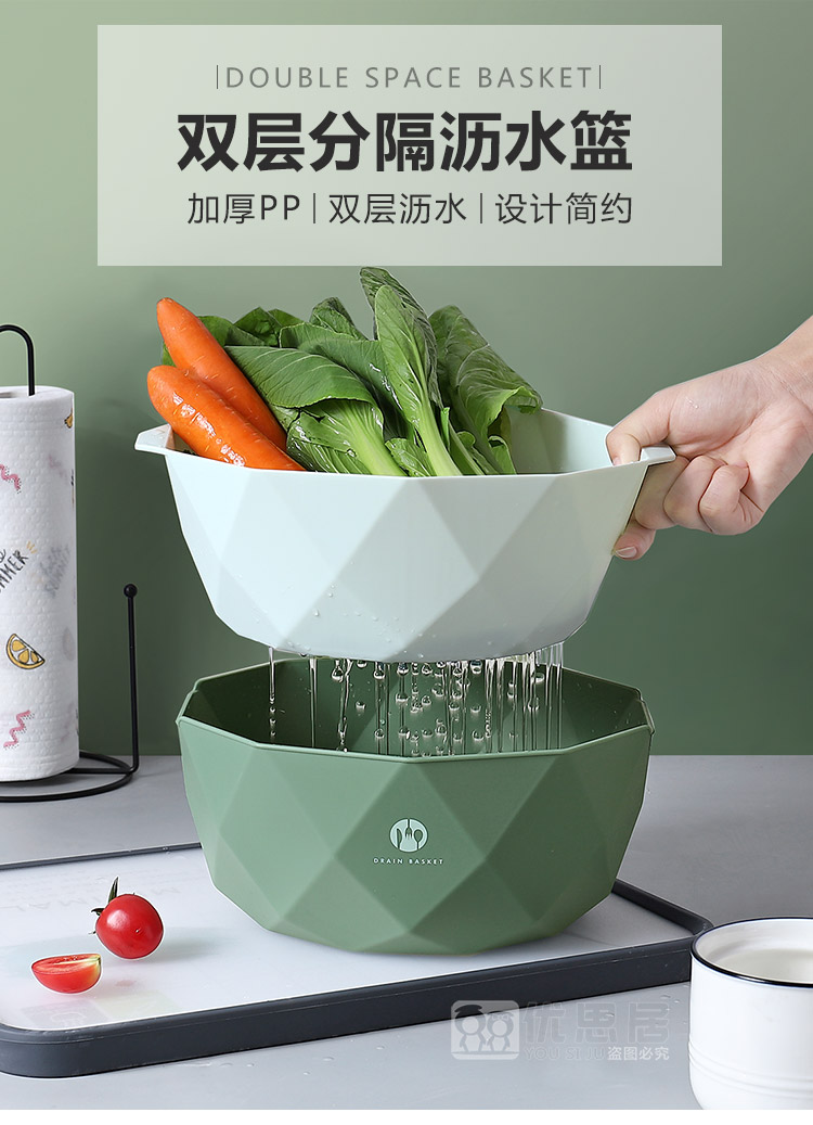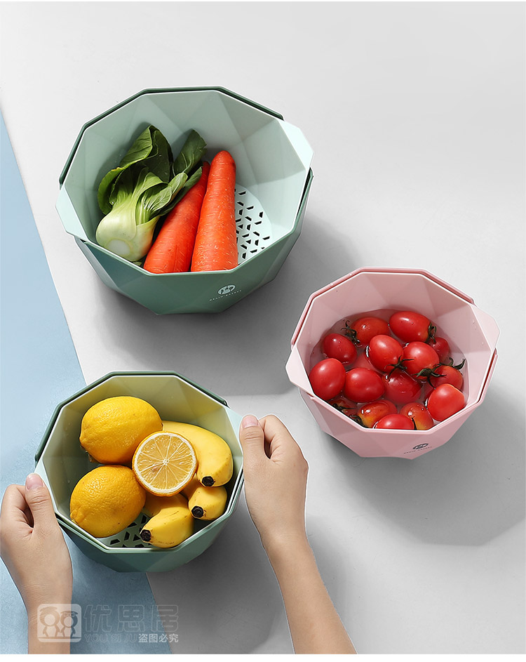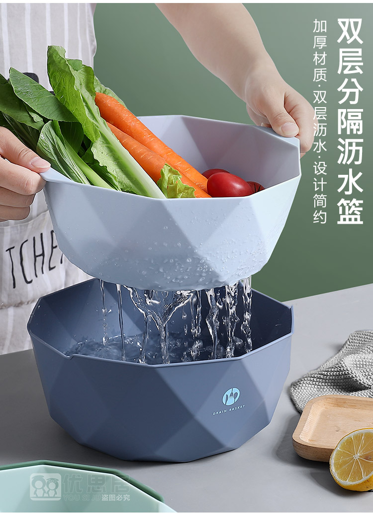 双层加厚果蔬沥水篮,轻松过滤,质量杠杠的,淘米洗菜洗水果,样样行,多种款式,厨房必备!