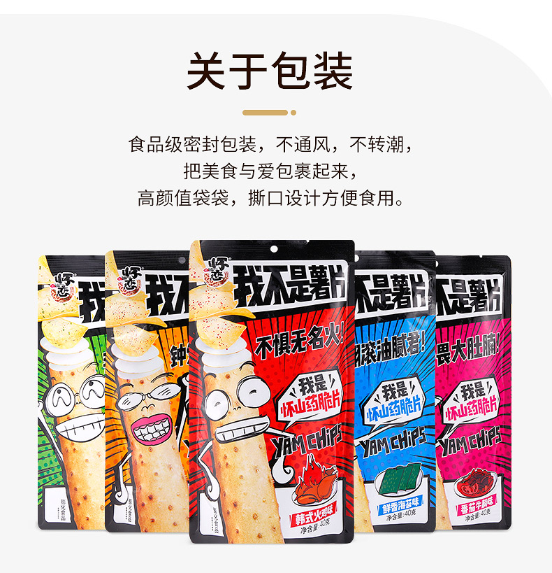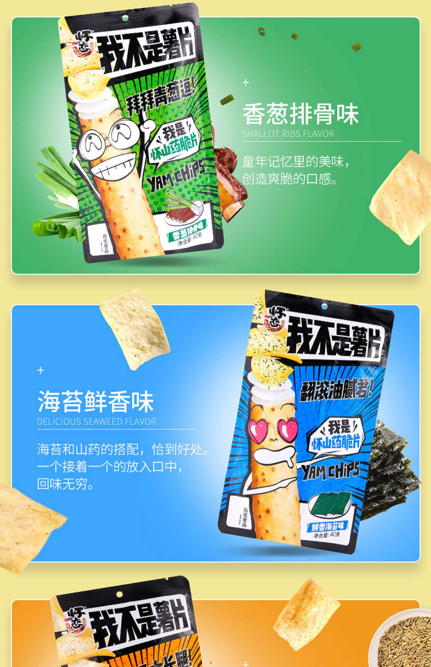 【第二件4.9元】怀恋山药薄脆片,休闲零食40g*5包,采用传统手工切片工艺,片片香脆,口感清爽,多种口味满足你的味蕾!