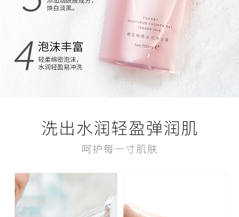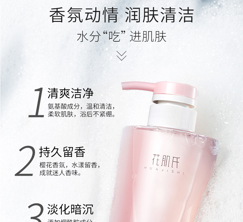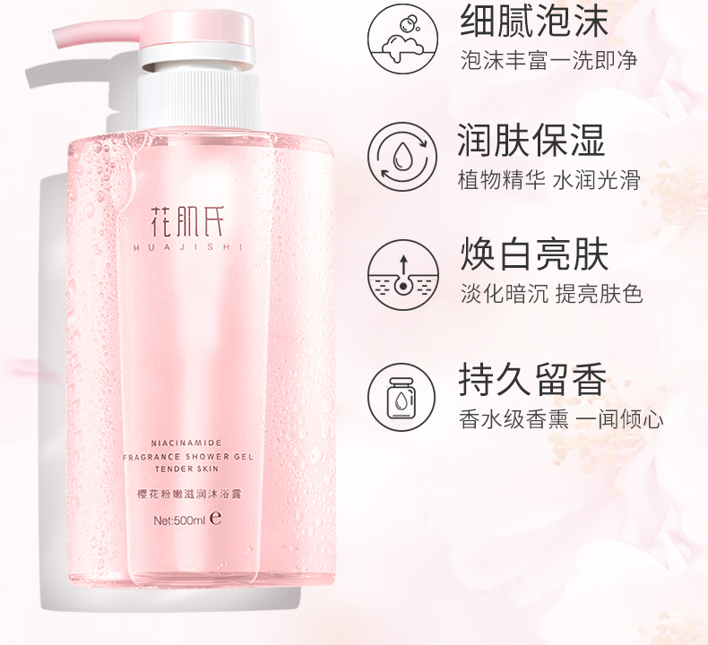 花肌氏樱花粉嫩滋润沐浴露500ml,温和保湿,滋润,烟酰胺,香水香氛沐浴露,持久淡香~亲肤无刺激,滋润止痒,嫩白肌肤,散发芳香~!