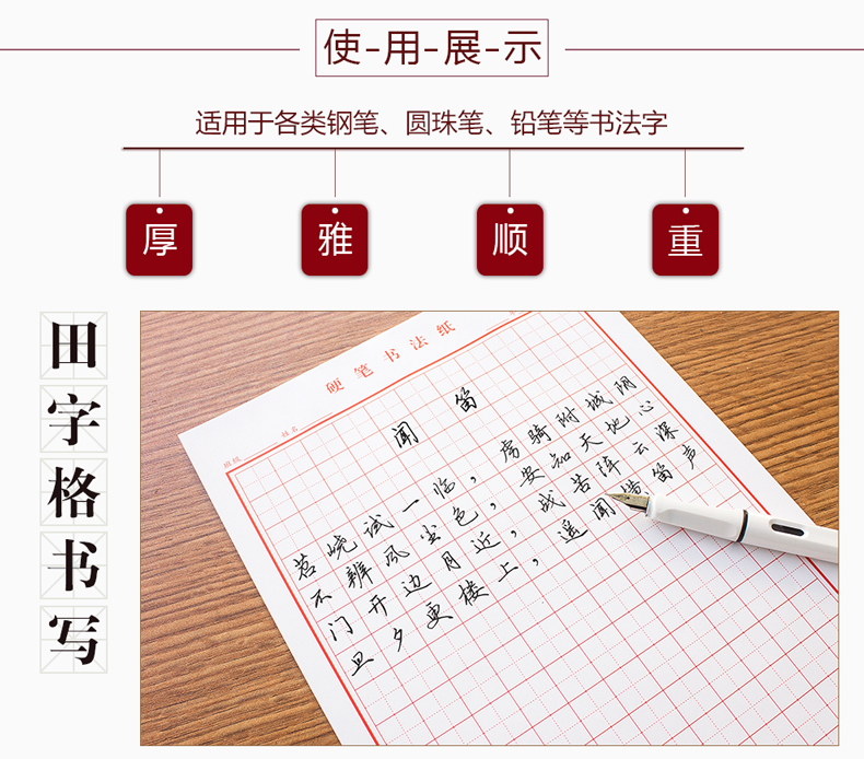 【真值!5大本100张再加送2只练字笔,快撸!】0束缚硬笔书法练字本,真的特适合初学者,10种款式任意选~纸质厚实,不透墨,送的笔,写字很好看。没事多练练字,不仅能写得一手好字,还能锻炼心性!