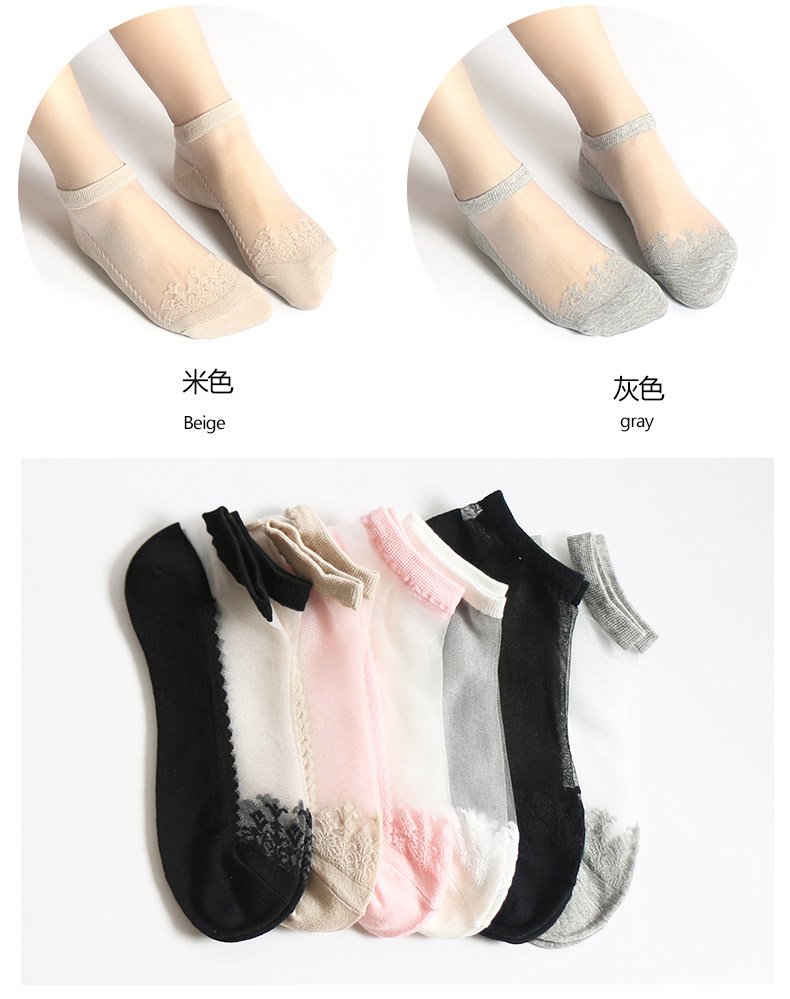 【冬爱旗舰店】4.9高评分,6双装蕾丝水晶袜,夏季超薄,性感蕾丝,棉底防滑,柔软舒适,透气吸汗,冰丝面料,加固耐穿,性感优雅~