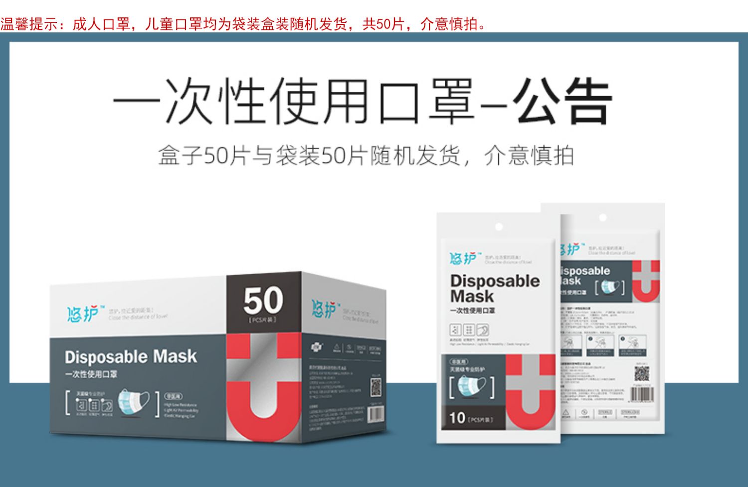 【一次性口罩50只,成人和儿童款都有】品质保障!高标准生产!资质齐全!多层防护高效过滤,熔喷布阻隔飞沫传染、3D立体剪裁,全方位贴合面部轮廓,不压鼻不勒耳!戴一天也不累!【赠运费险】