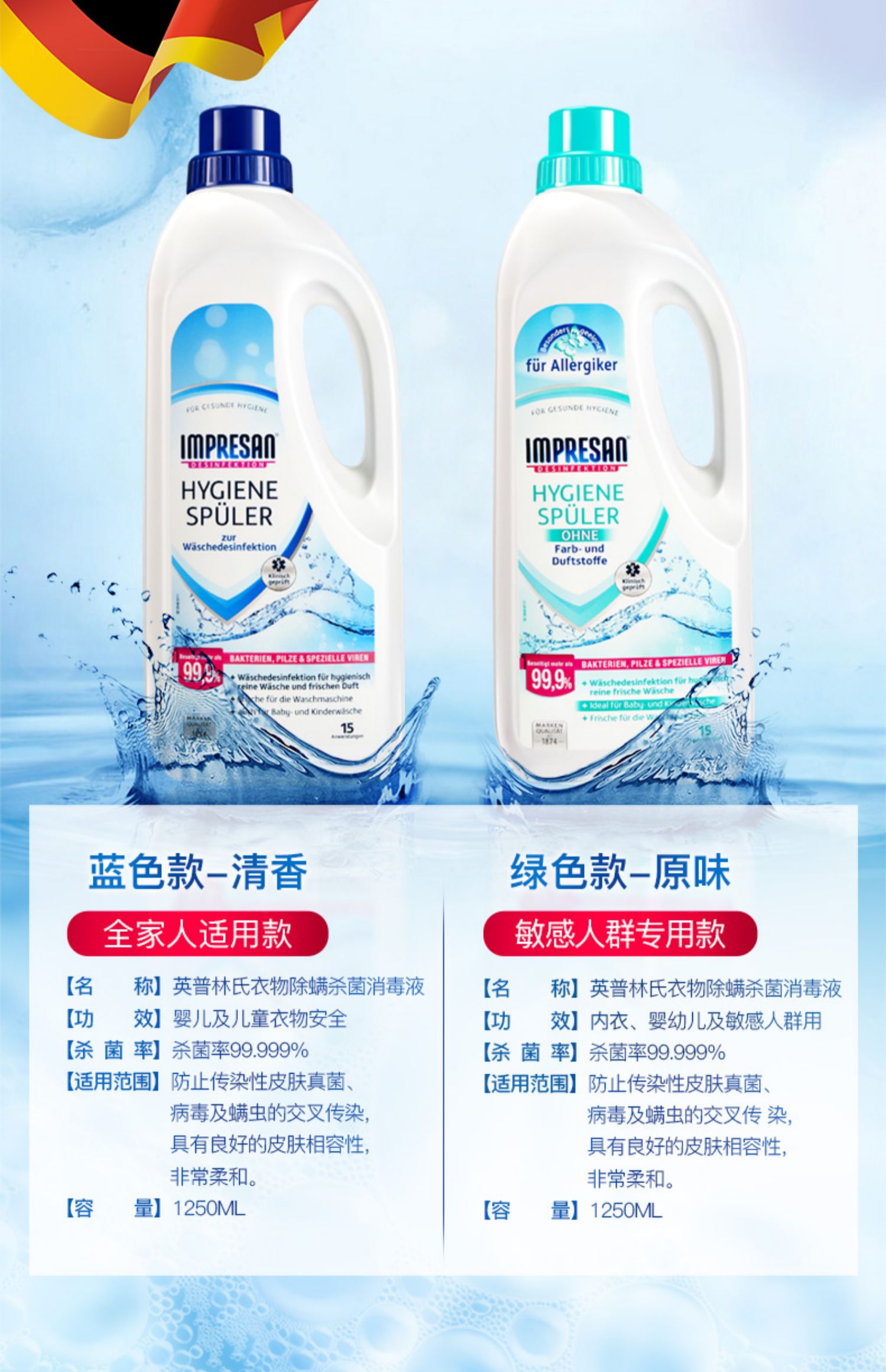 德国百年历史品牌,英普林氏消毒液。0刺激,温和安全孕婴可用。温和无刺激、细心呵护娇嫩的肌肤。杀灭细菌、杀灭病毒、杀灭真菌,有效杀菌。下单立减~~~