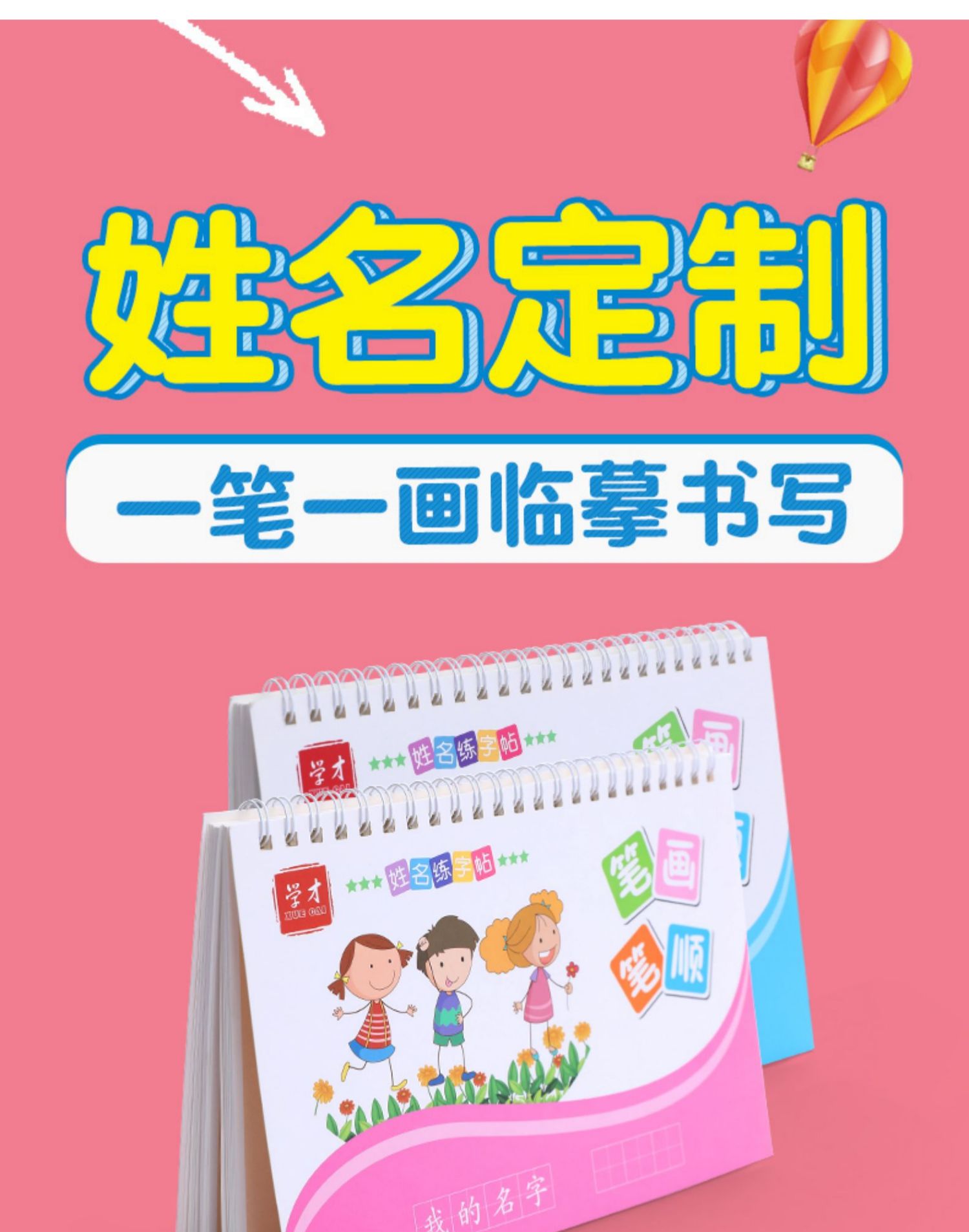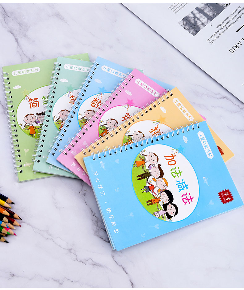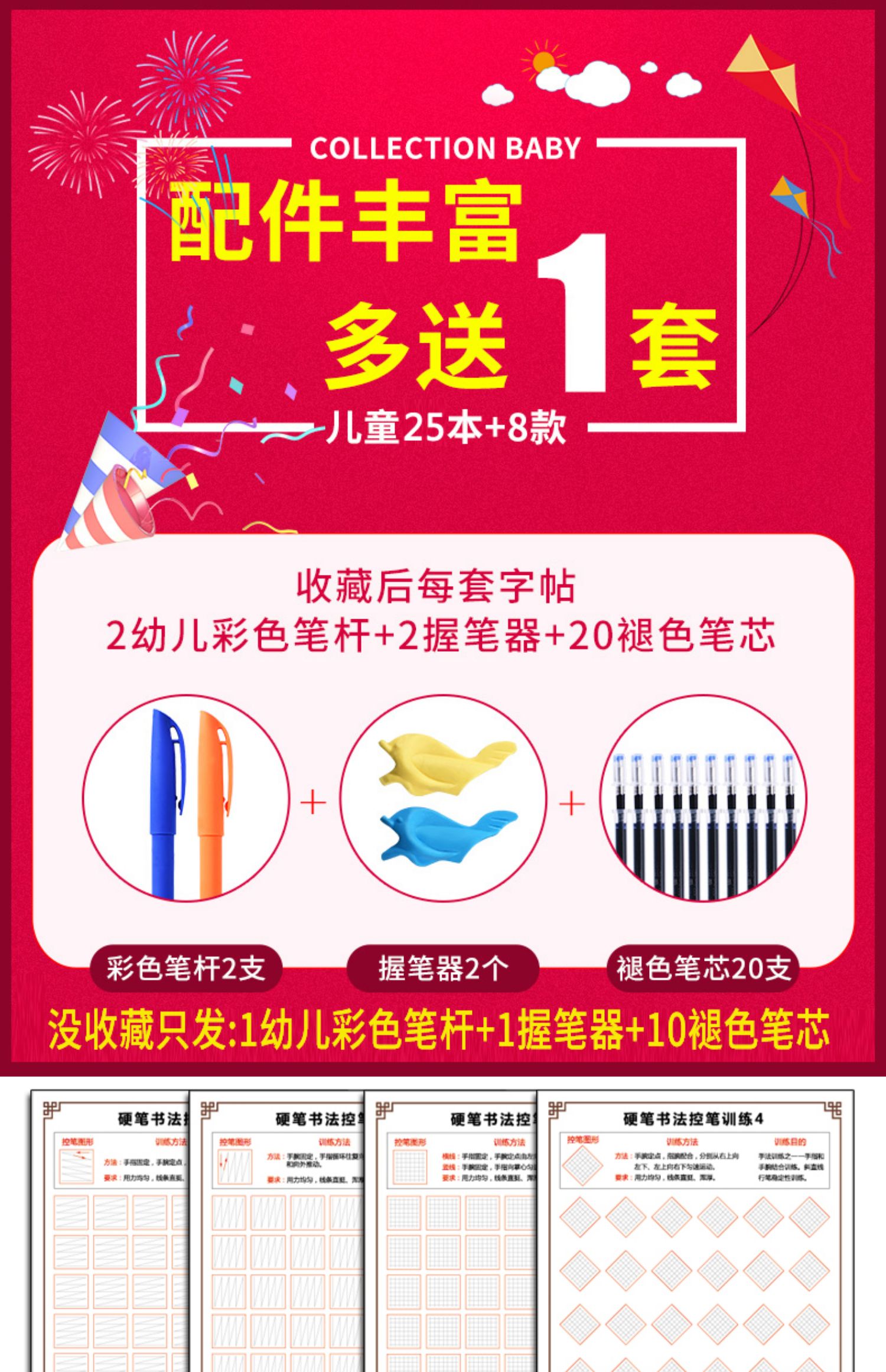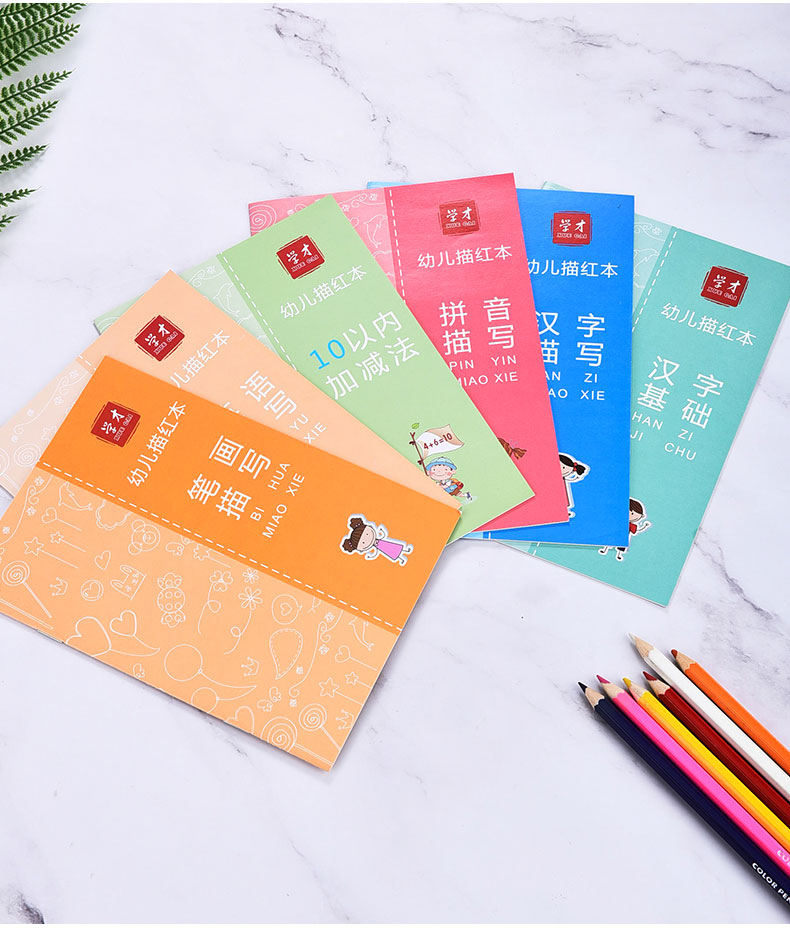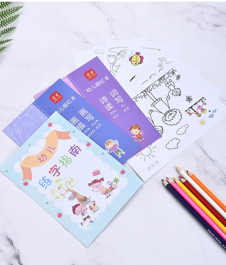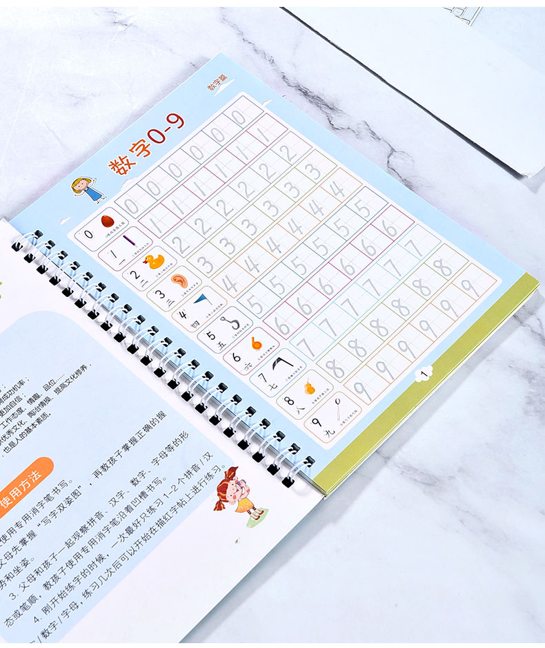 【字帖,握笔器,笔】全套学前字帖,字帖大小、内容正适合学前宝宝使用,印刷清晰,纸张厚实,练字帖的凹槽设计,专用笔芯出水流畅,30分钟字迹消失,可反复使用。