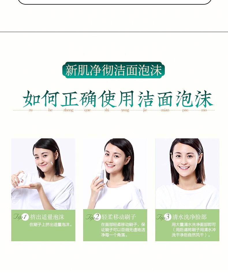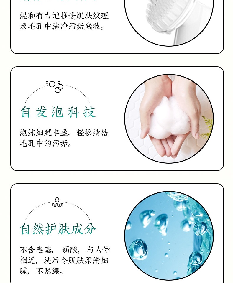植润新肌净澈洁面泡沫,清洁污垢,柔滑舒适不紧绷,温和不伤肌肤,平衡油水,细致毛孔,清洁硅胶刷头,脸部的吸尘器,让肌肤水润透亮,赠运费险。